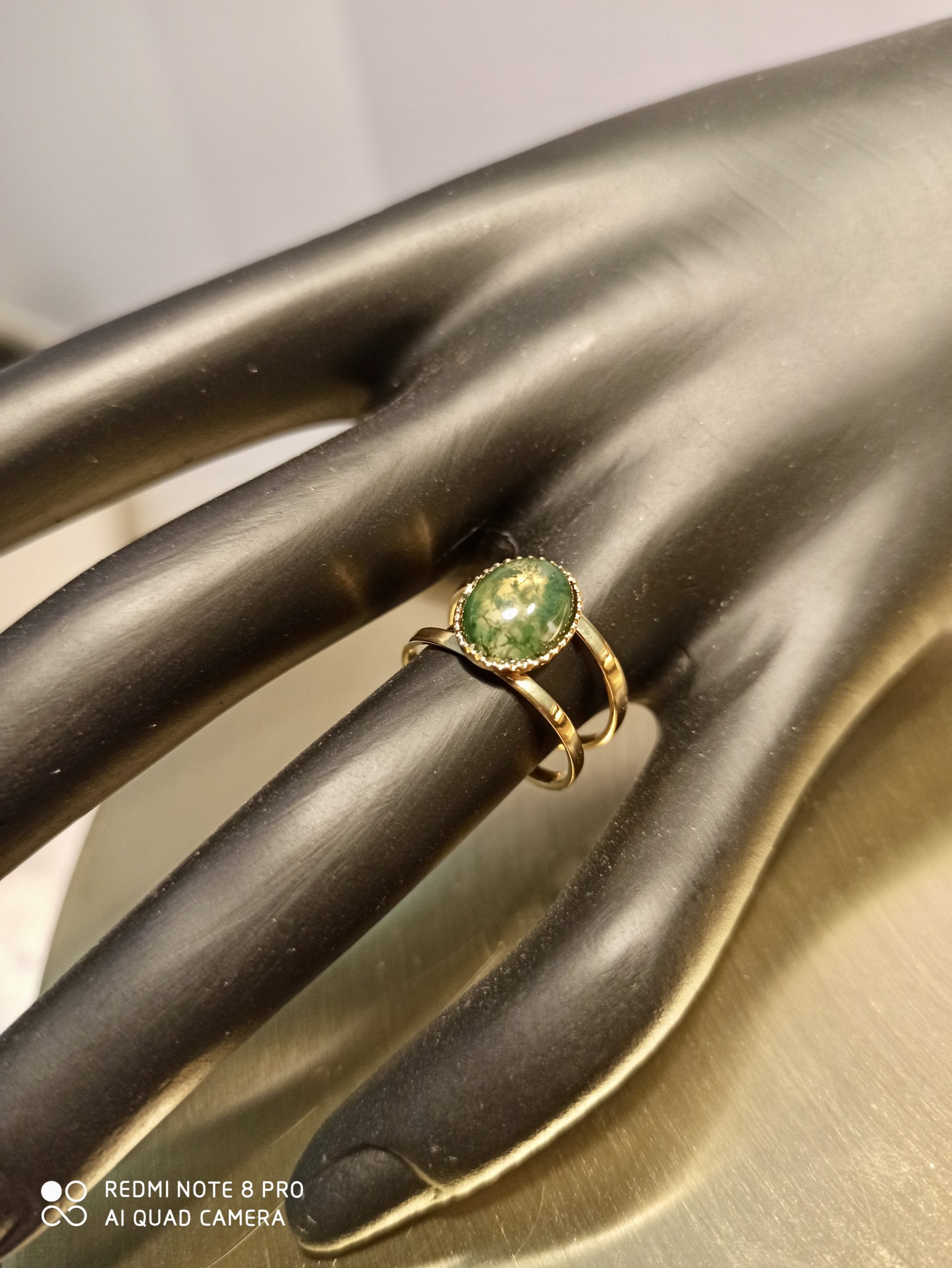 Ornée d’une pierre semi précieuse au choix : lapis lazuli, jaspe, agate mousse, unakite, nacre, malachite ou onyx.