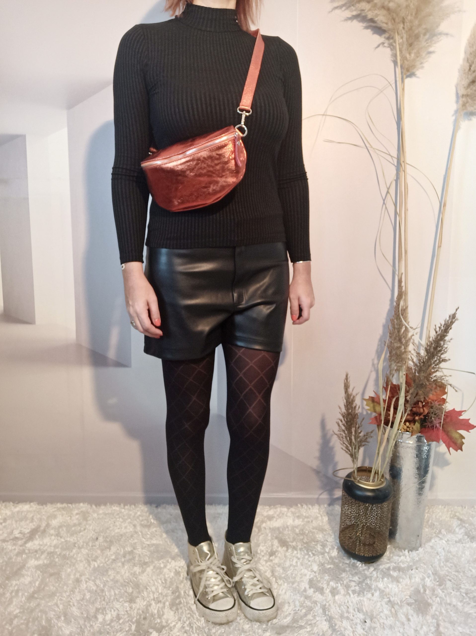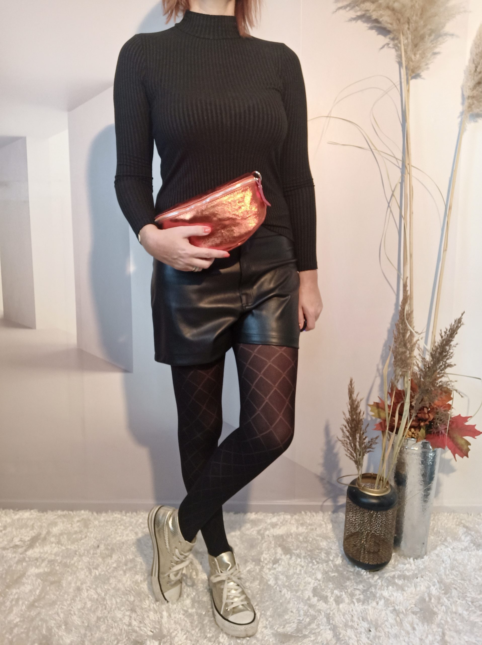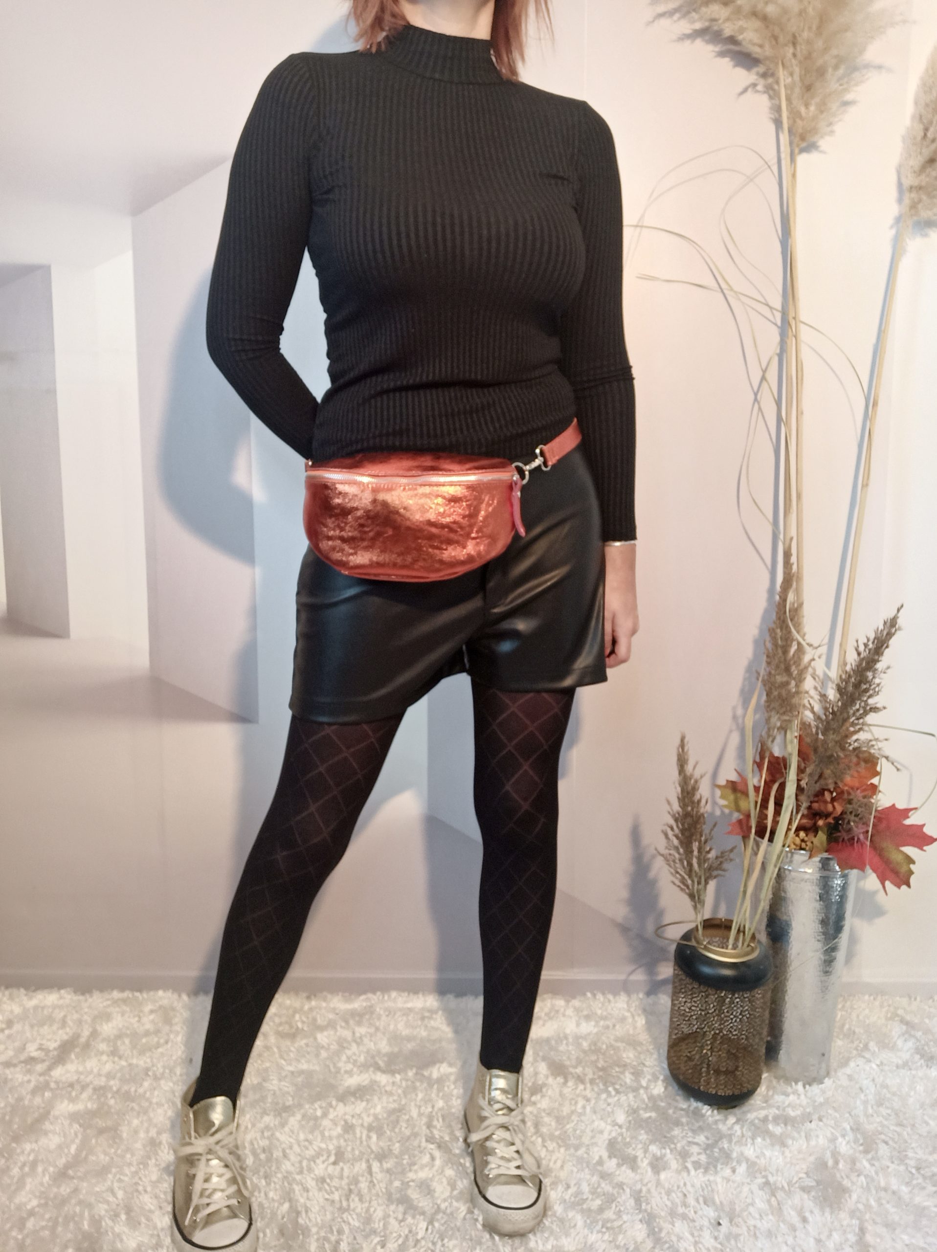 Sac banane très tendance, 100% cuir avec fermeture éclair, bandoulière ajustable et interchangeable et petite poche interne.