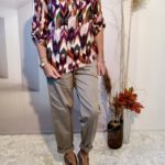 Blouse type Ă©thnique bariolĂ©e pour s’accorder avec de nombreuses pièces.Â
