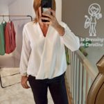 Blouse cache-coeur, point cousu au niveau de la poitrine et taille élastique qui lui donne un coté très confortable et tendance à la fois.