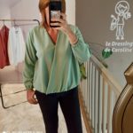 Blouse cache-coeur, point cousu au niveau de la poitrine et taille élastique qui lui donne un coté très confortable et tendance à la fois.