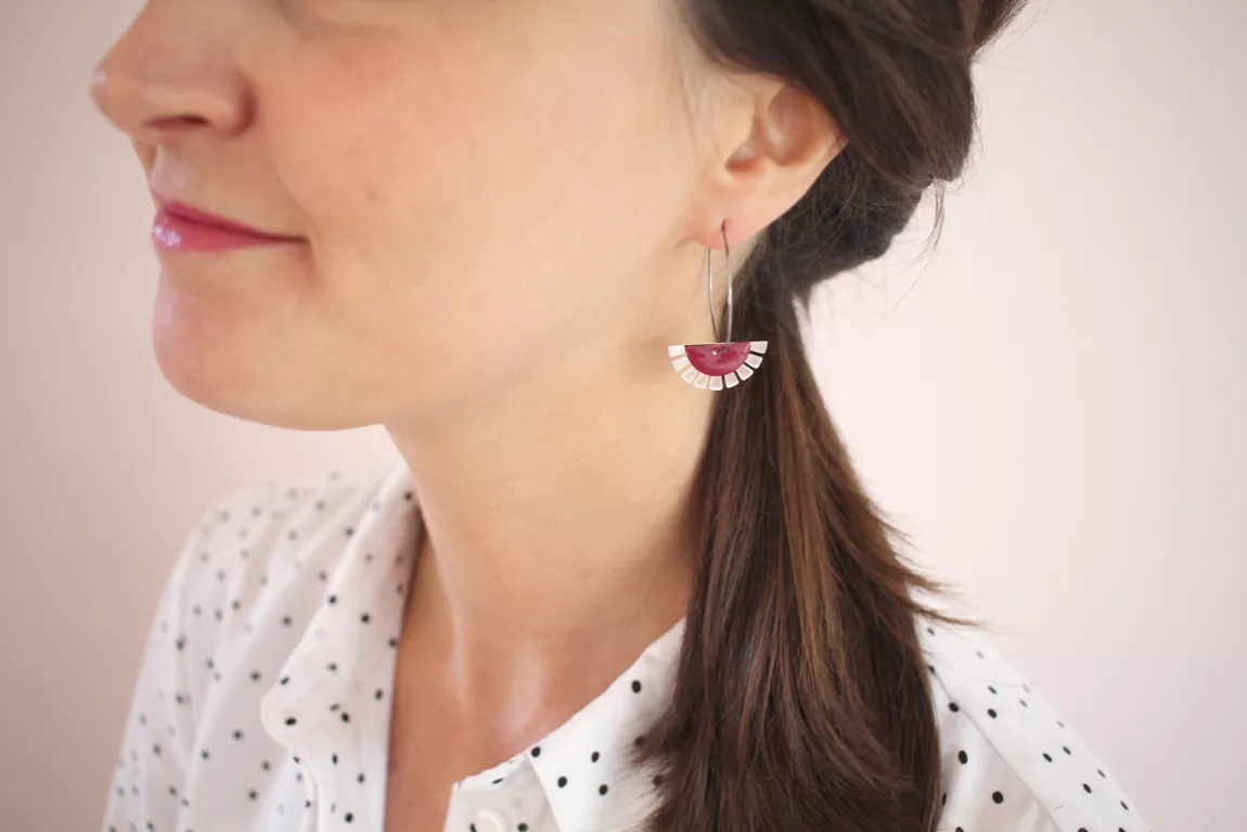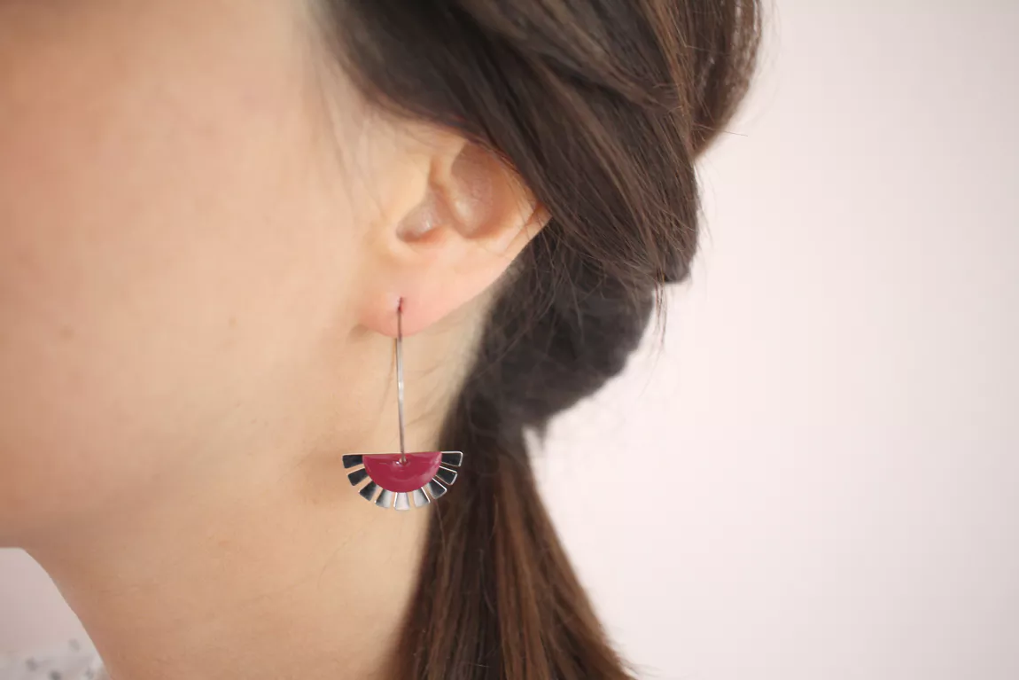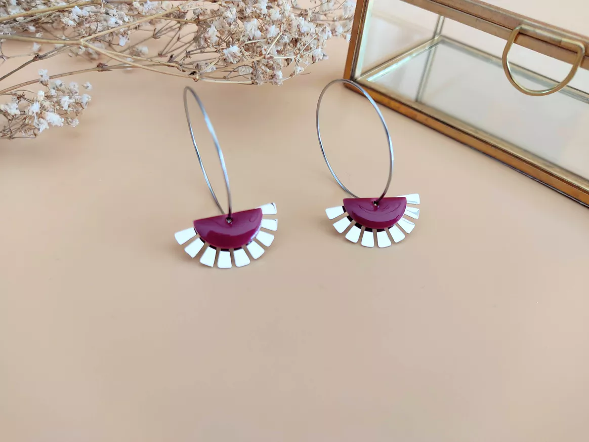 -Demi-lune émaillée bordeaux 15x8mm