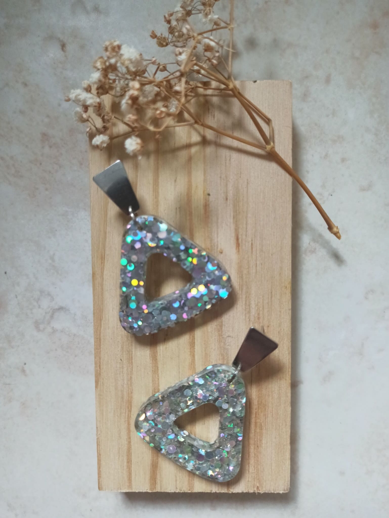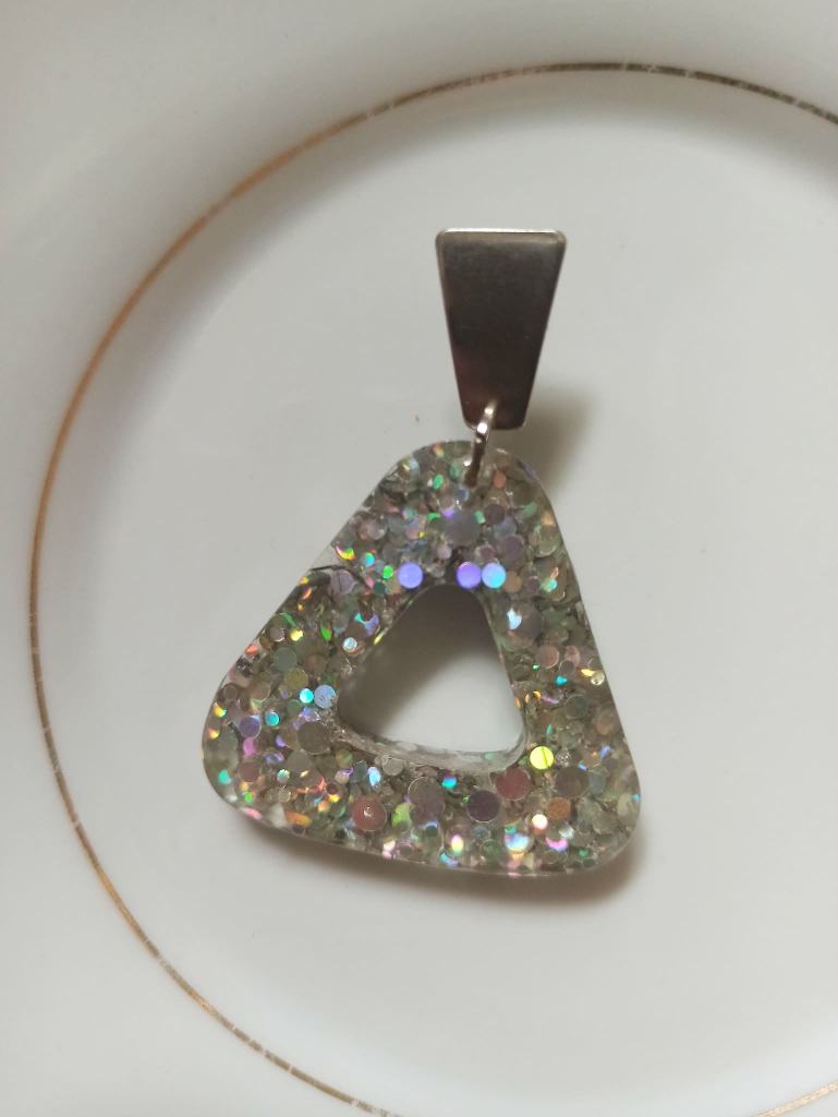 Couleur : argent, pampille transparente avec incrustation de paillettes argentées effet multicolore.