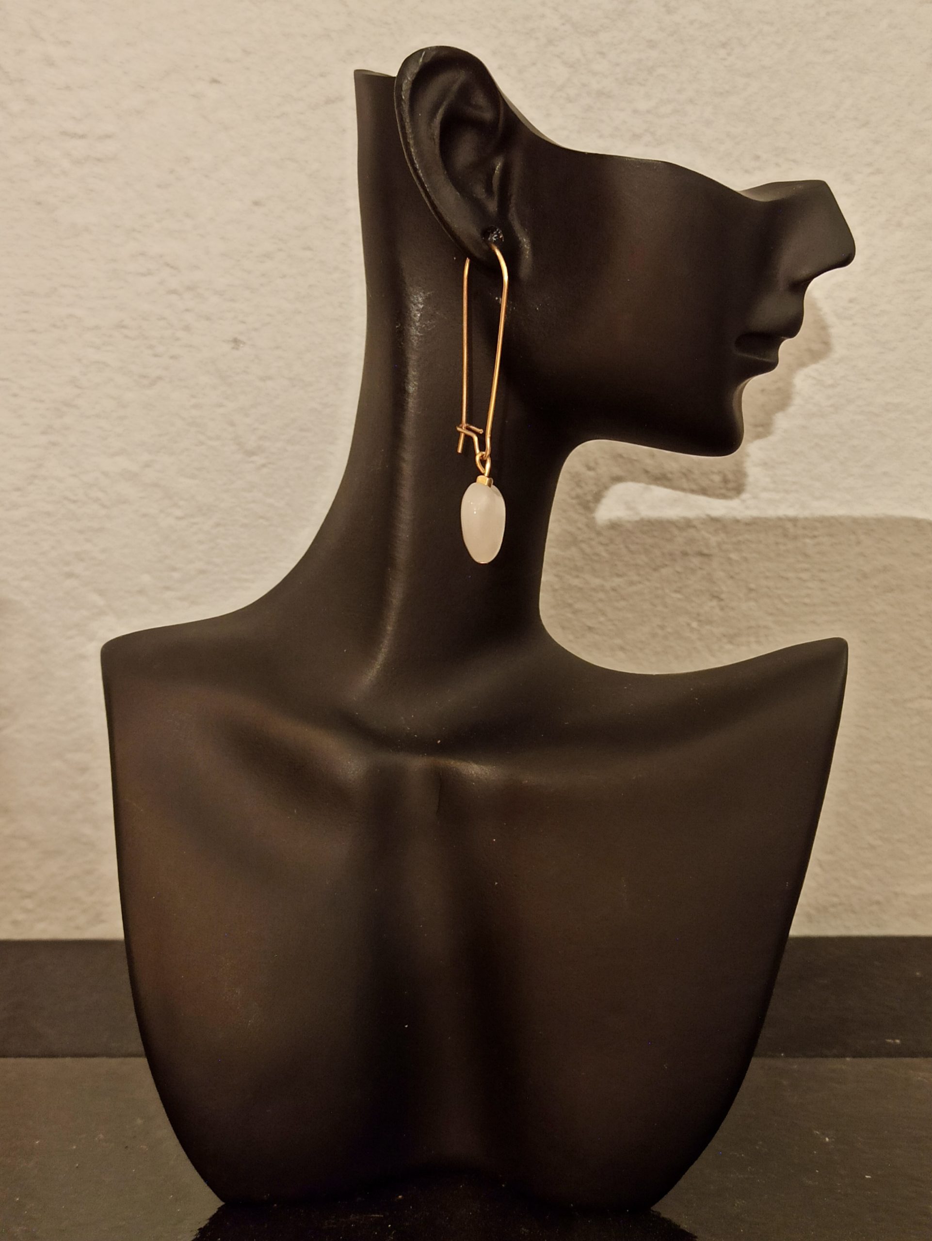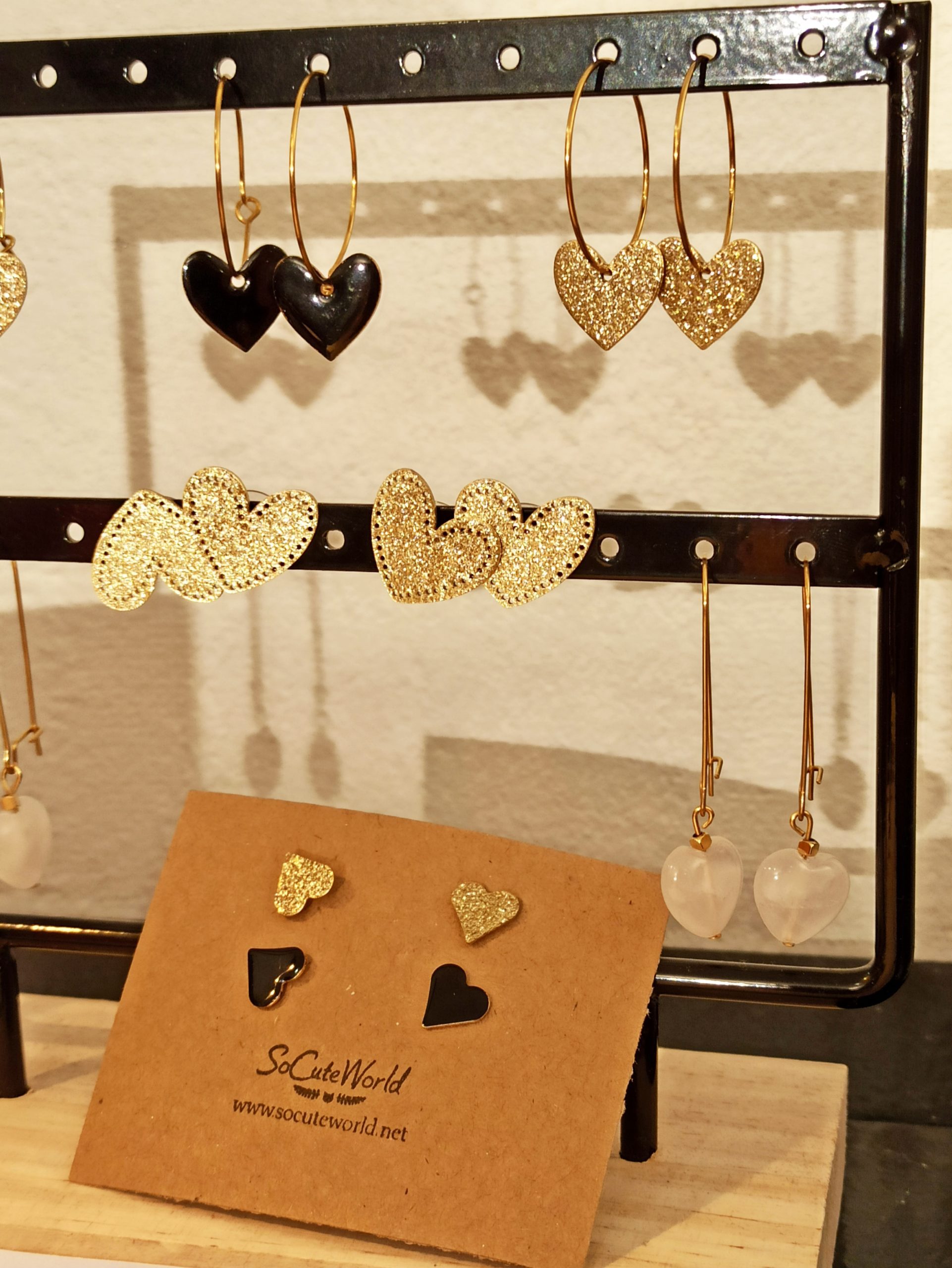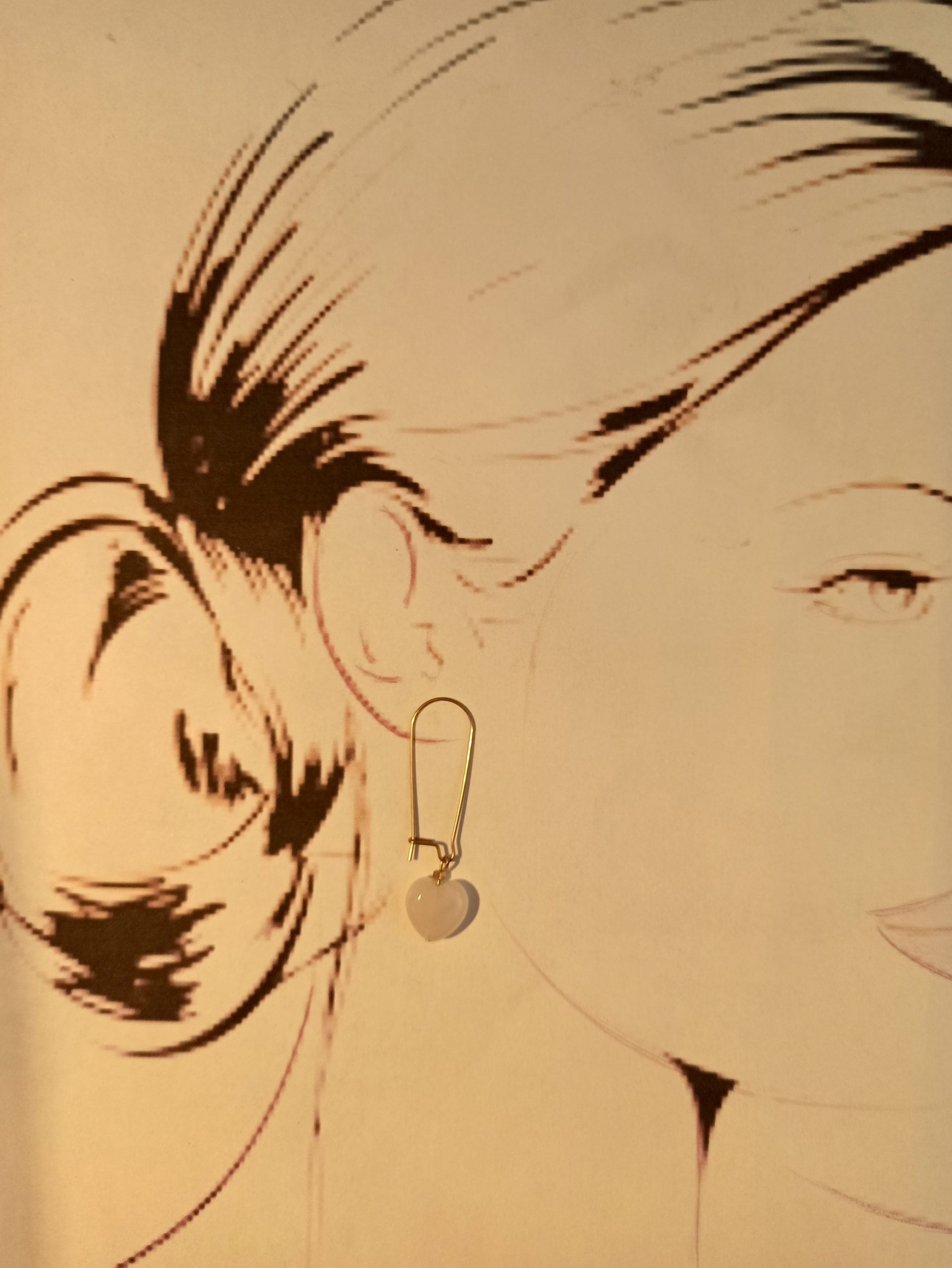 Très jolies paires de pendantes, le coeur est en pierre naturelle d’un rose très pâle.