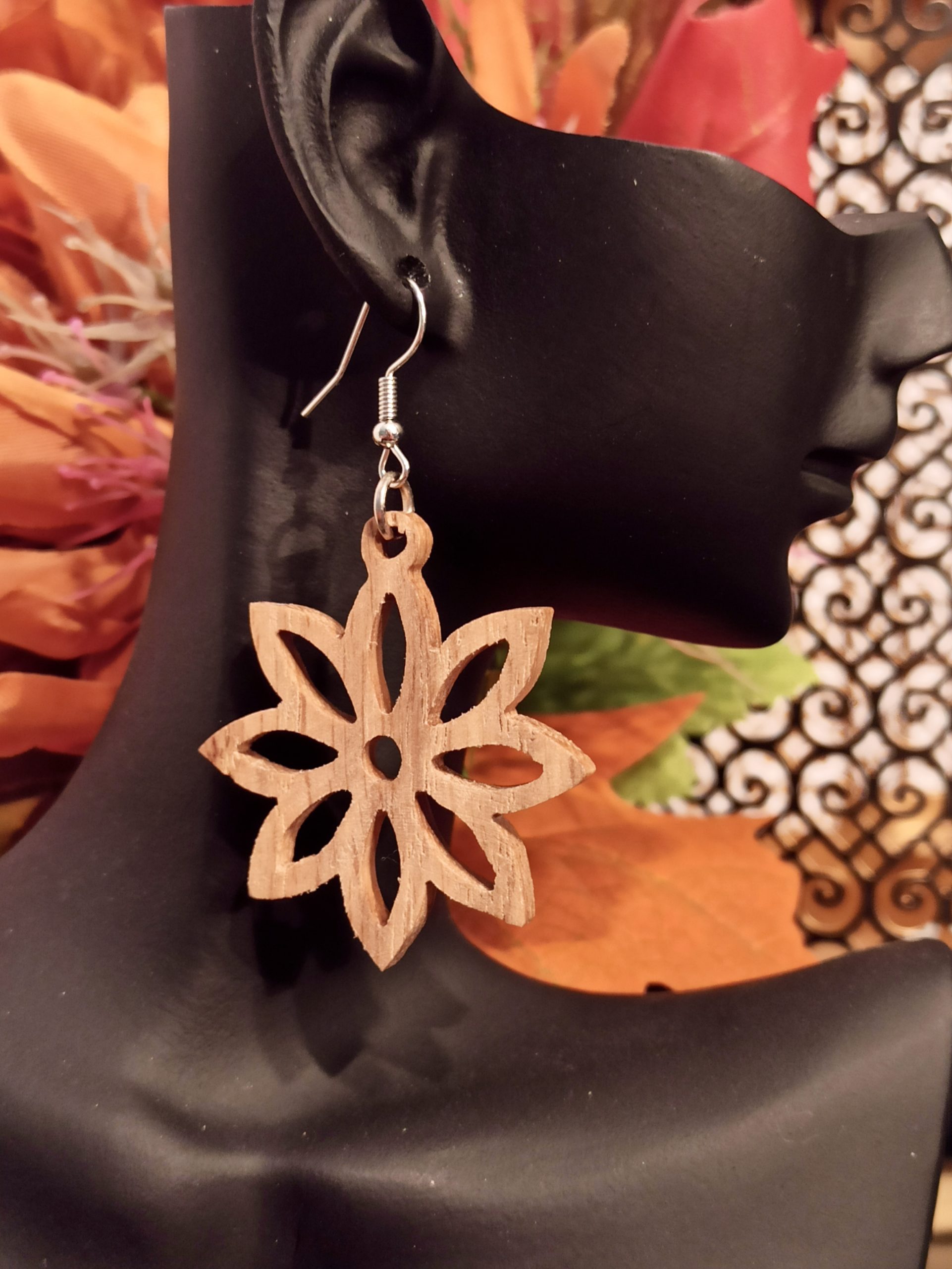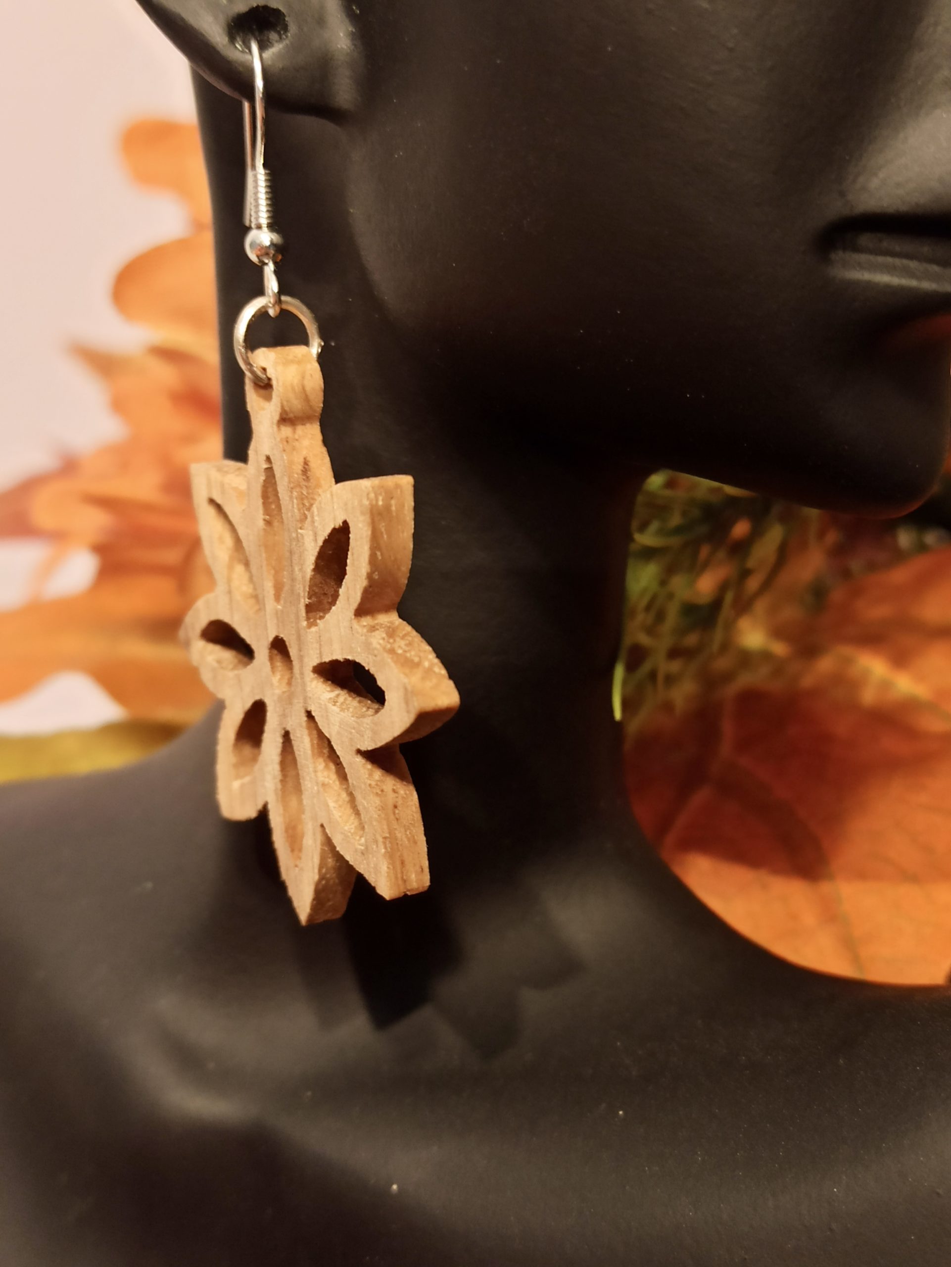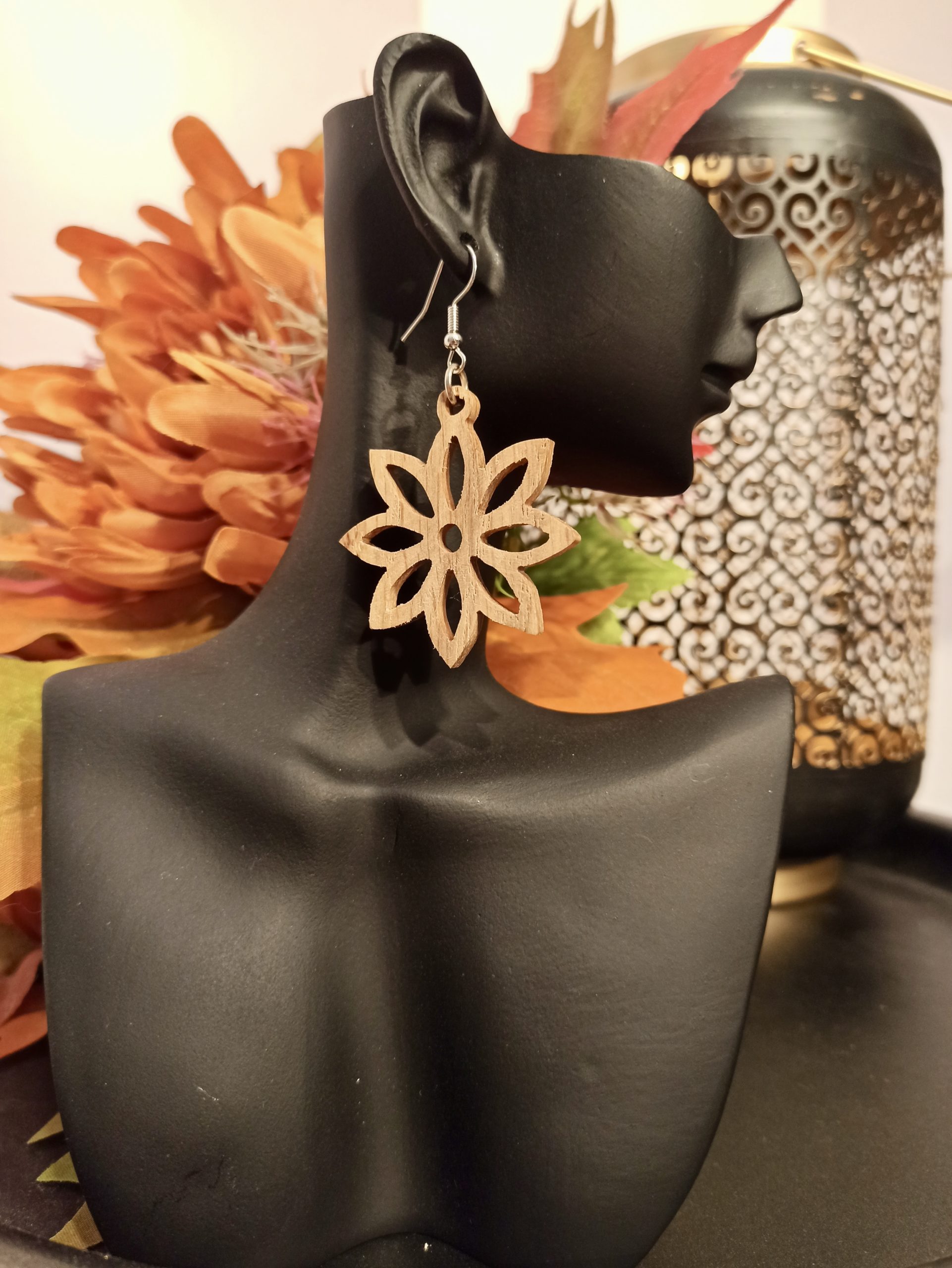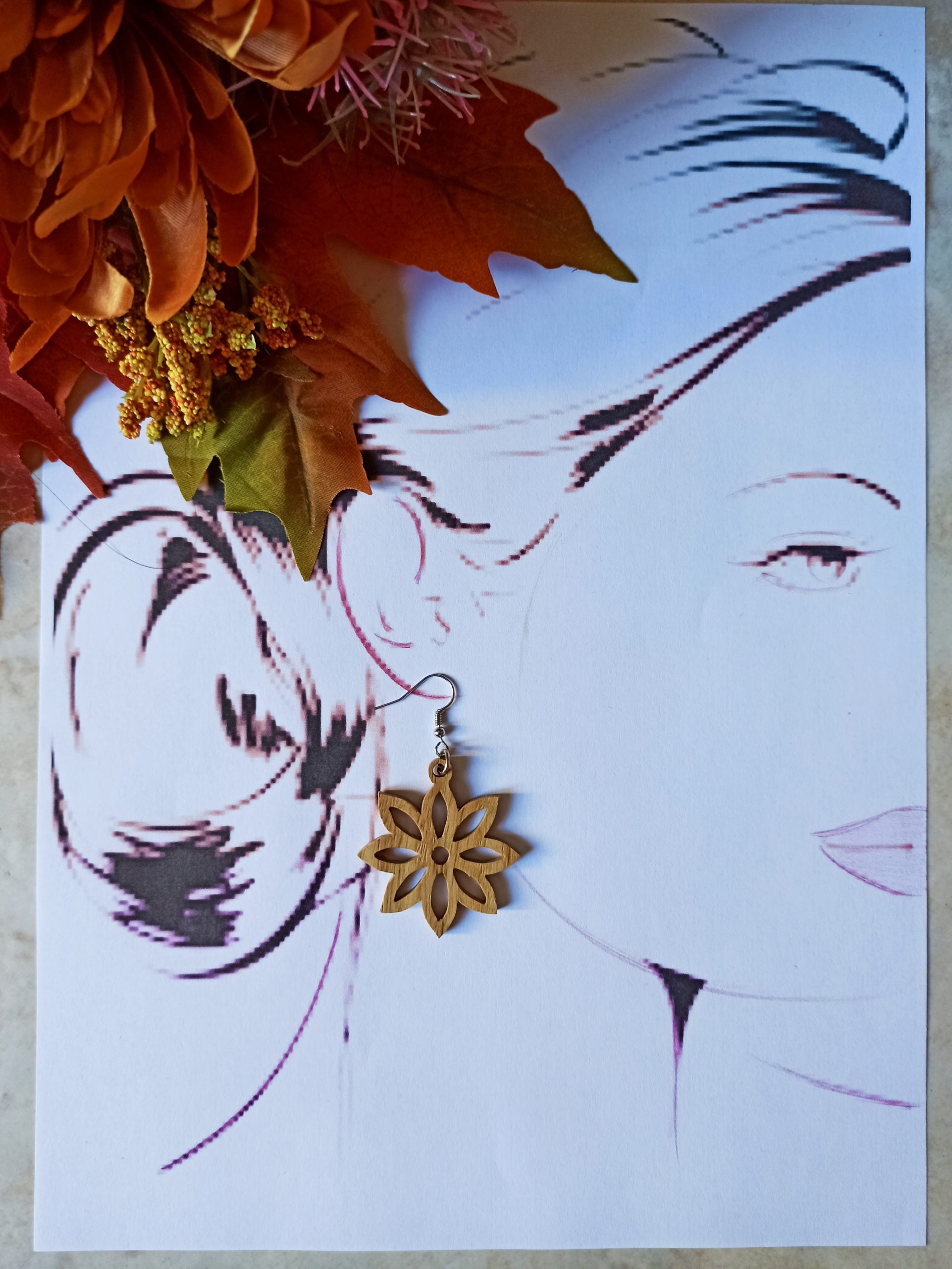 Paire de BO très lĂ©gère en bois de ChĂŞne en forme de fleur.Â