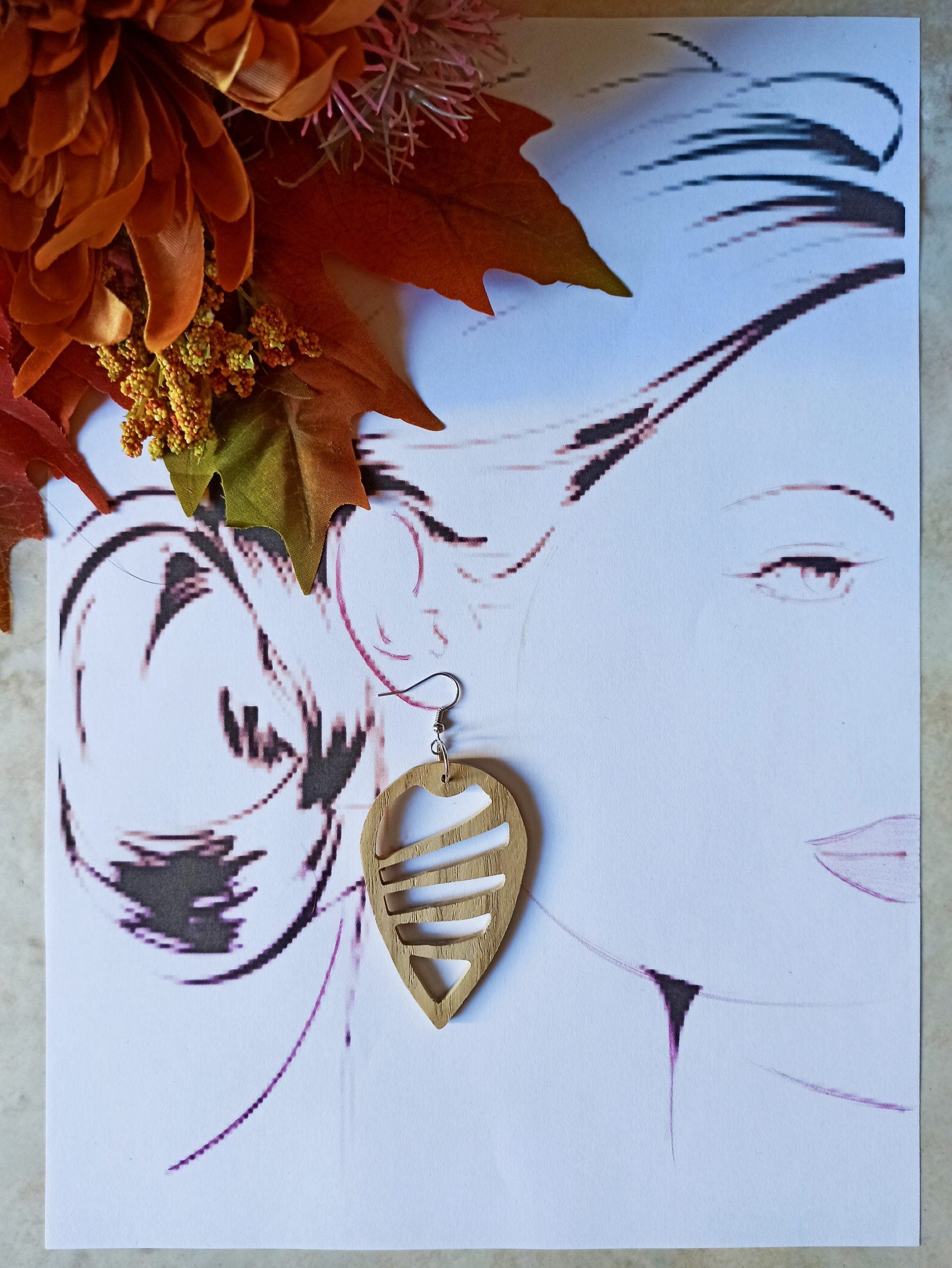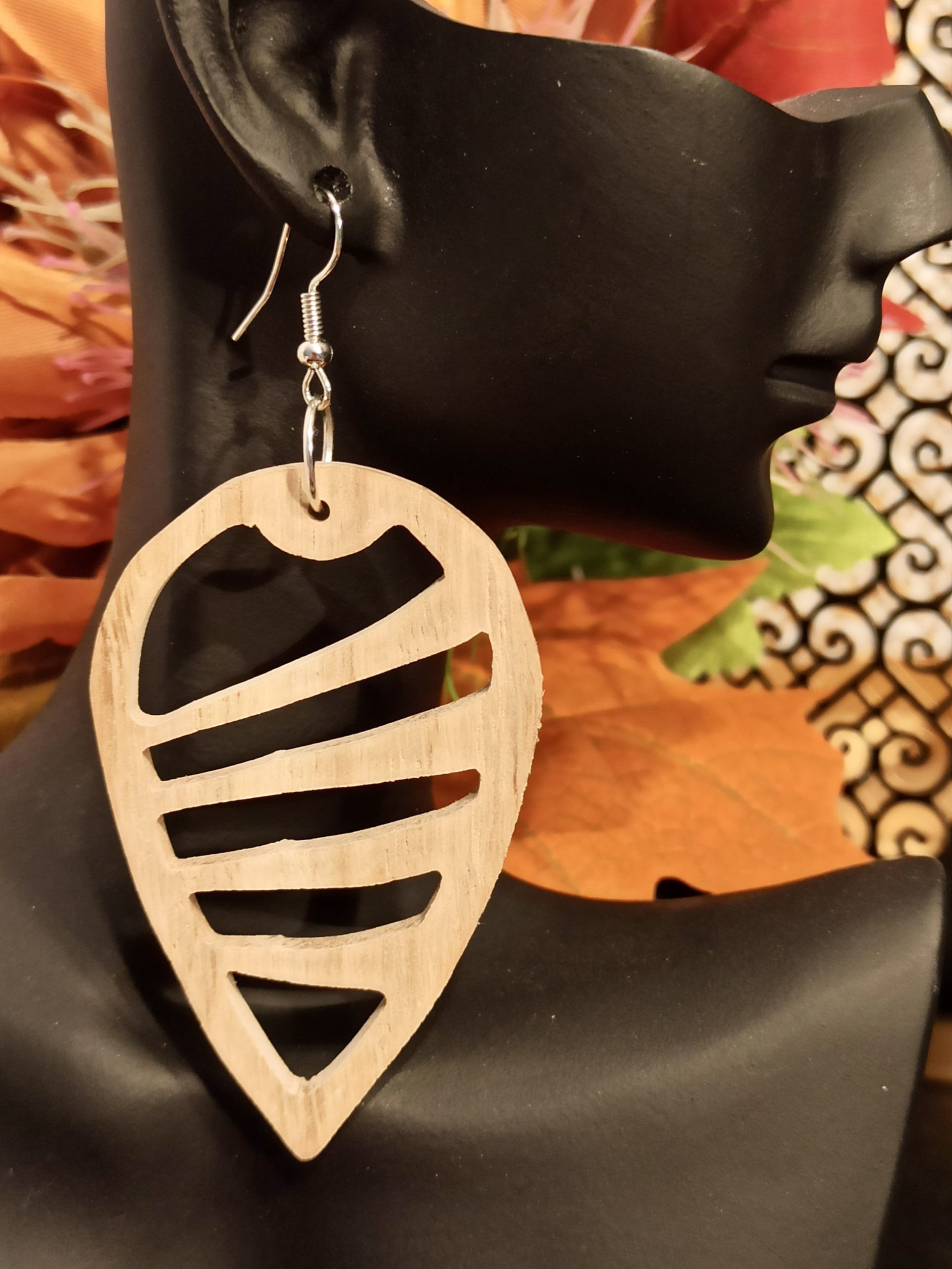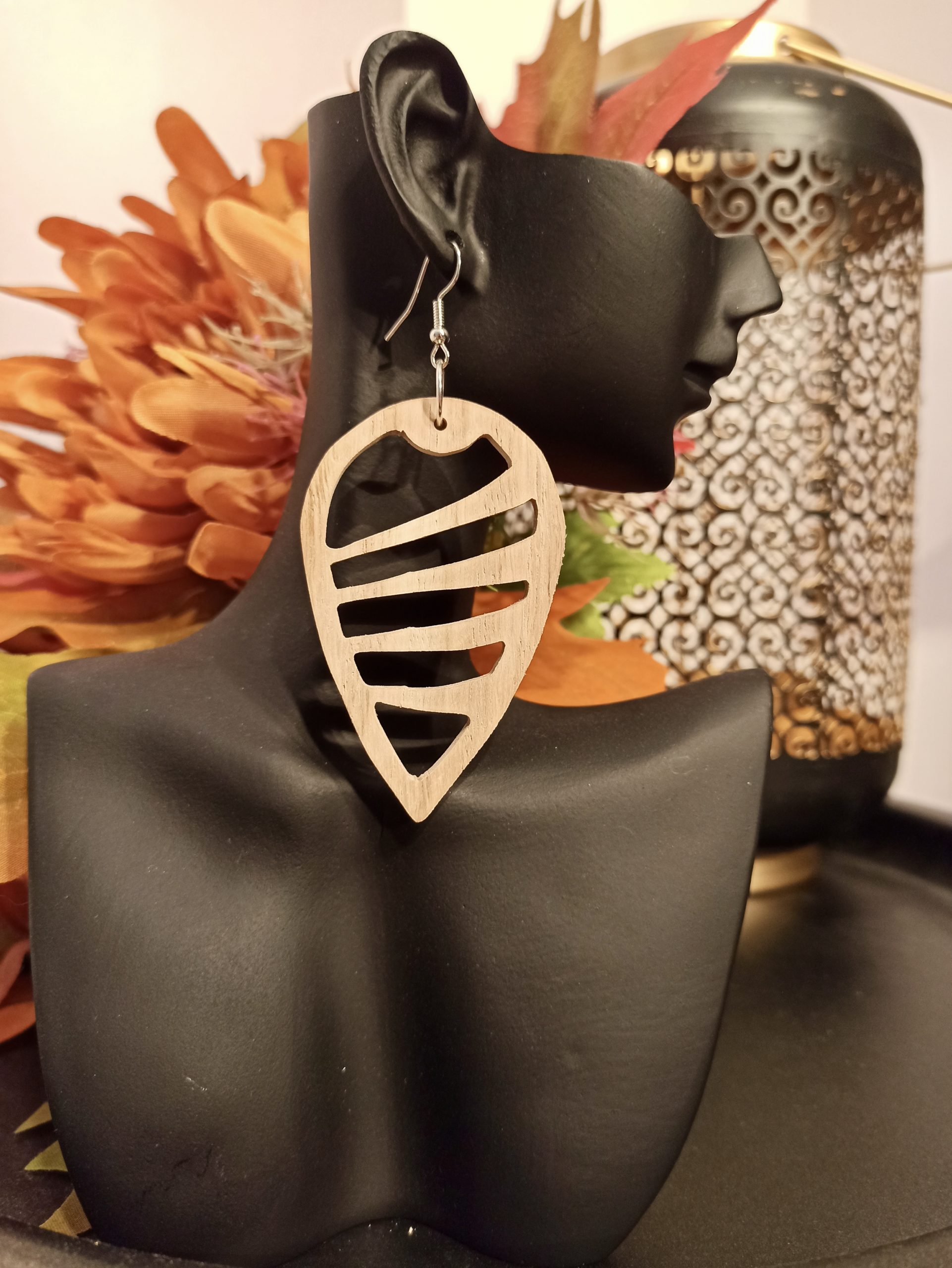 Paire de BO lĂ©gère en bois de ChĂŞne en forme de gouttes Ă©vidĂ©es aux 4 rainures.Â