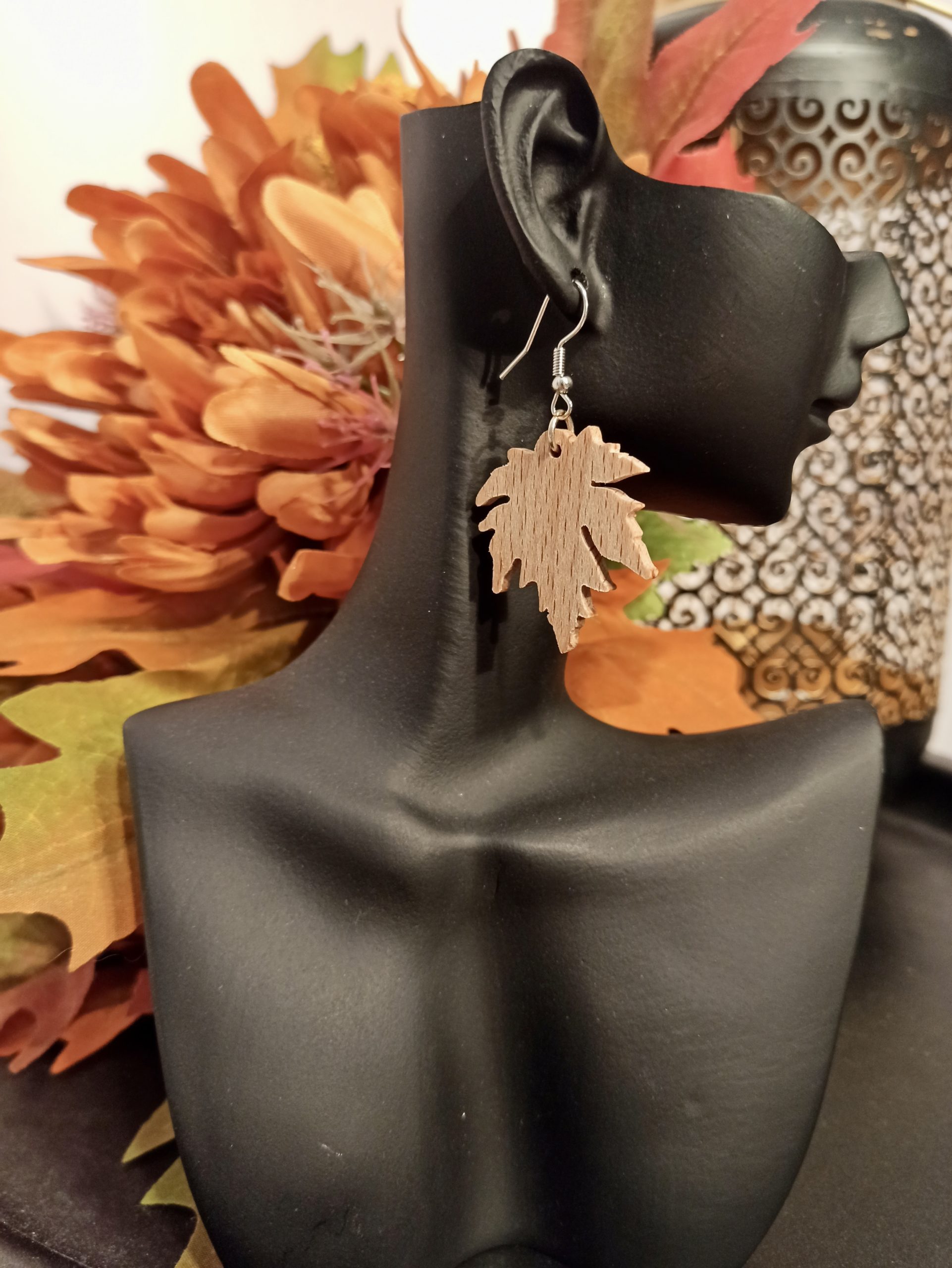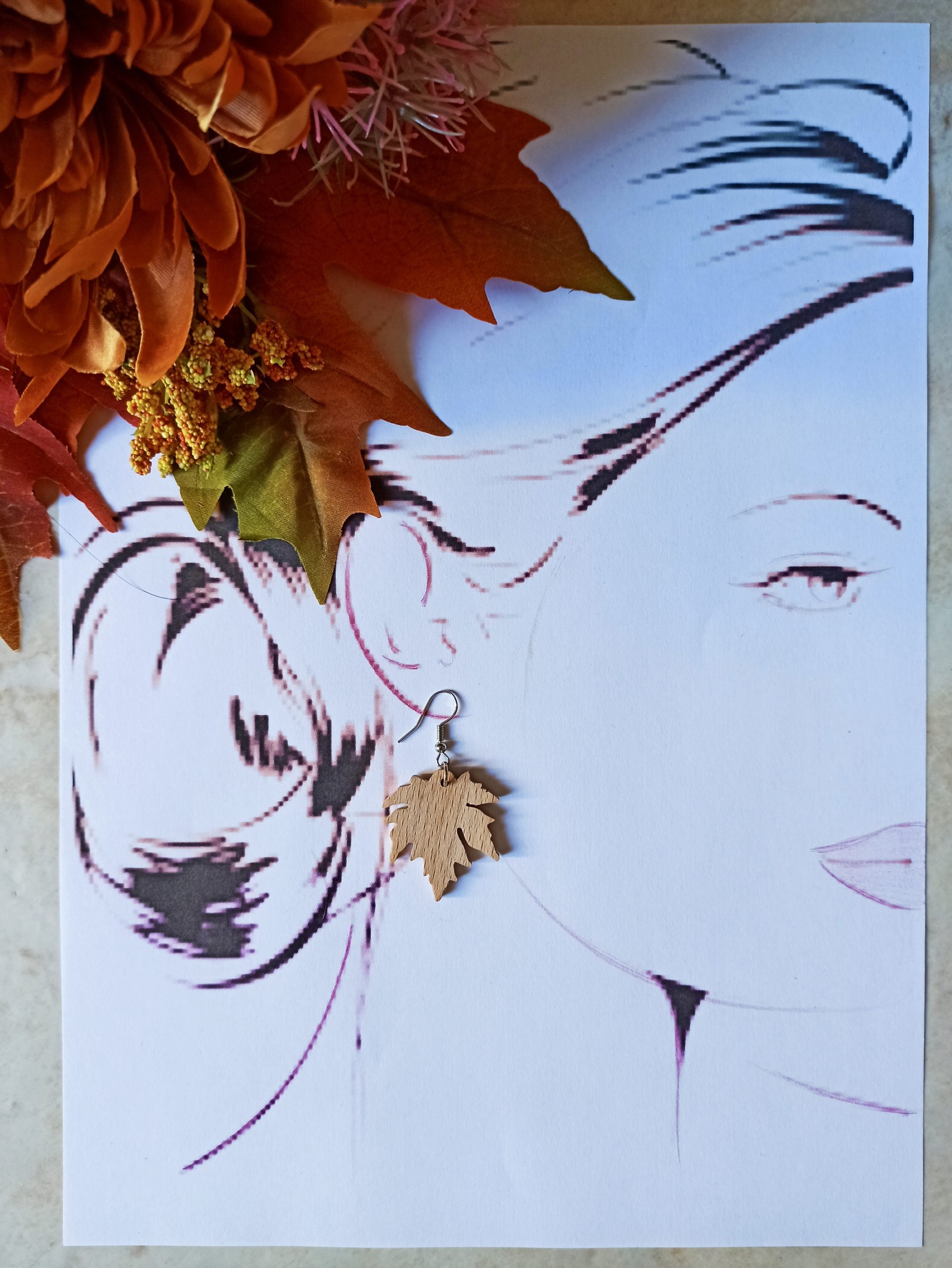 Paire de BO très légère en bois de Hêtre en forme de feuille de vigne.