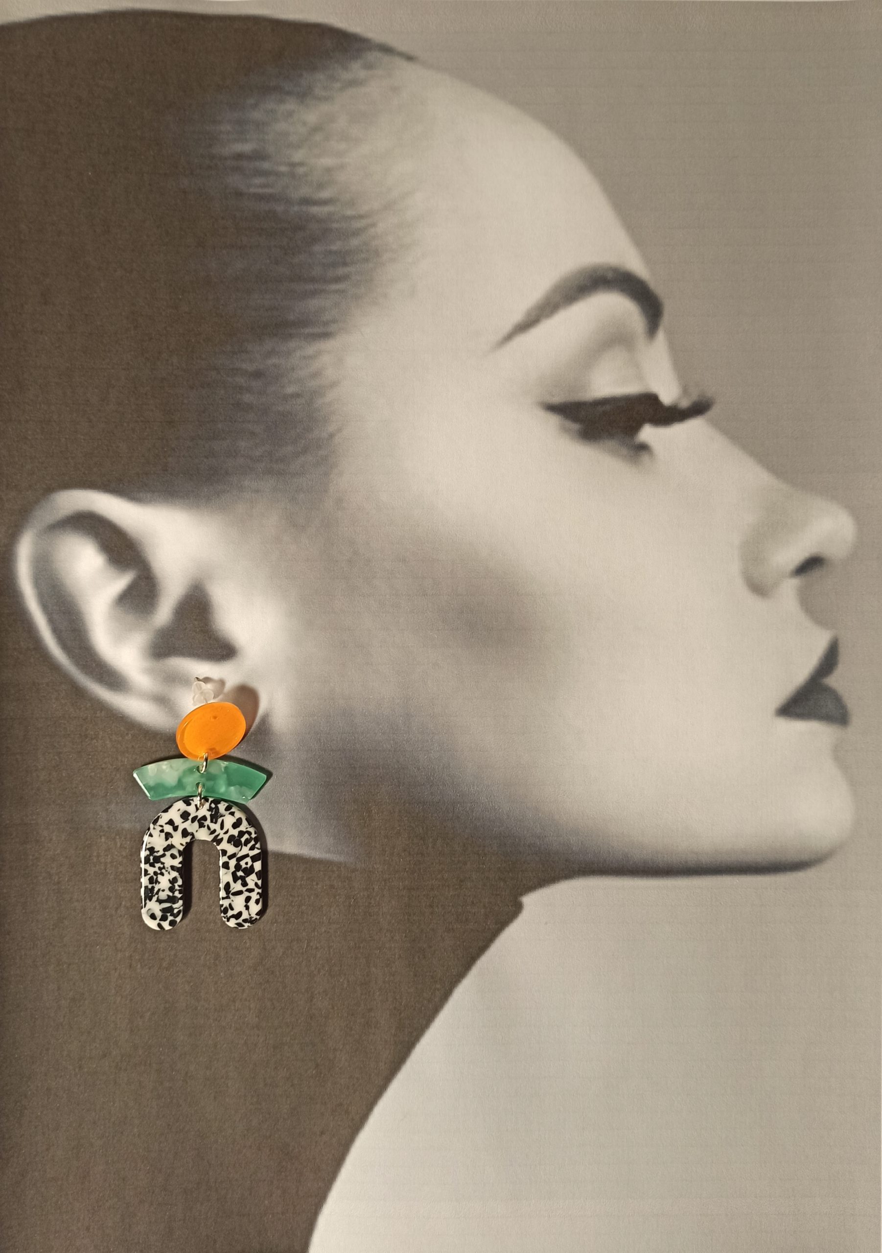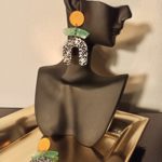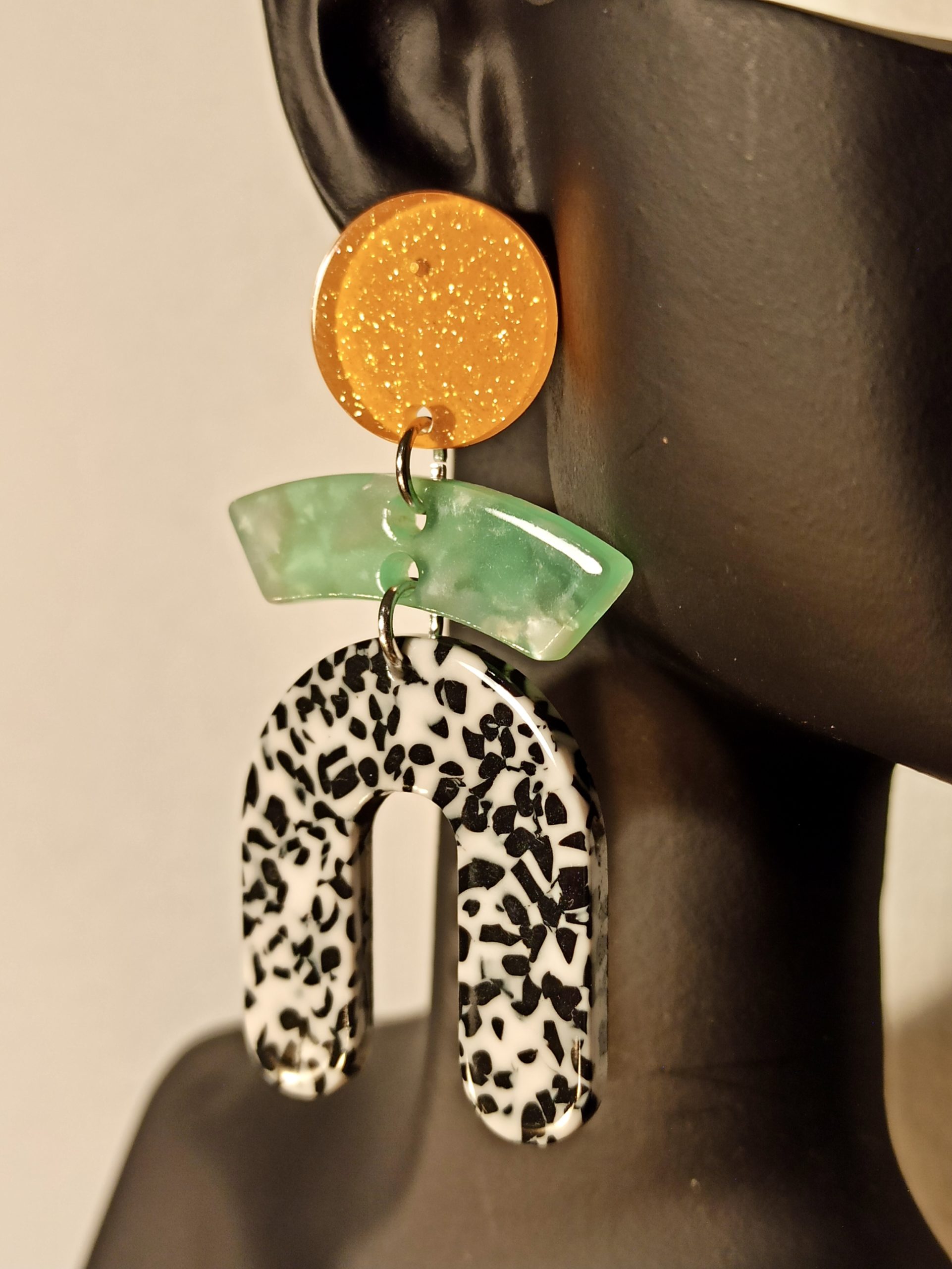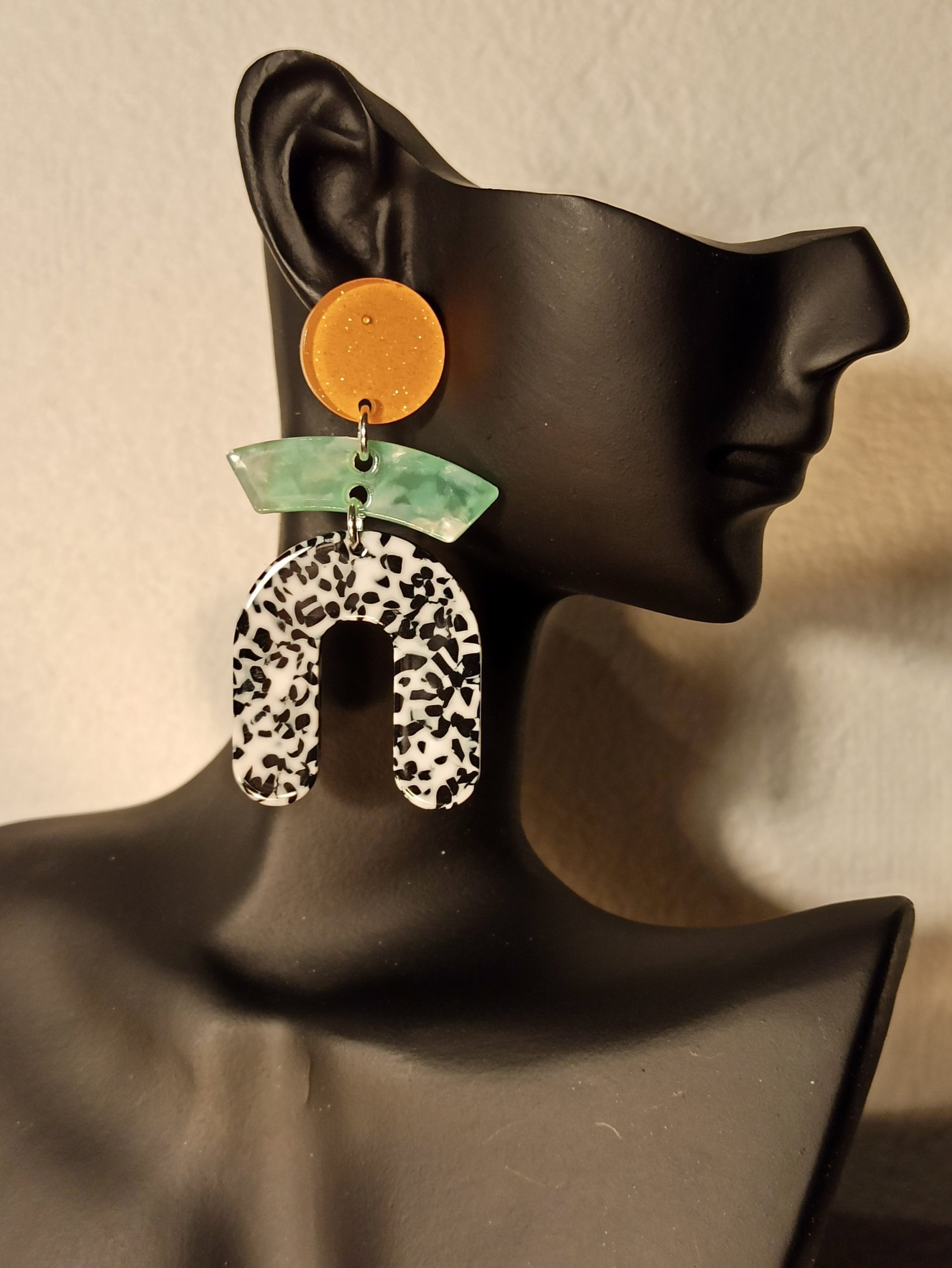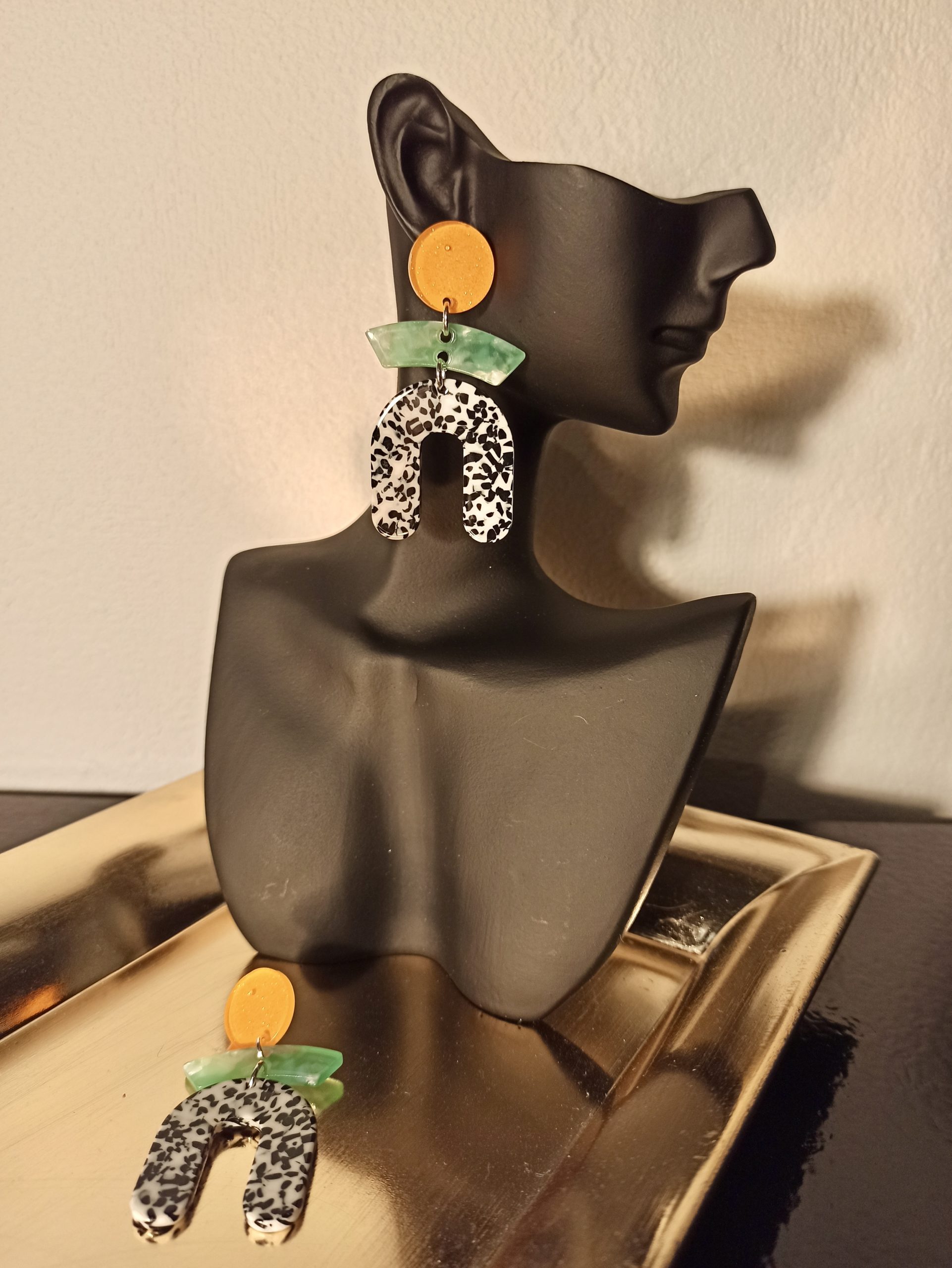 Boucles D’Oreilles Clous Orange, Vert et Tacheté Noir Blanc