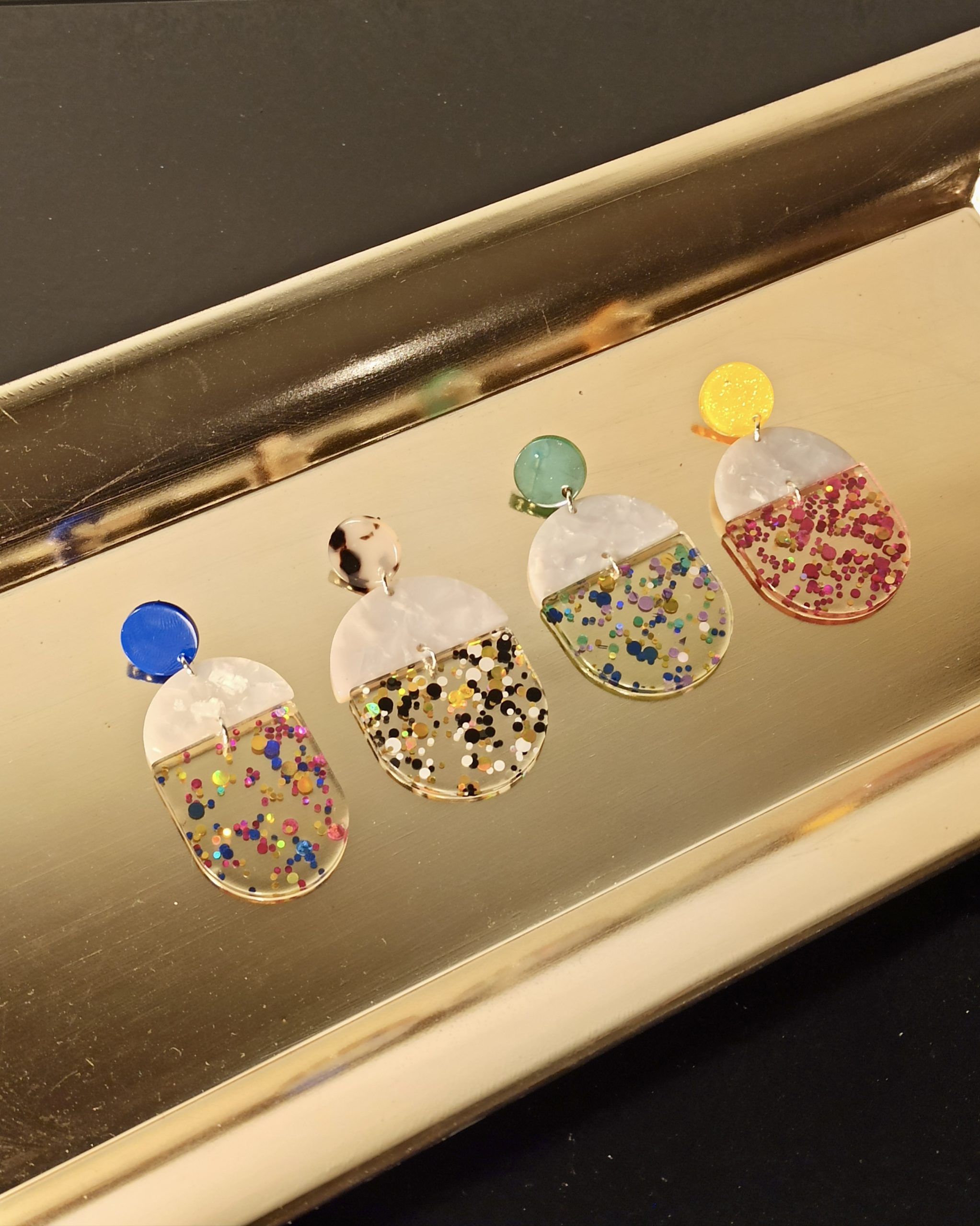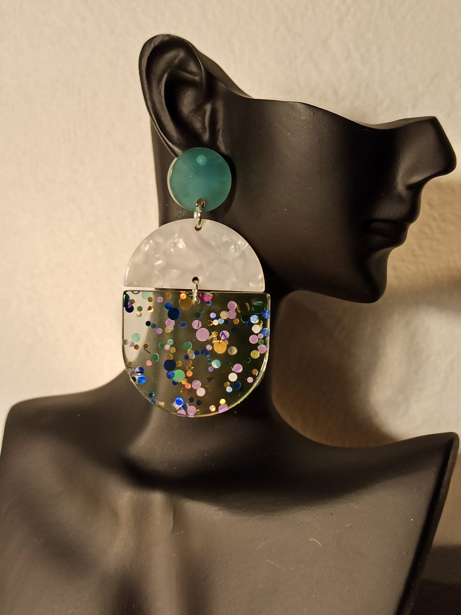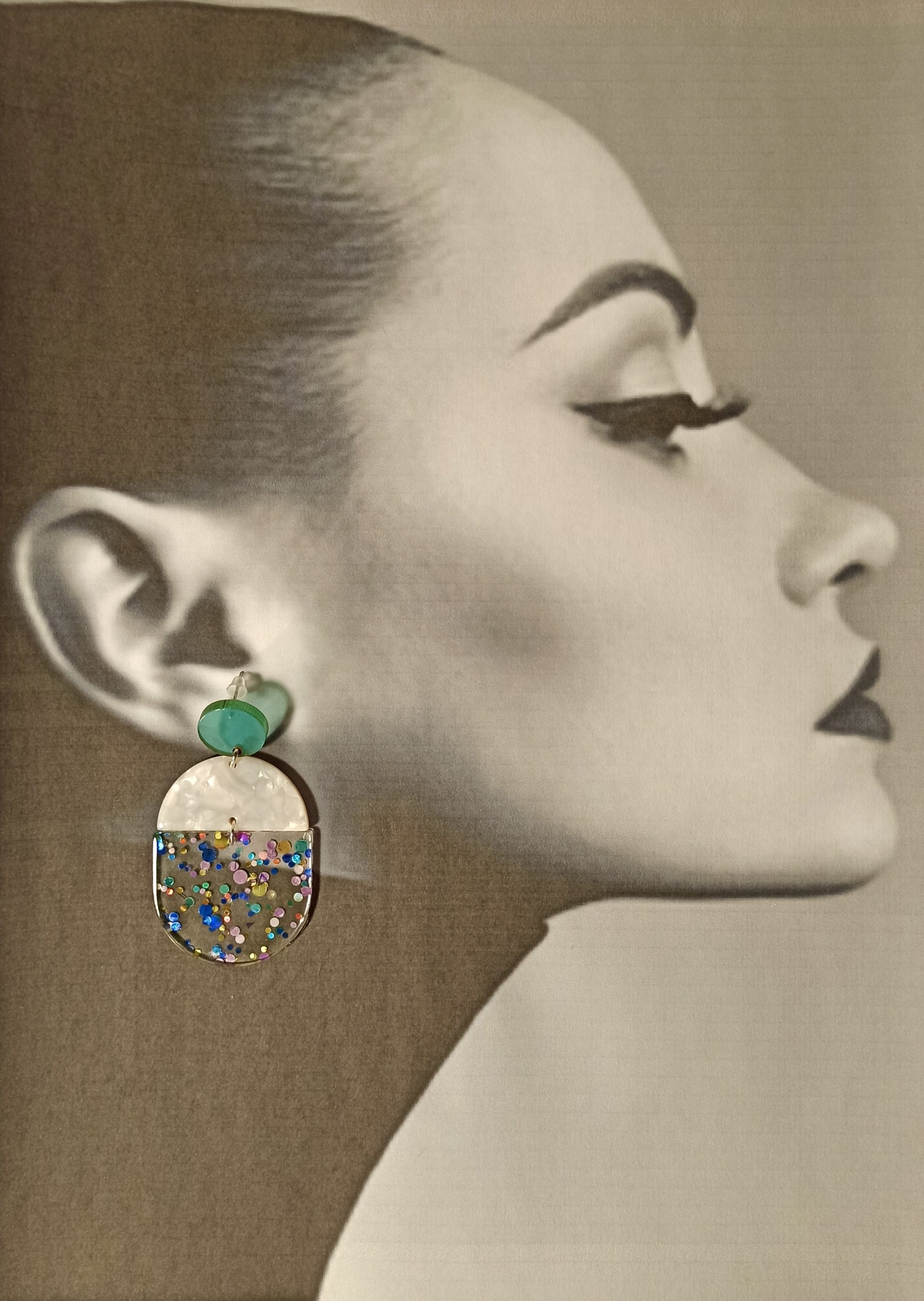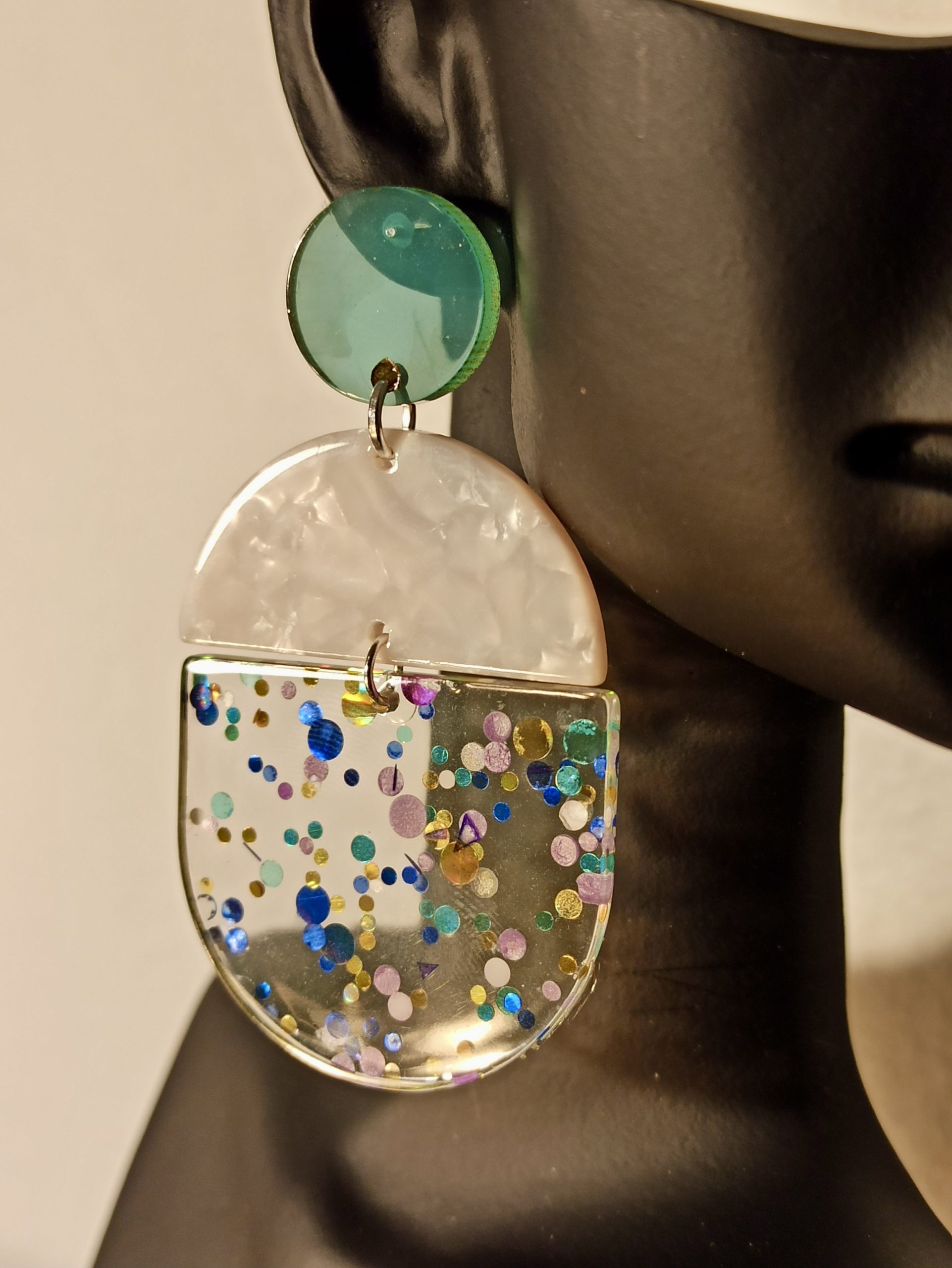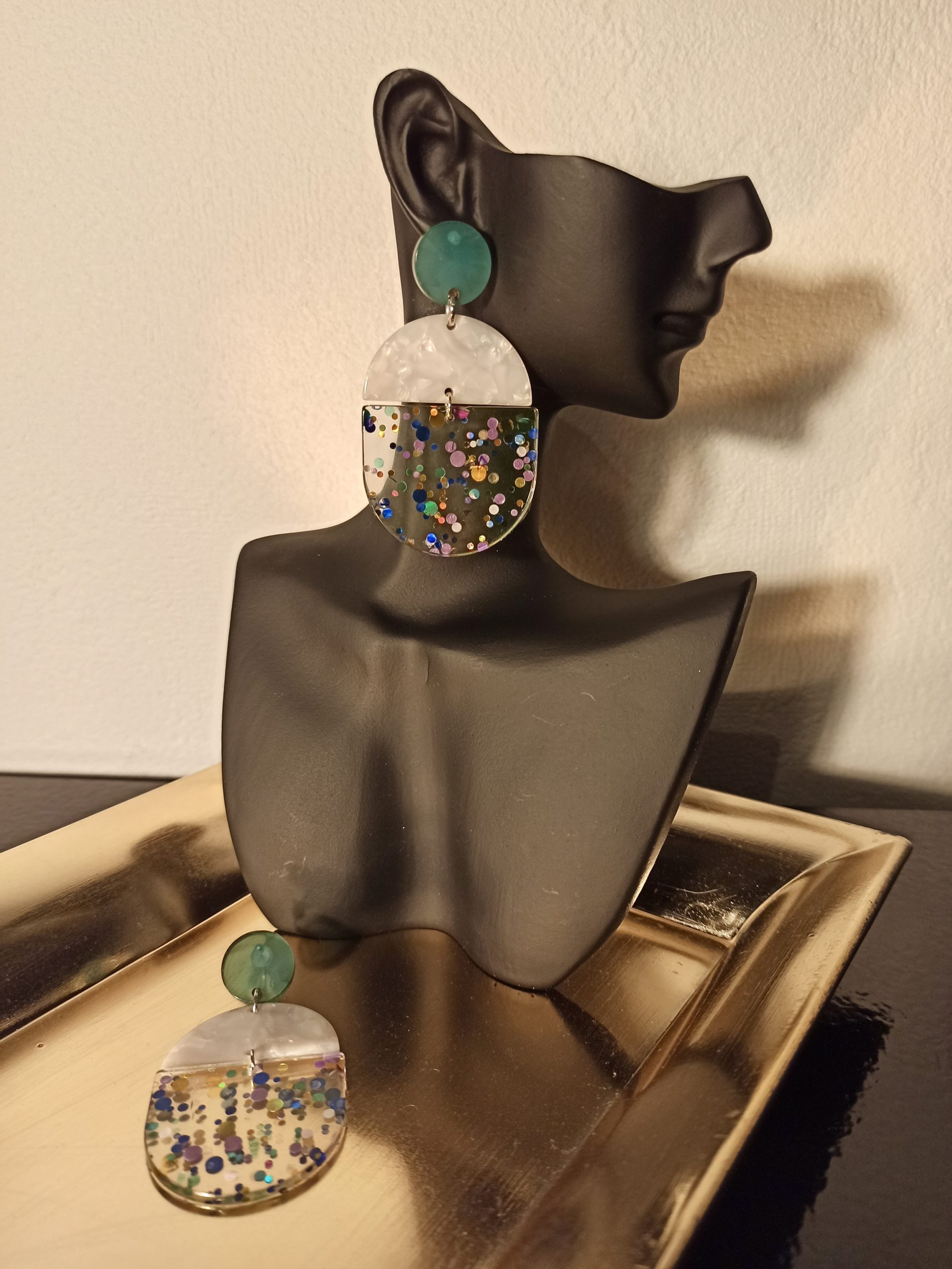 Couleur: Vert transparent, Nacré blanc et paillettes Bleu, Vert, Rose et Or.