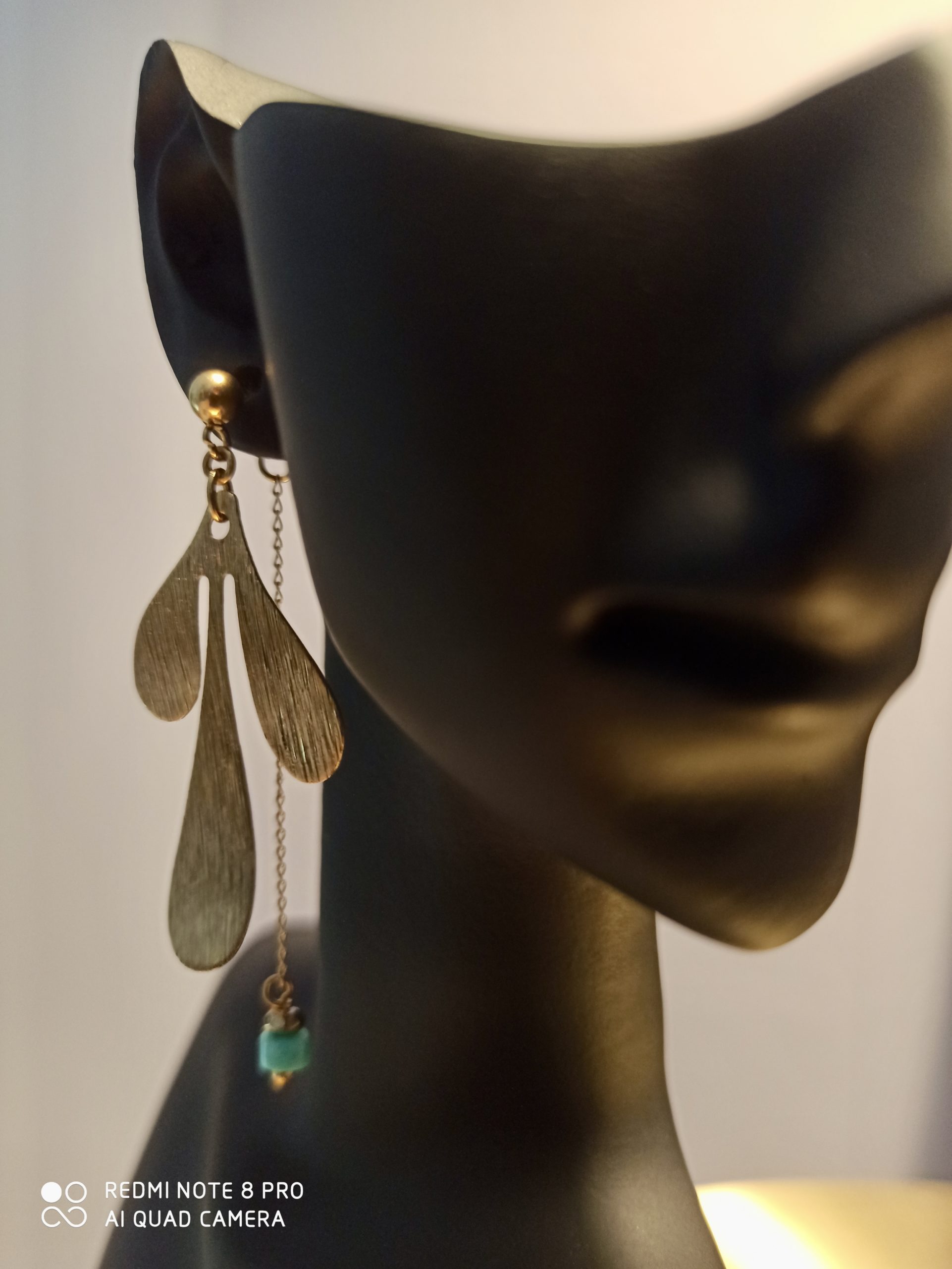 La breloque turquoise est fixée sur l’attache donc vous pouvez porter la goutte à l’avant avec une attache simple pour un autre style.