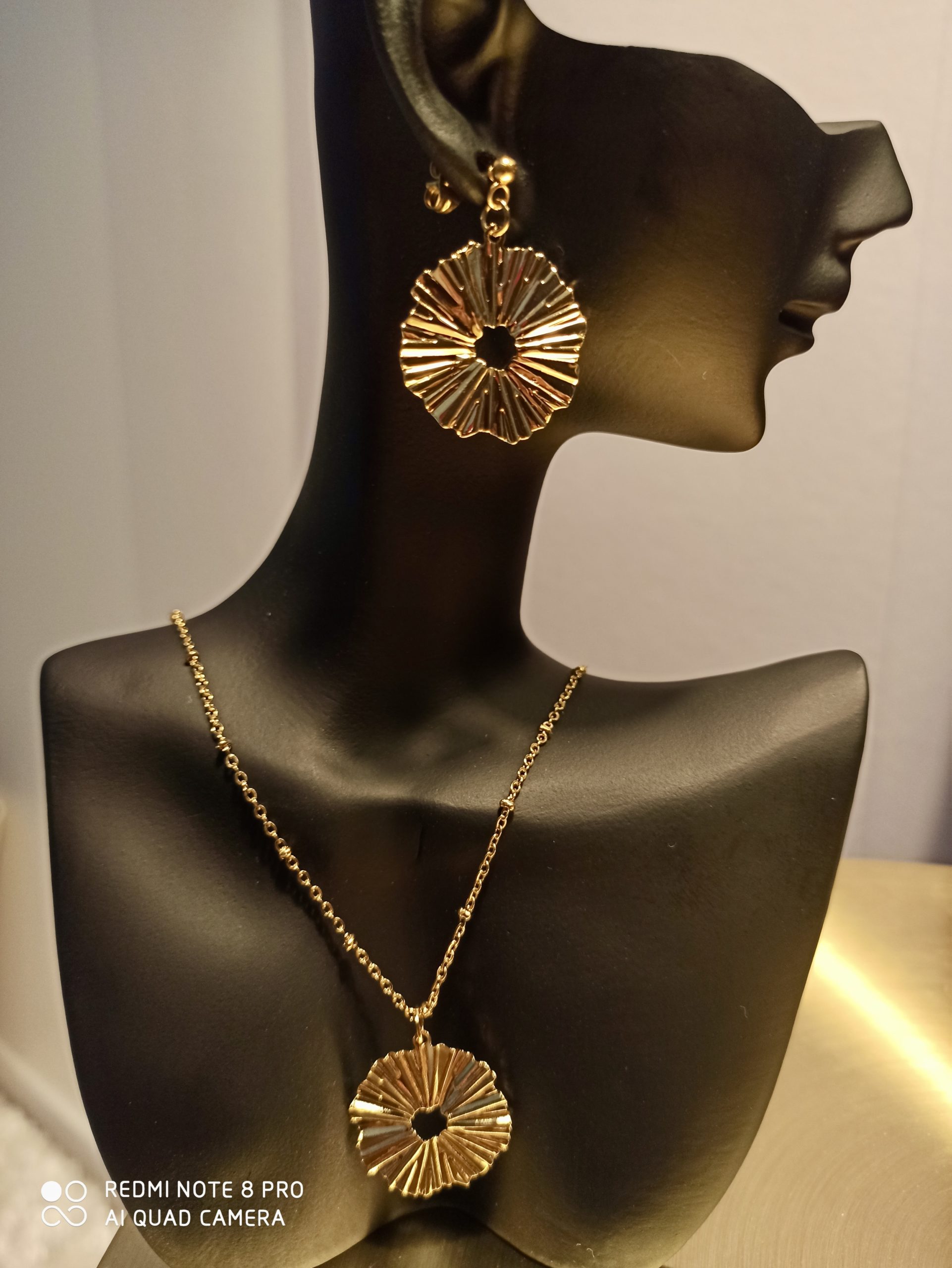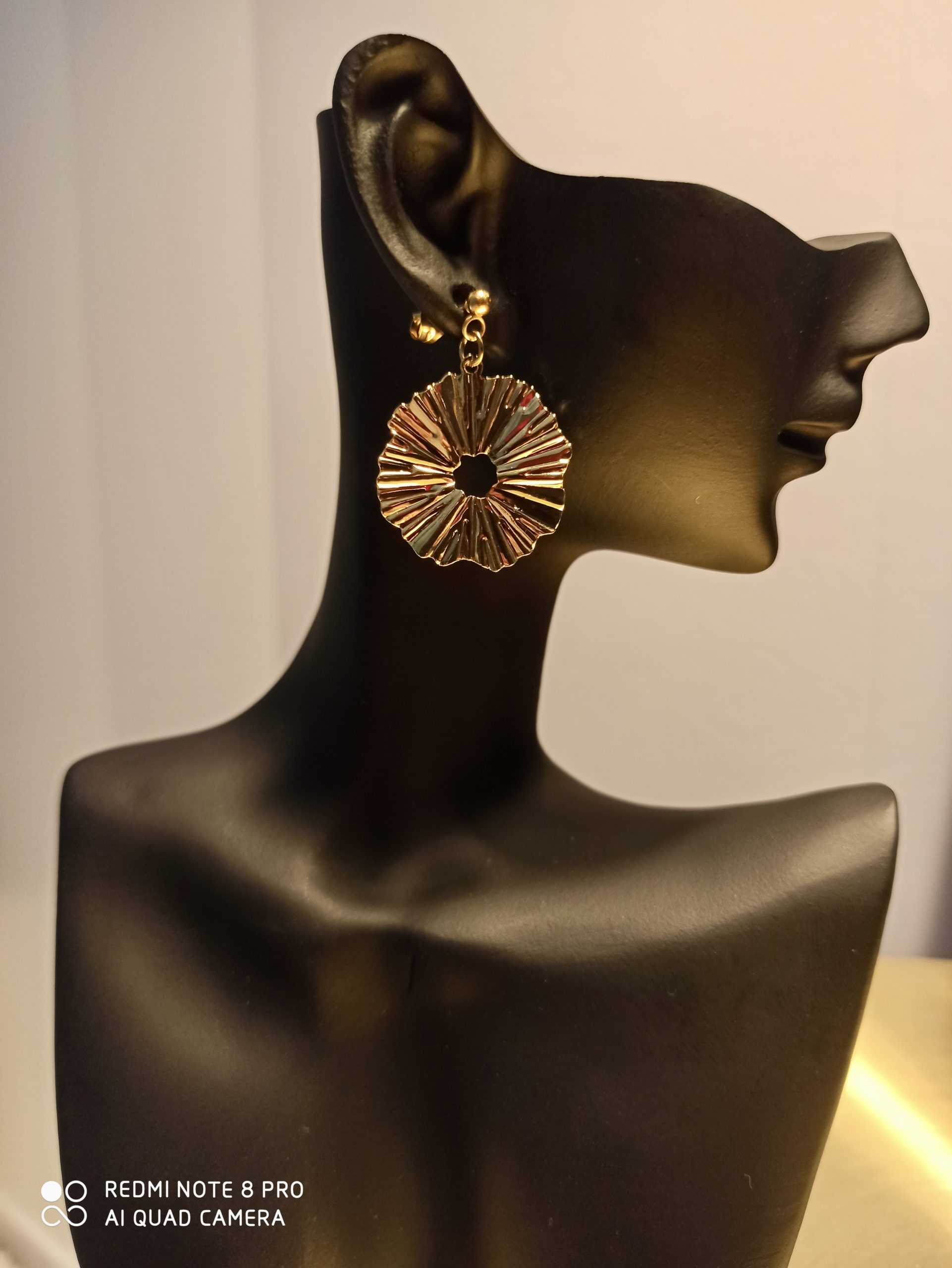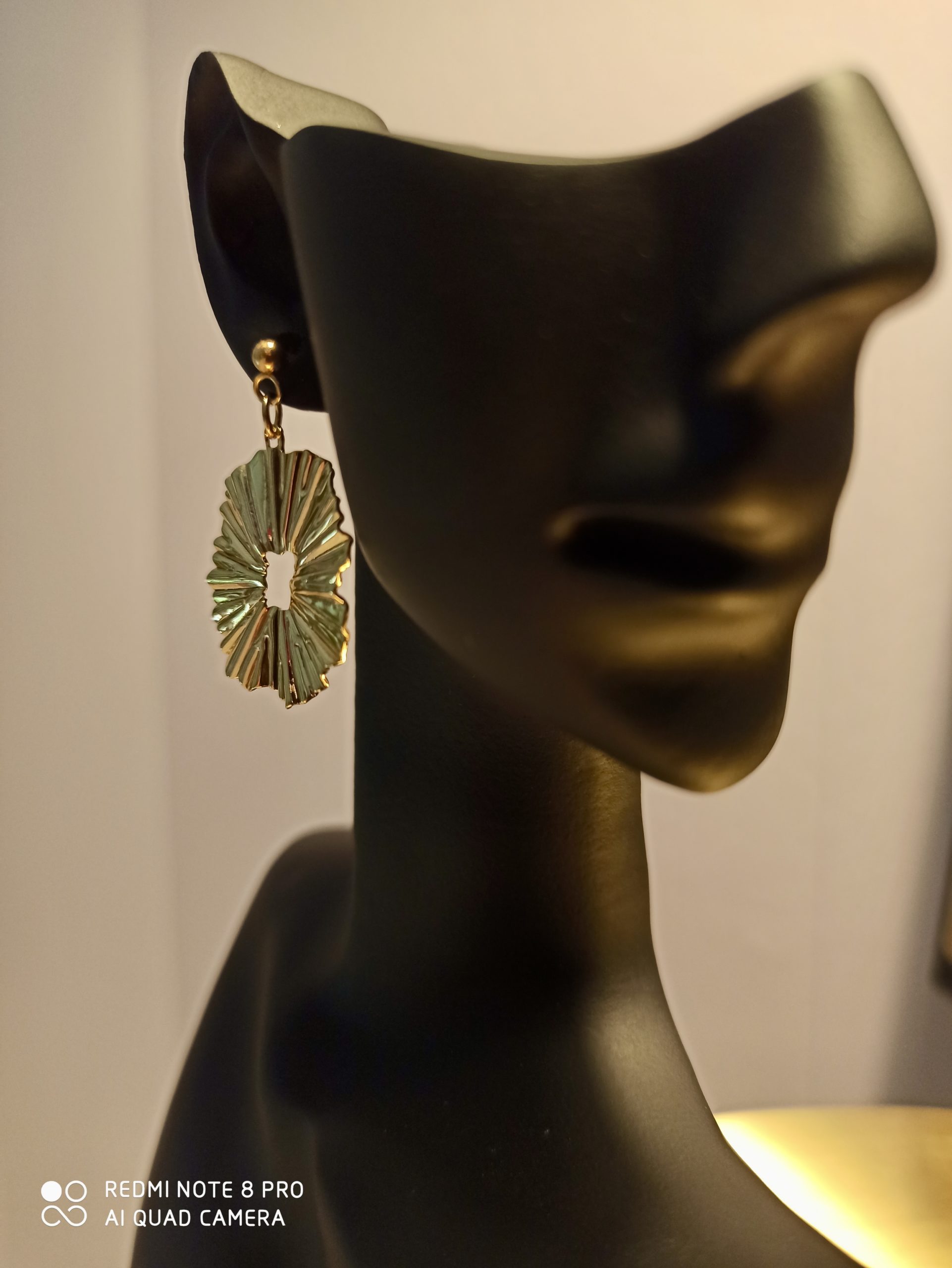 Boucles d’oreilles en acier inoxydable composé d’un pendentif doré à l’or fin.