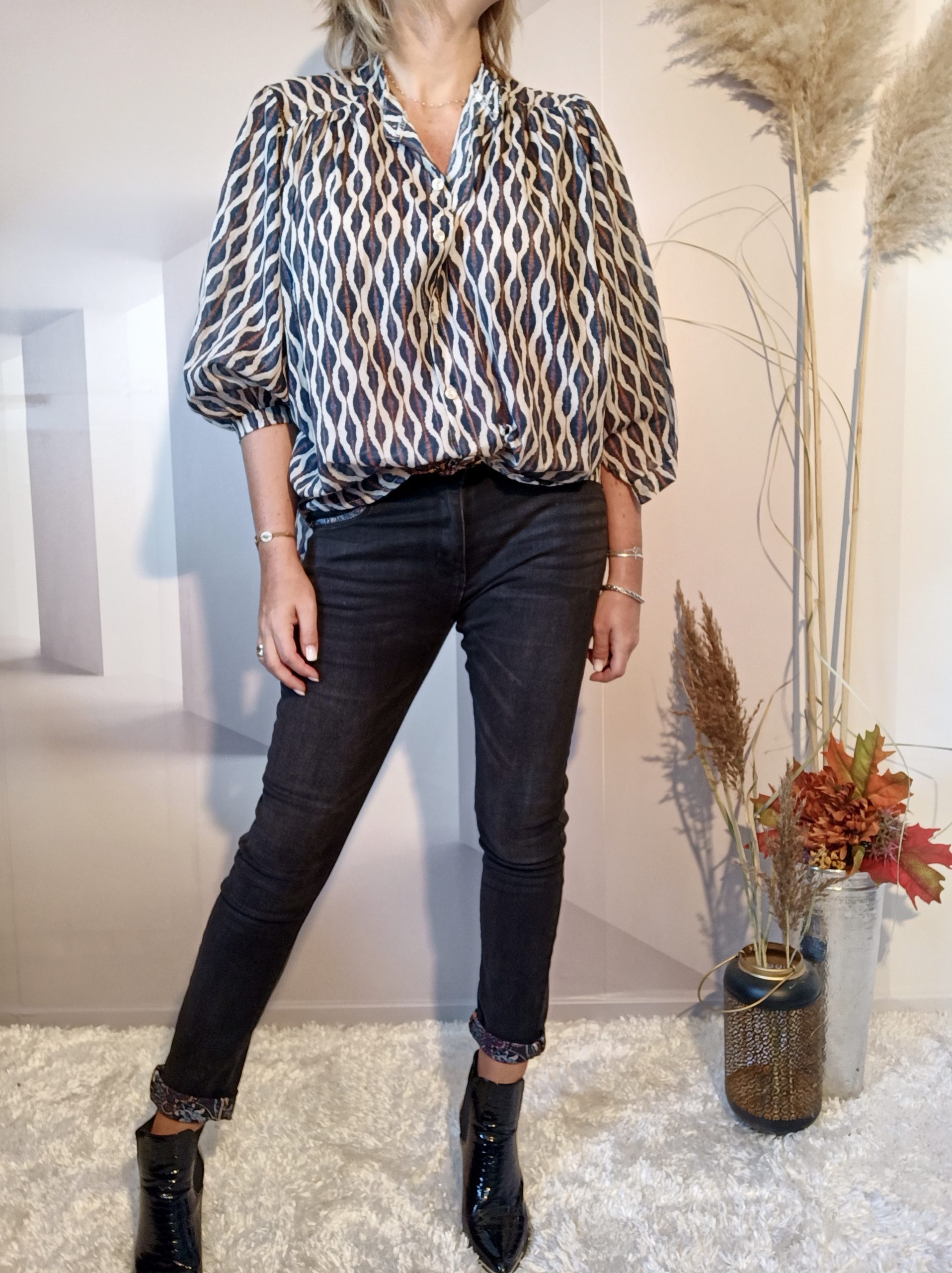 Les manches sont 3/4 et bouffantes.