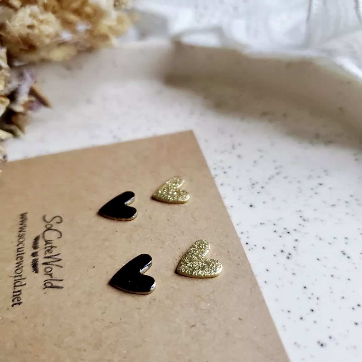 Un joli duo de boucles d’oreilles clous en forme de cœurs.