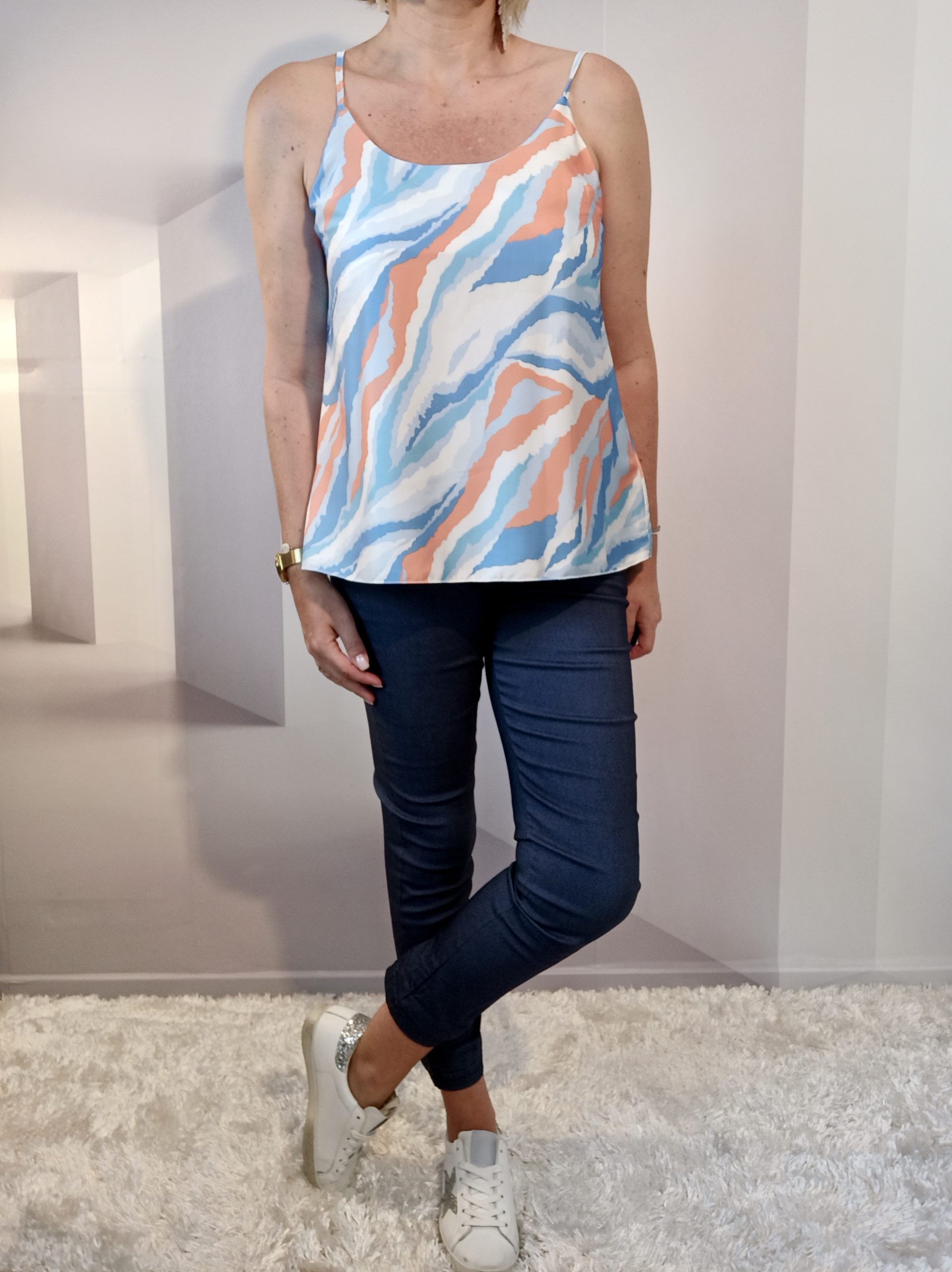 Top effet satinée qui s’accorde avec plusieurs tenues !