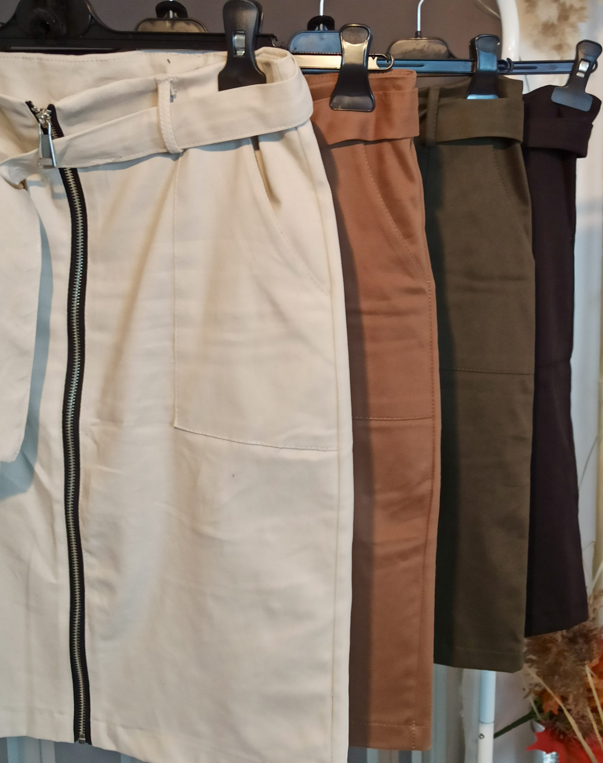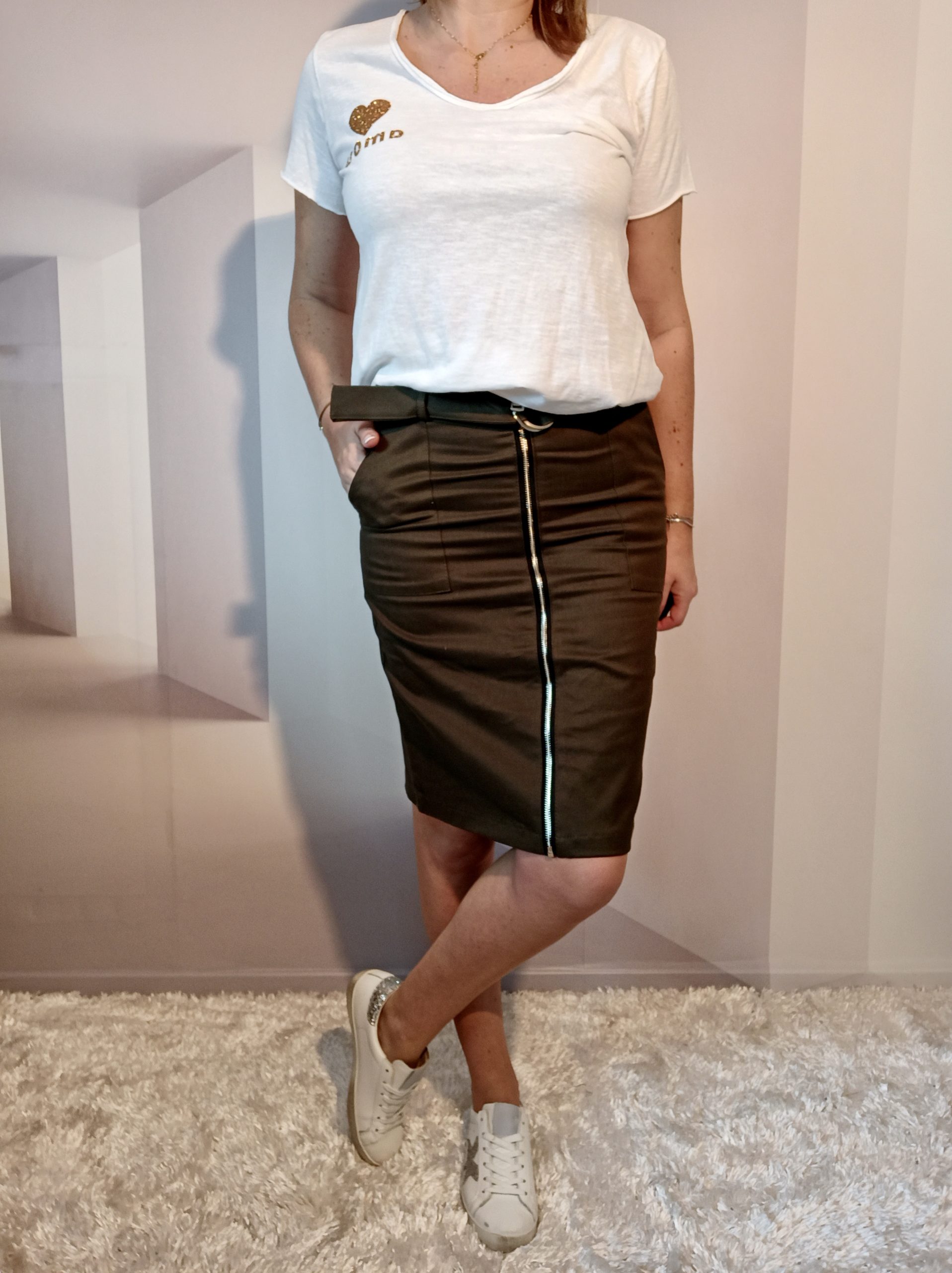 Jupe droite, très proche du corps, zippée sur toute la hauteur, effet assuré !
