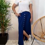 Je porte la fente sur le coté avec les talons, et au centre avec les baskets, à porter en fonction de vos envies.