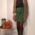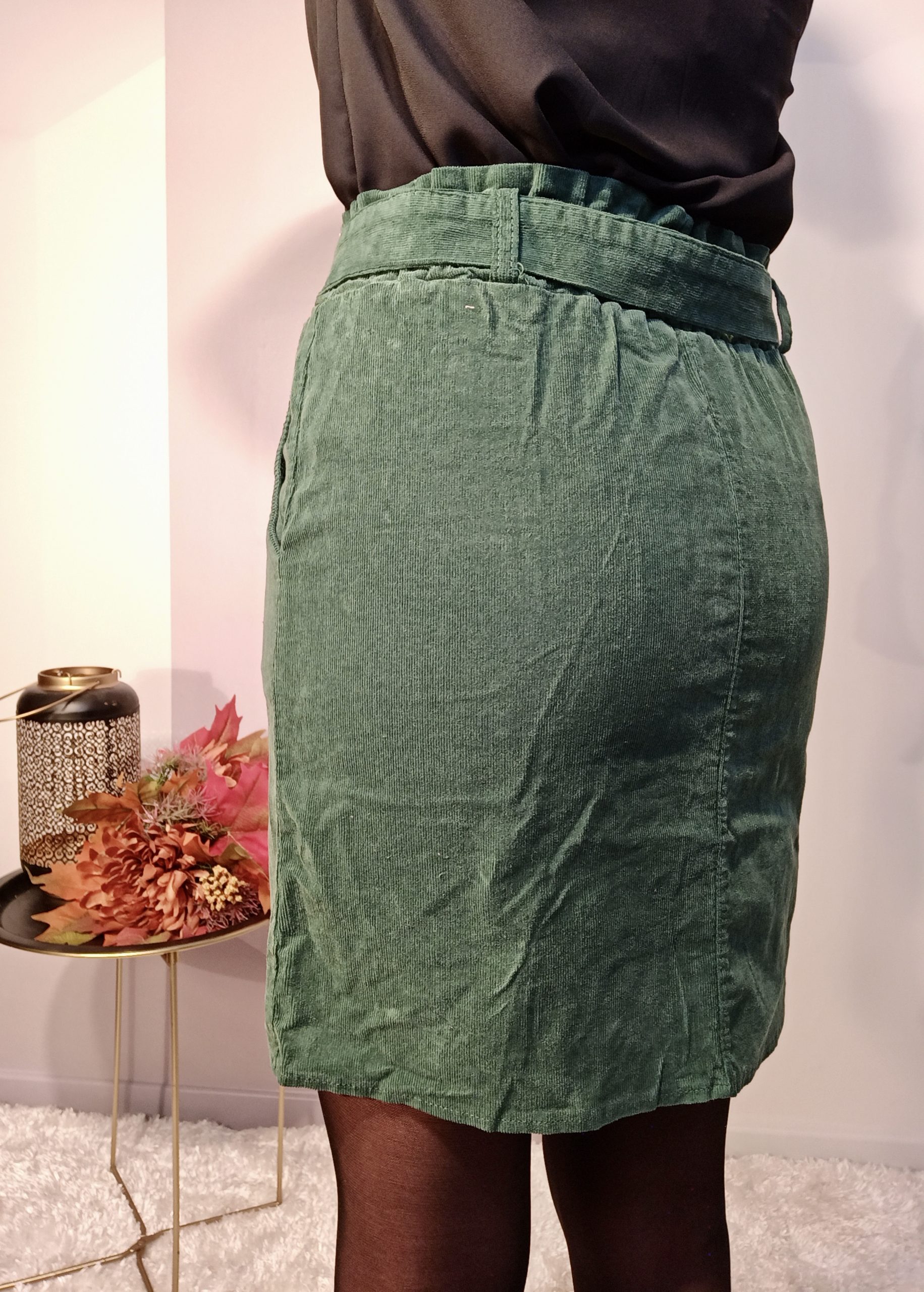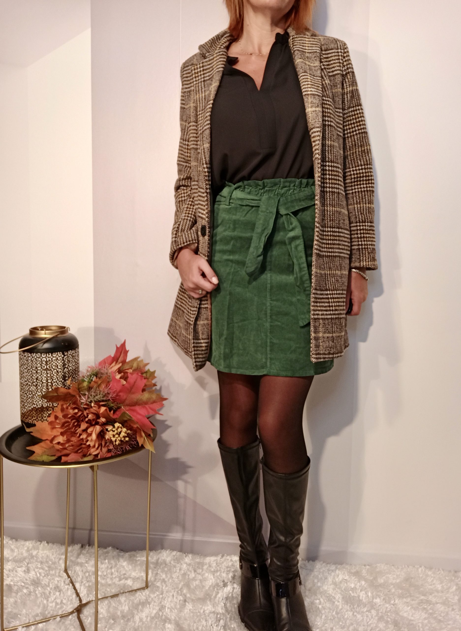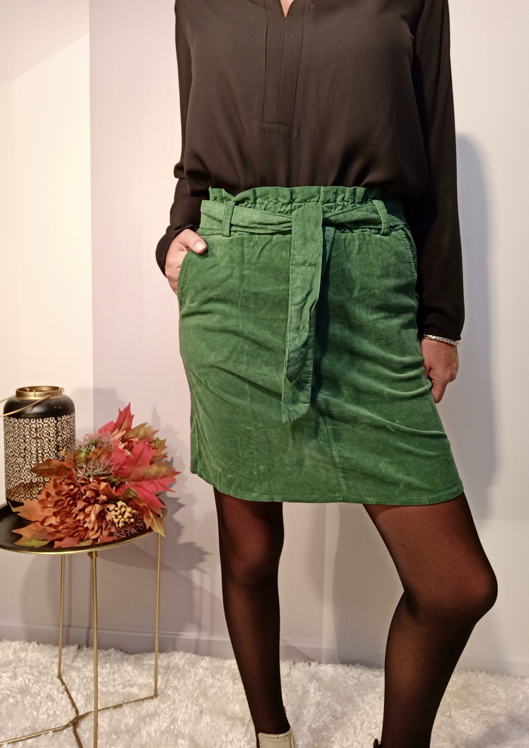Jupe classique, ceinture noeud en velours épais avec poches.
