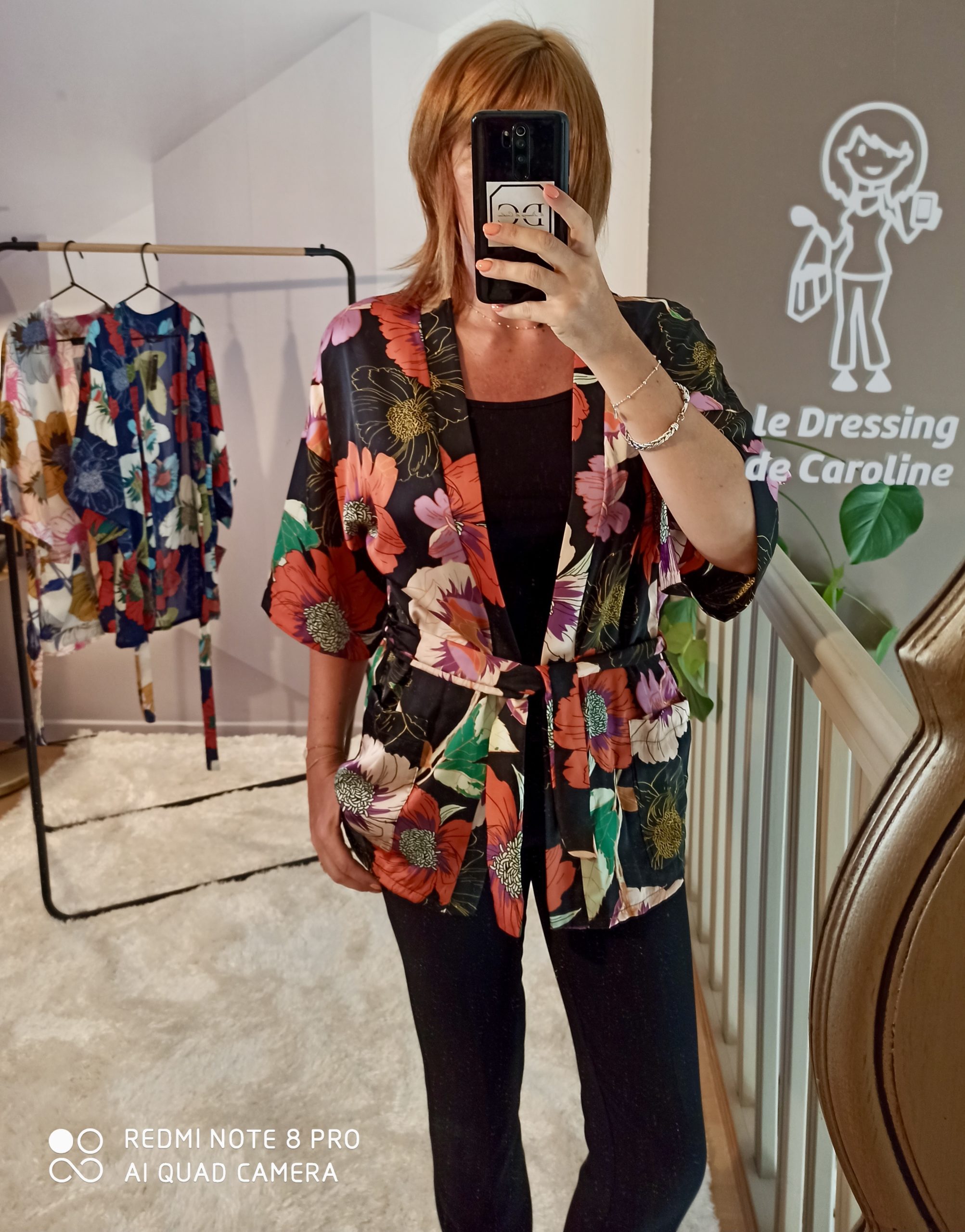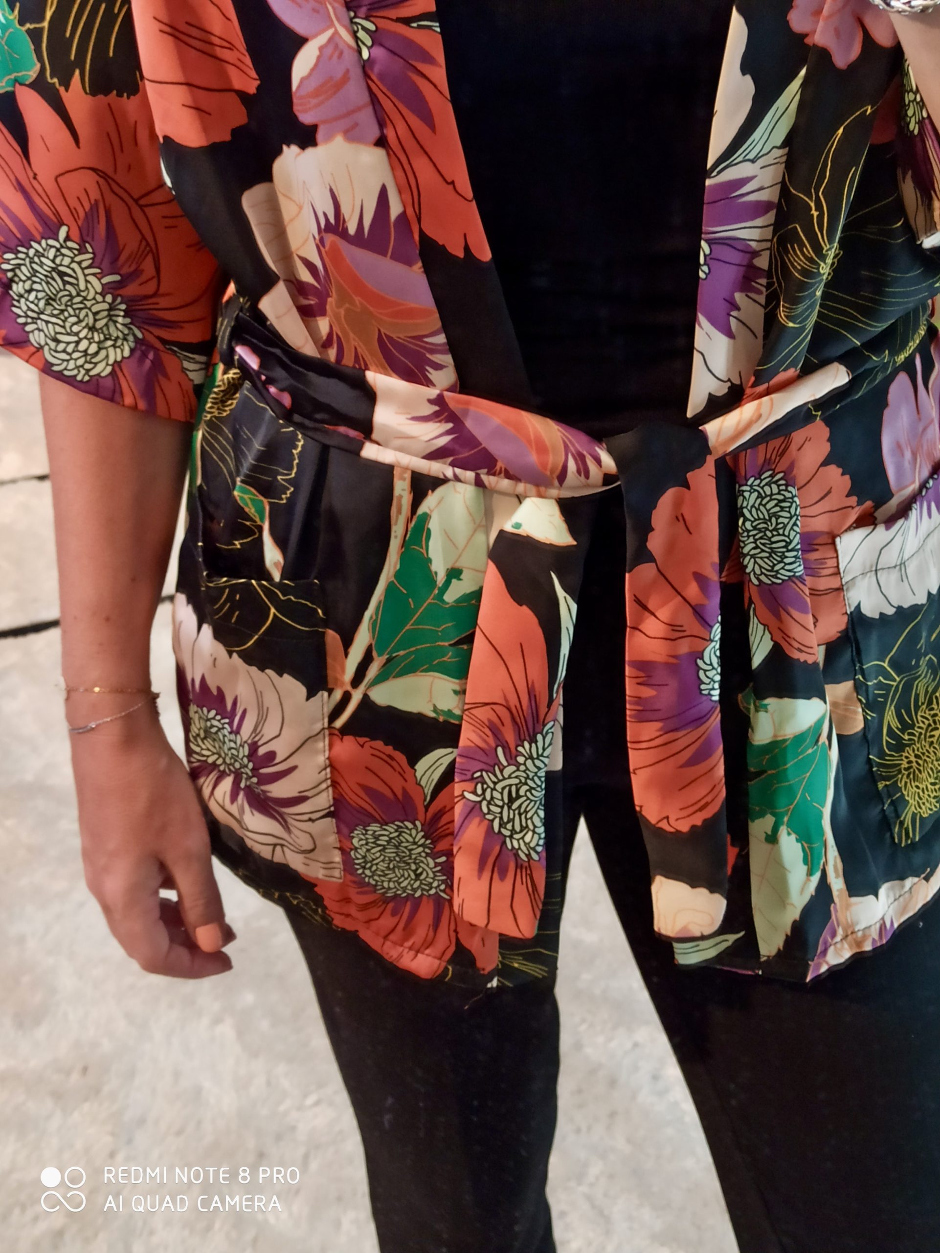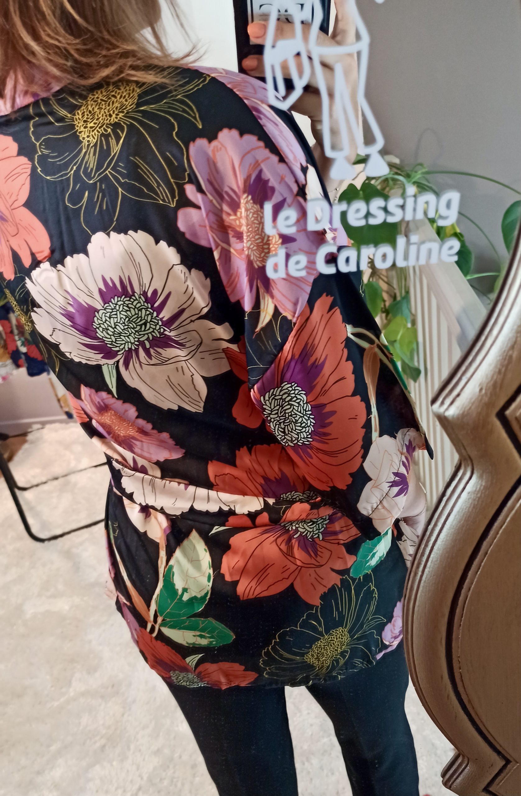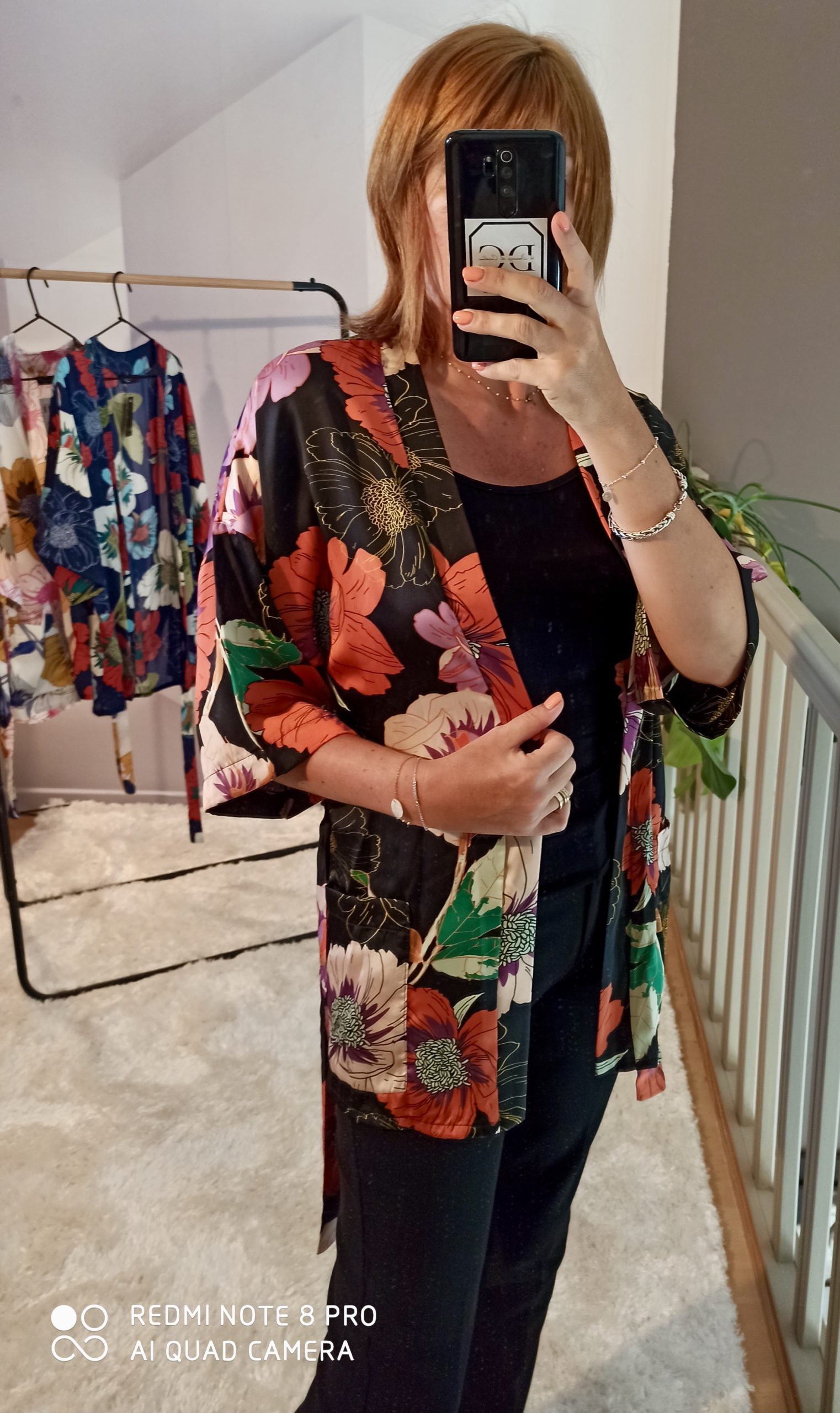 Veste effet satin style Kimono avec manches 3/4, très agréable à porter!