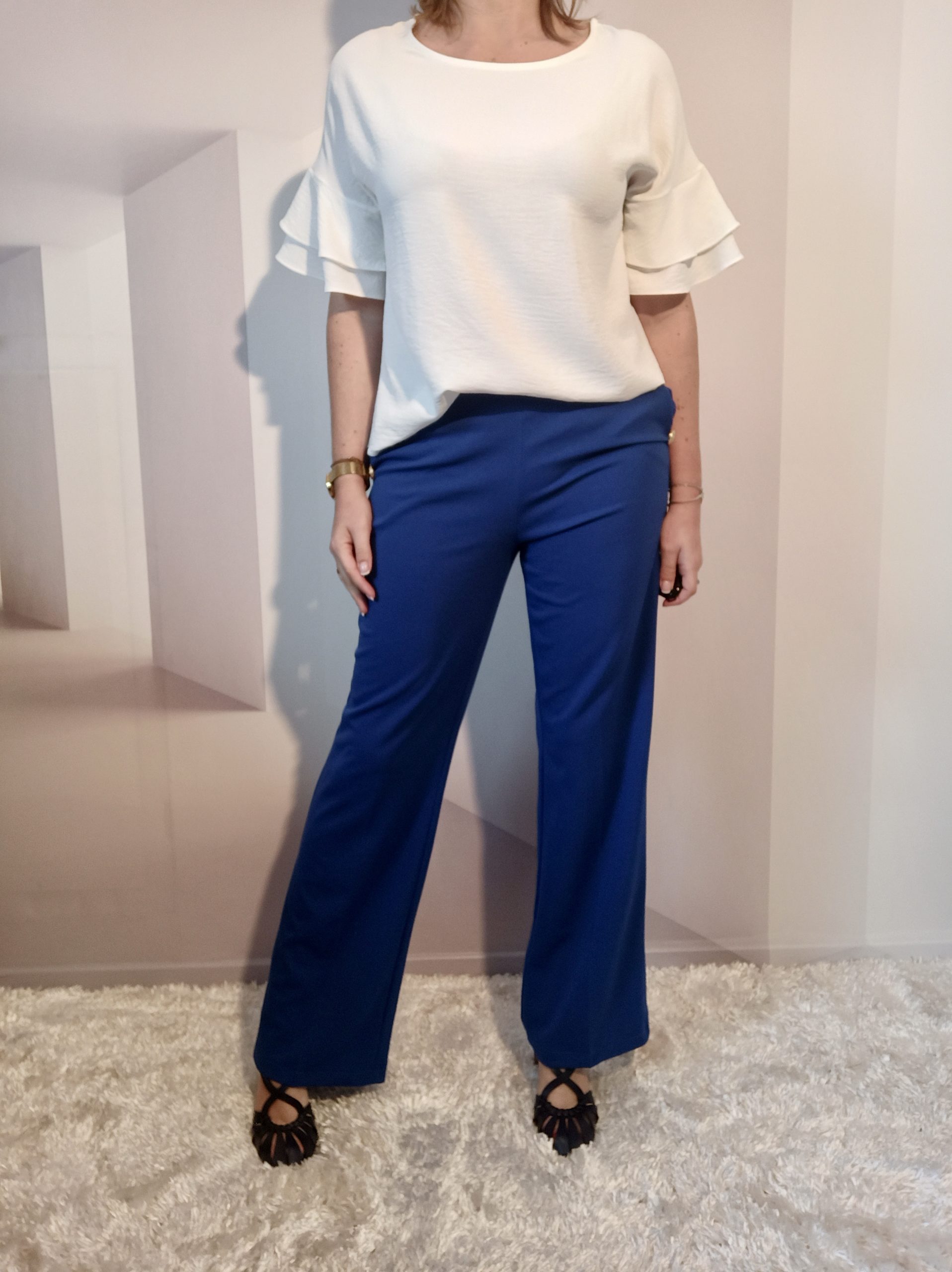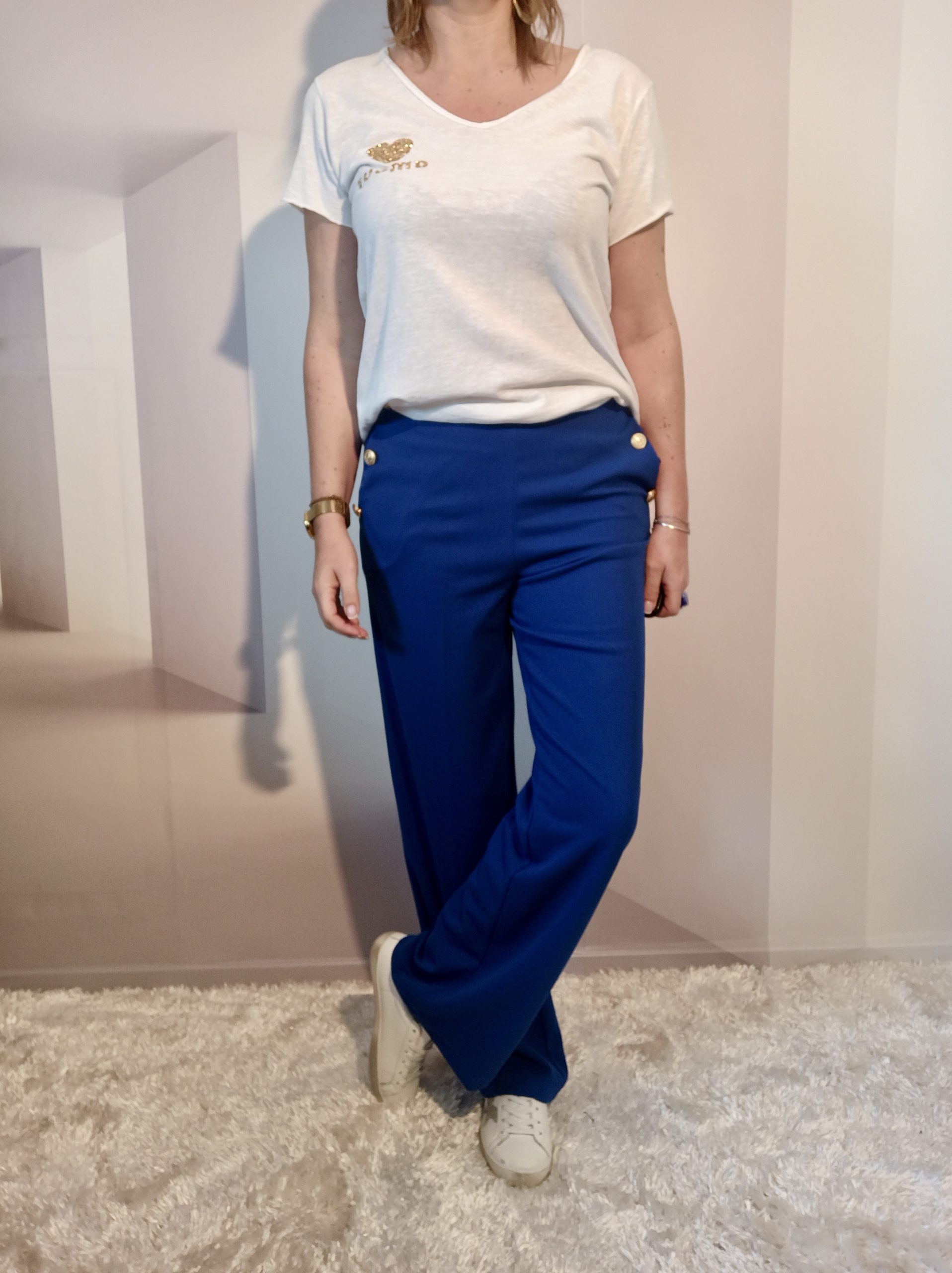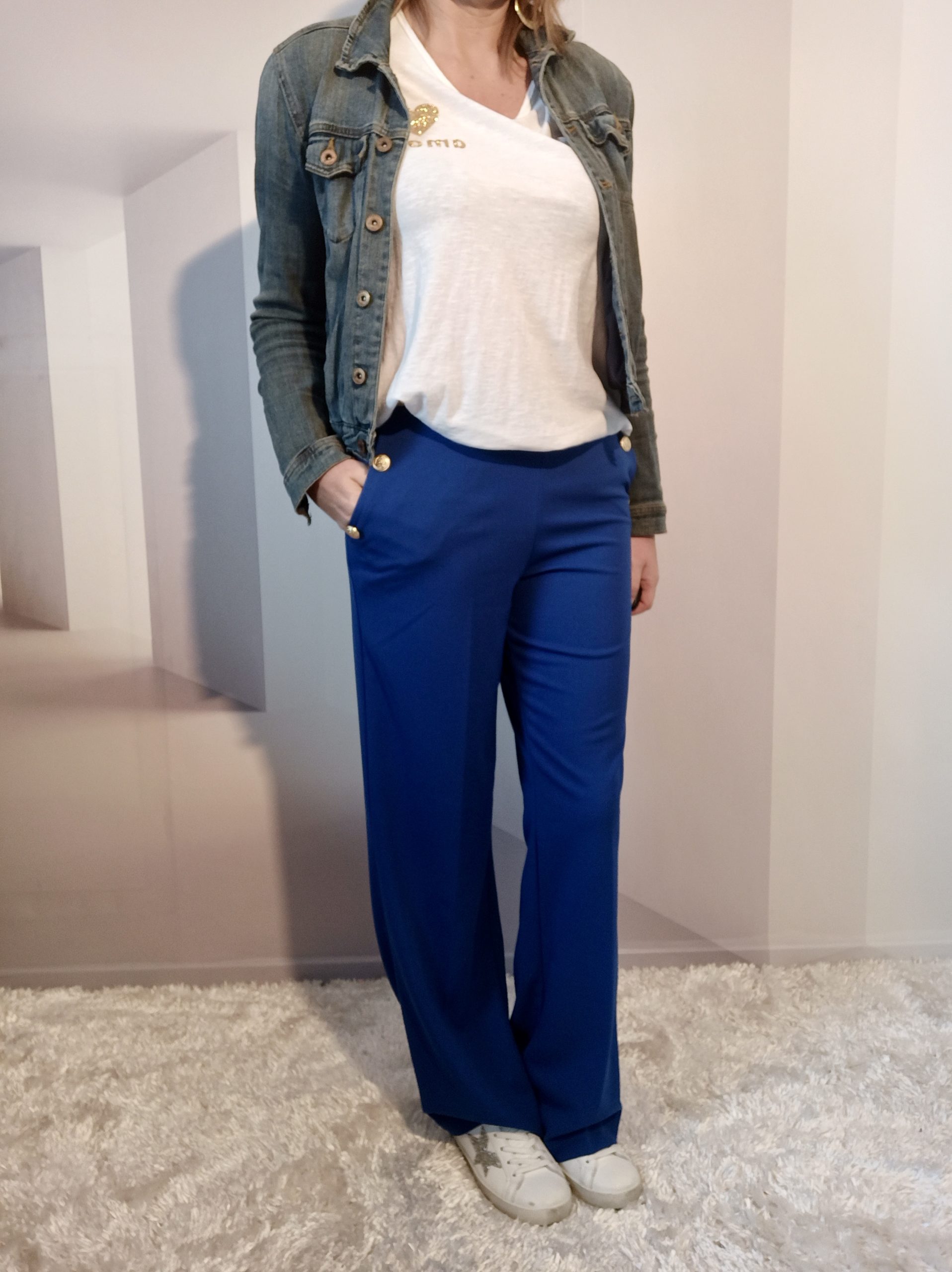 Superbe pantalon par son tissus et au tombĂ© Ă©lĂ©gant tant en talons qu’en baskets.