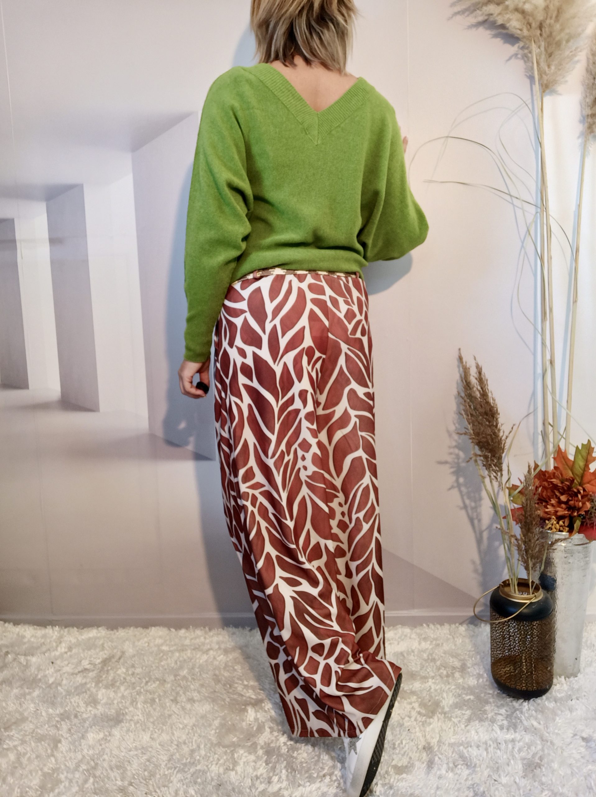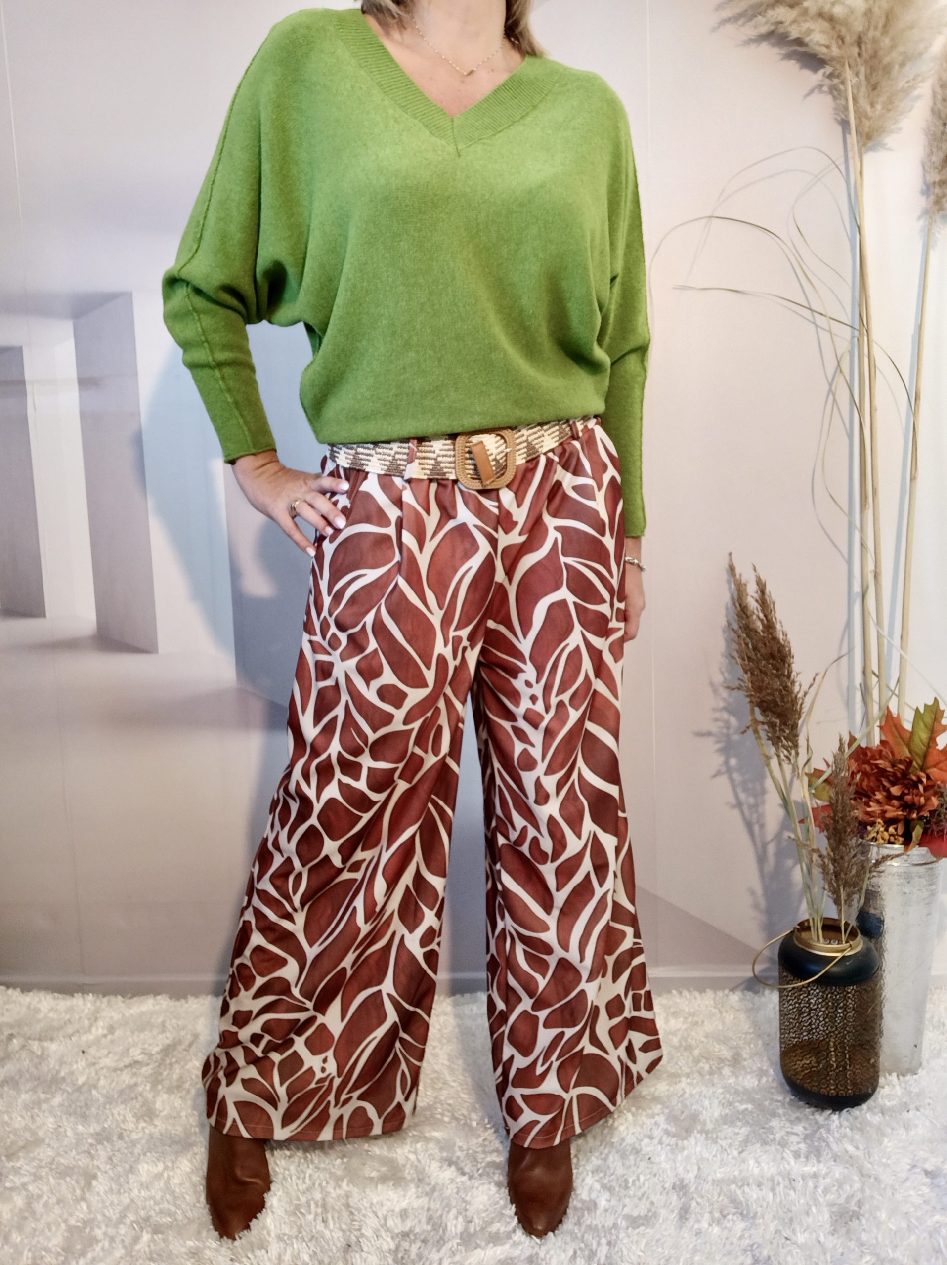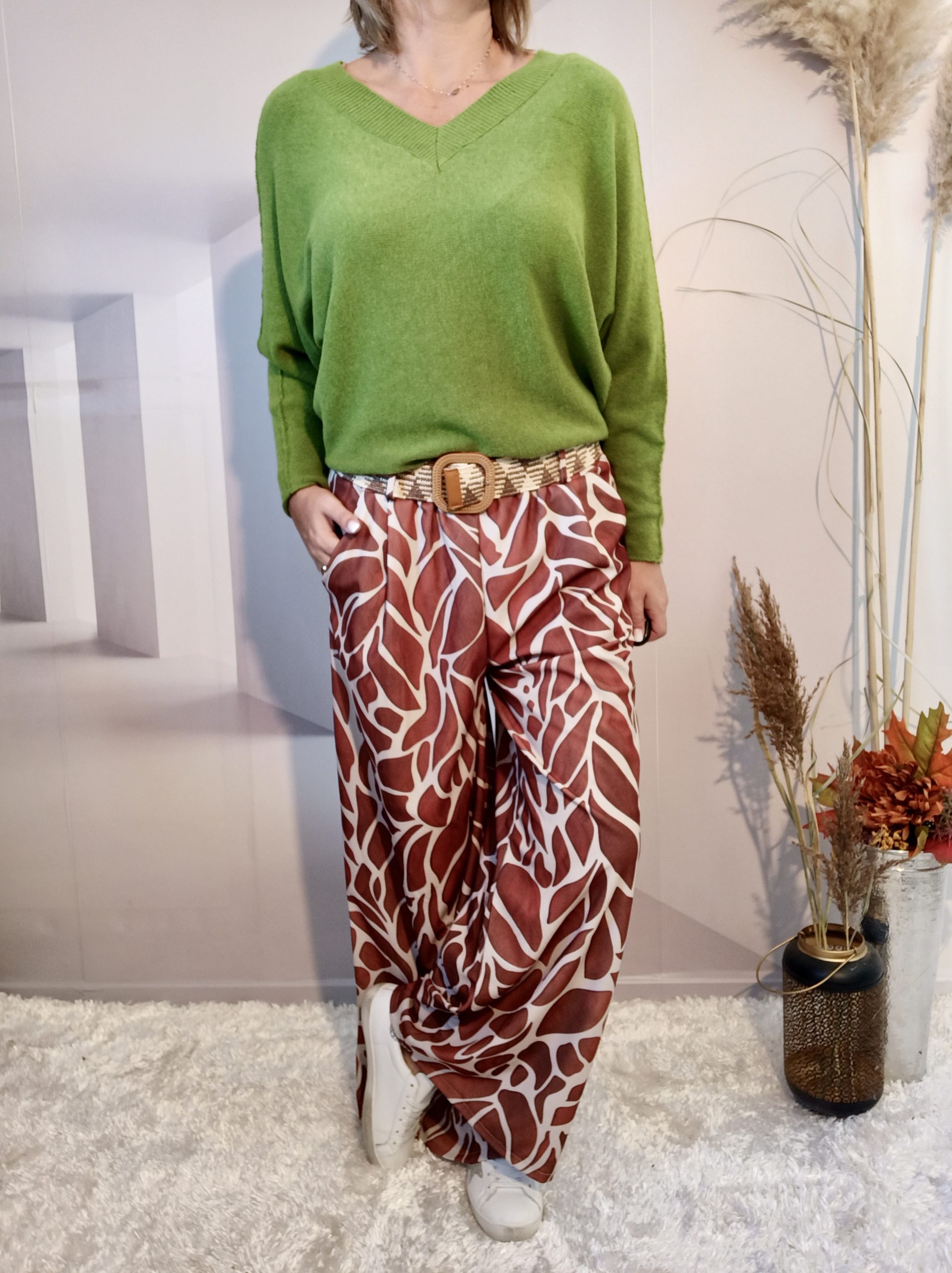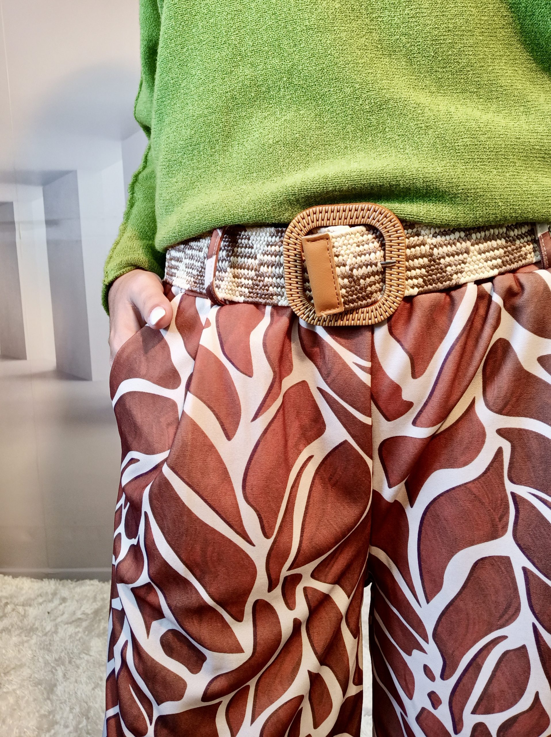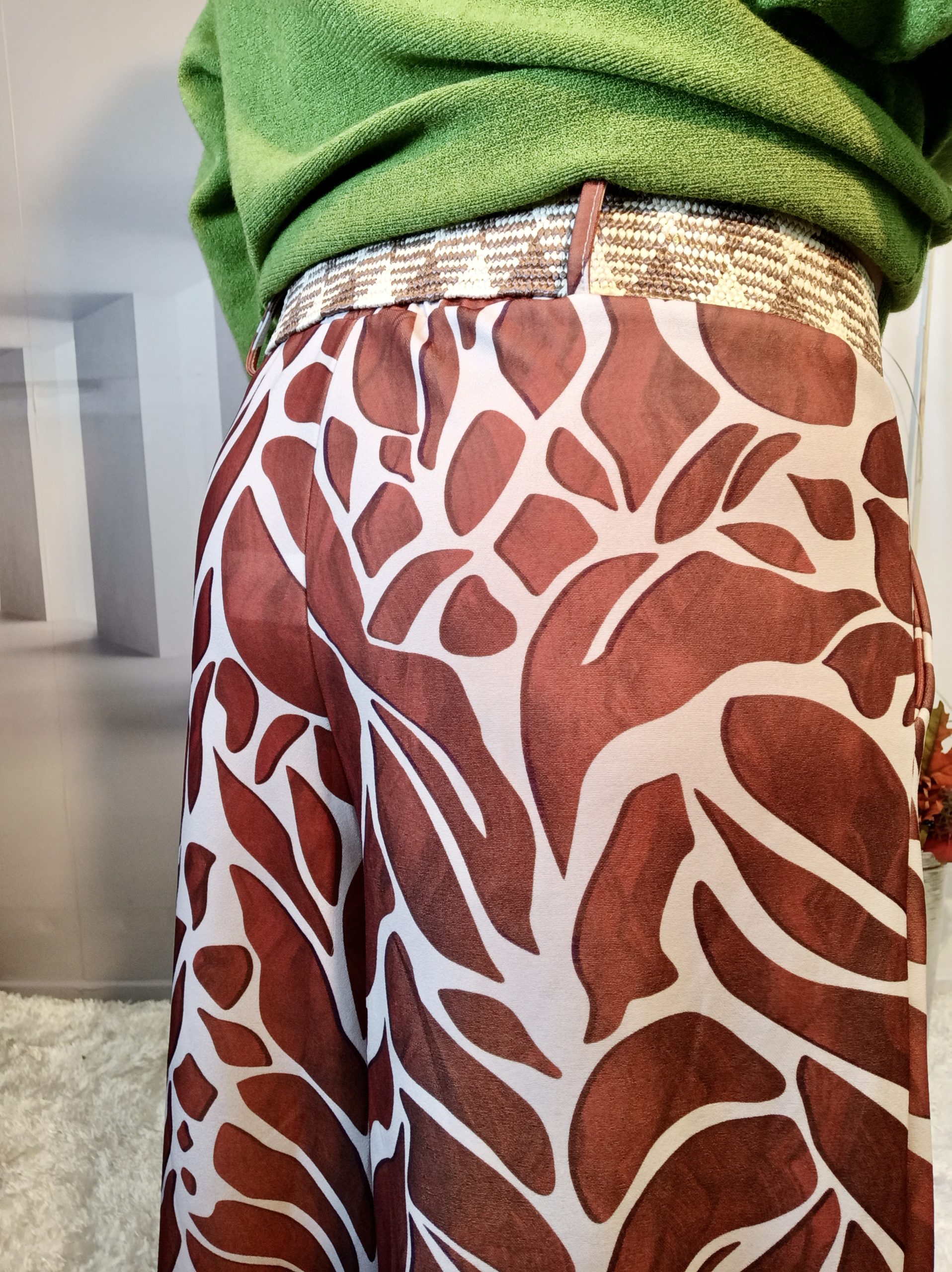 Superbe pantalon style Palazzo avec un joli tombé, 2 poches et ceinture fournie.