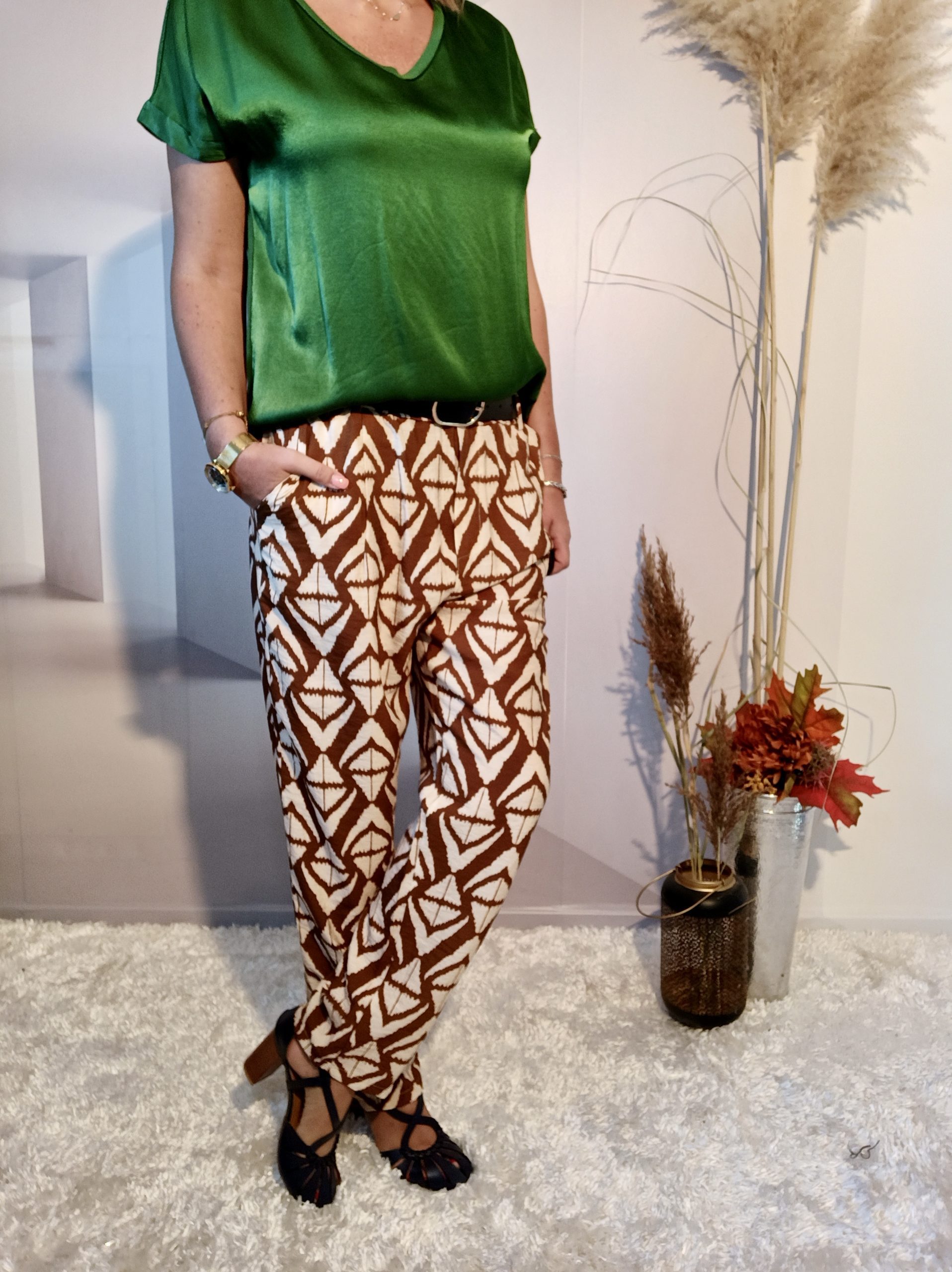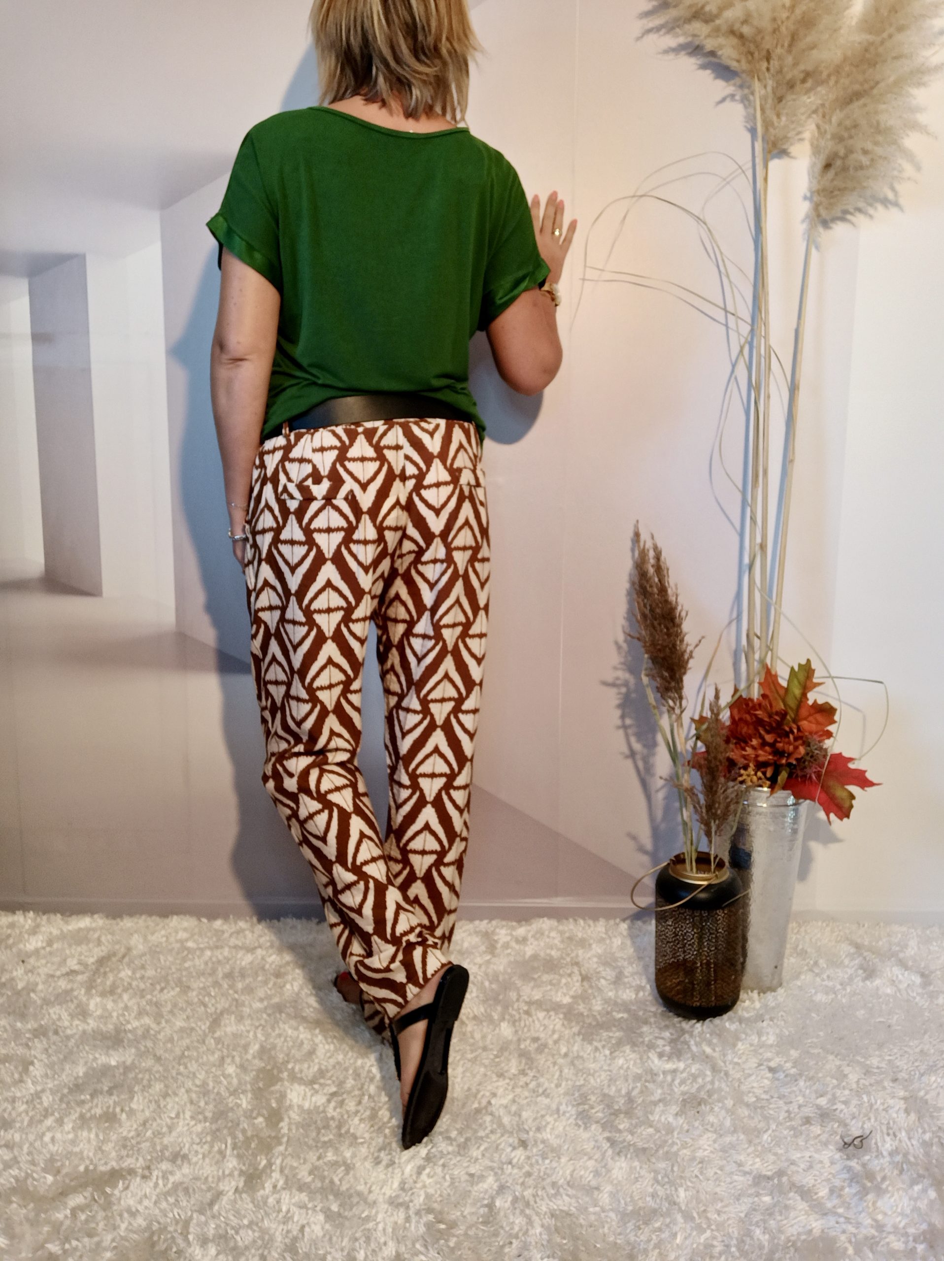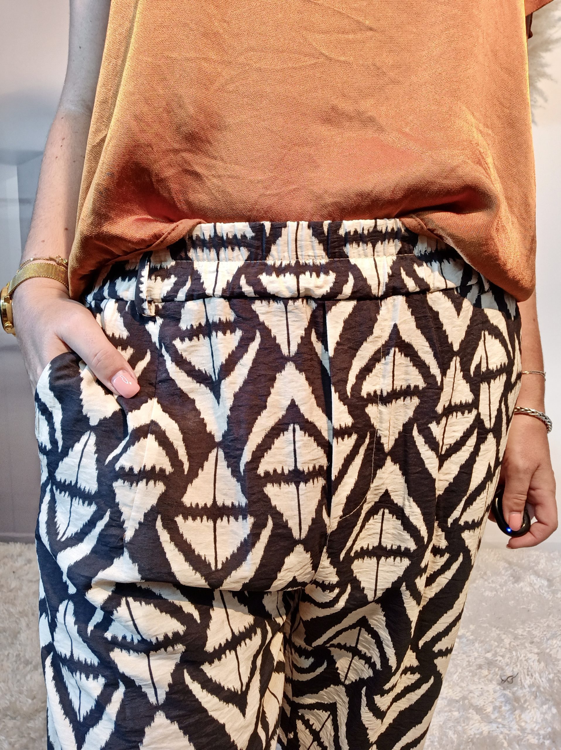 Pantalon fluide, coupe droite et ample, avec 2 poches cotés, et 2 fausses poches arrières.
