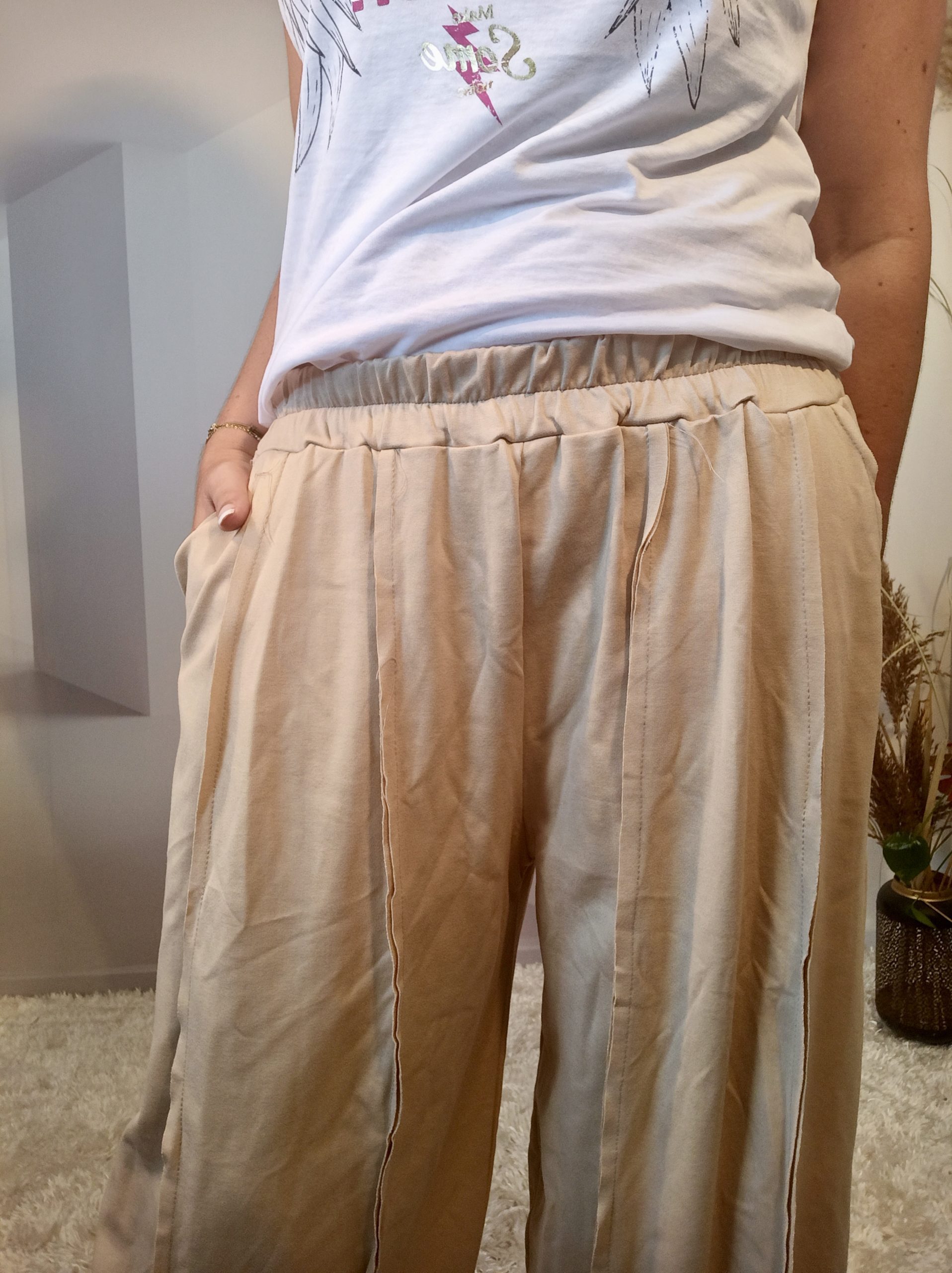 Pantalon Large Beige