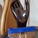 Porte-Monnaie Anneaux Cuir Taupe/Bleu