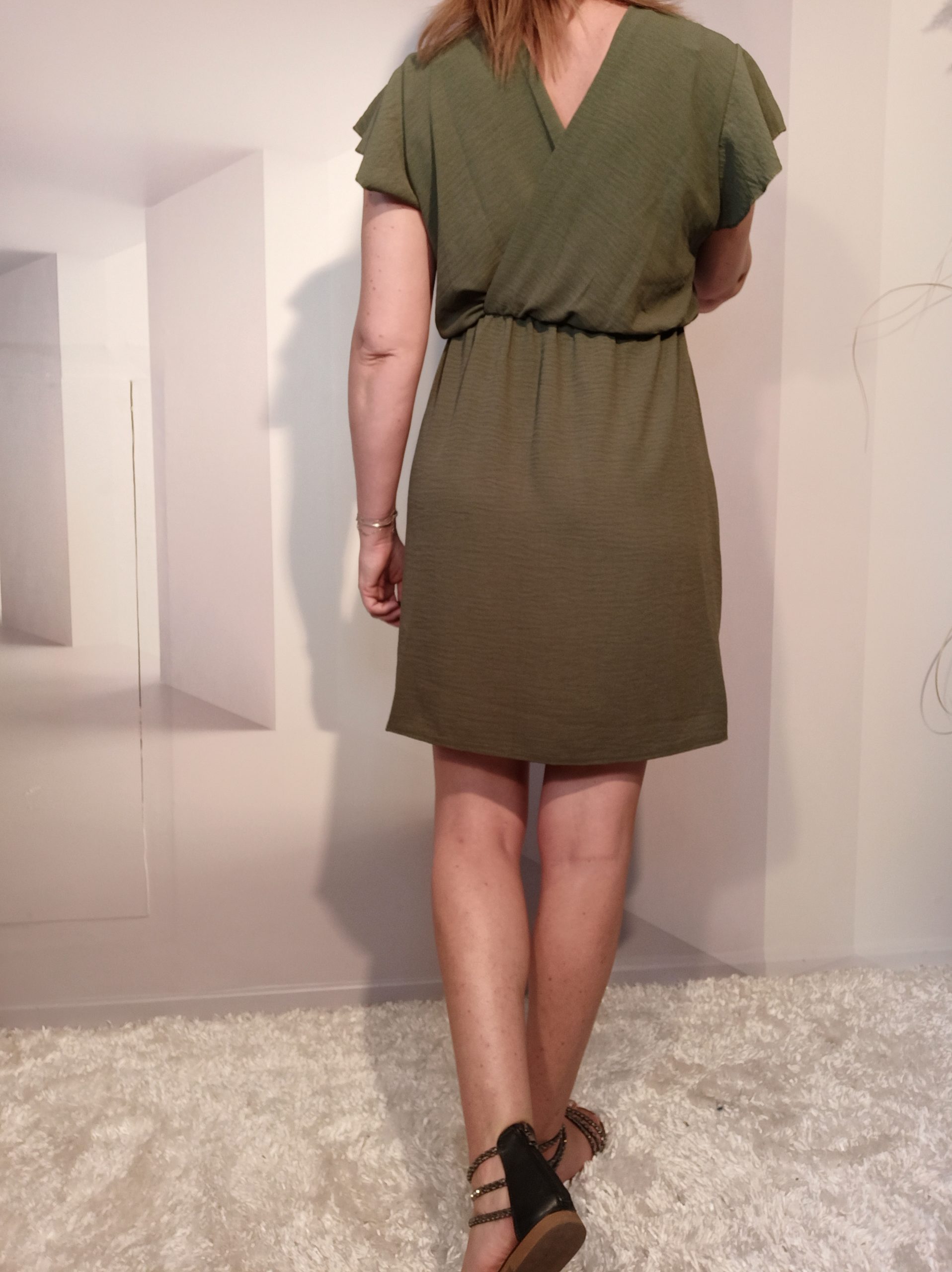 Joli petite robe fluide au décolleté cache-coeur devant et derrière.