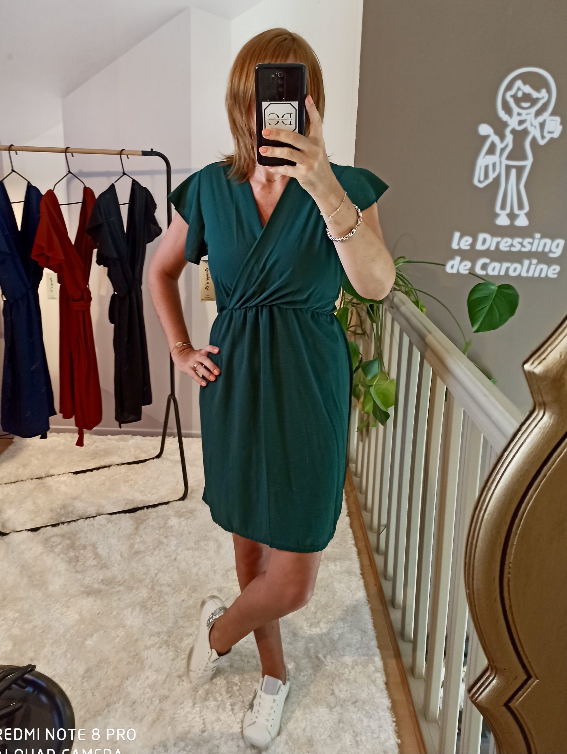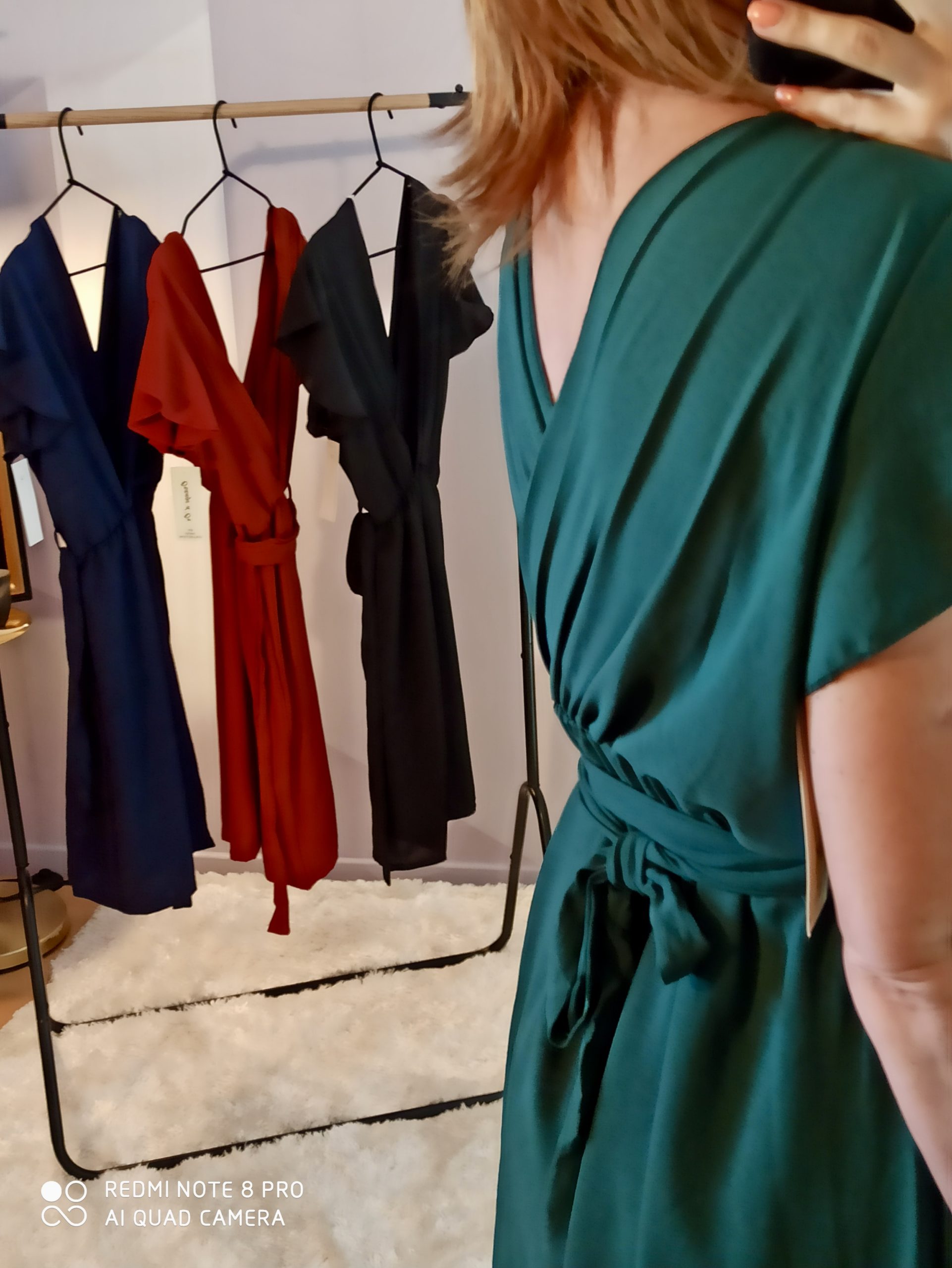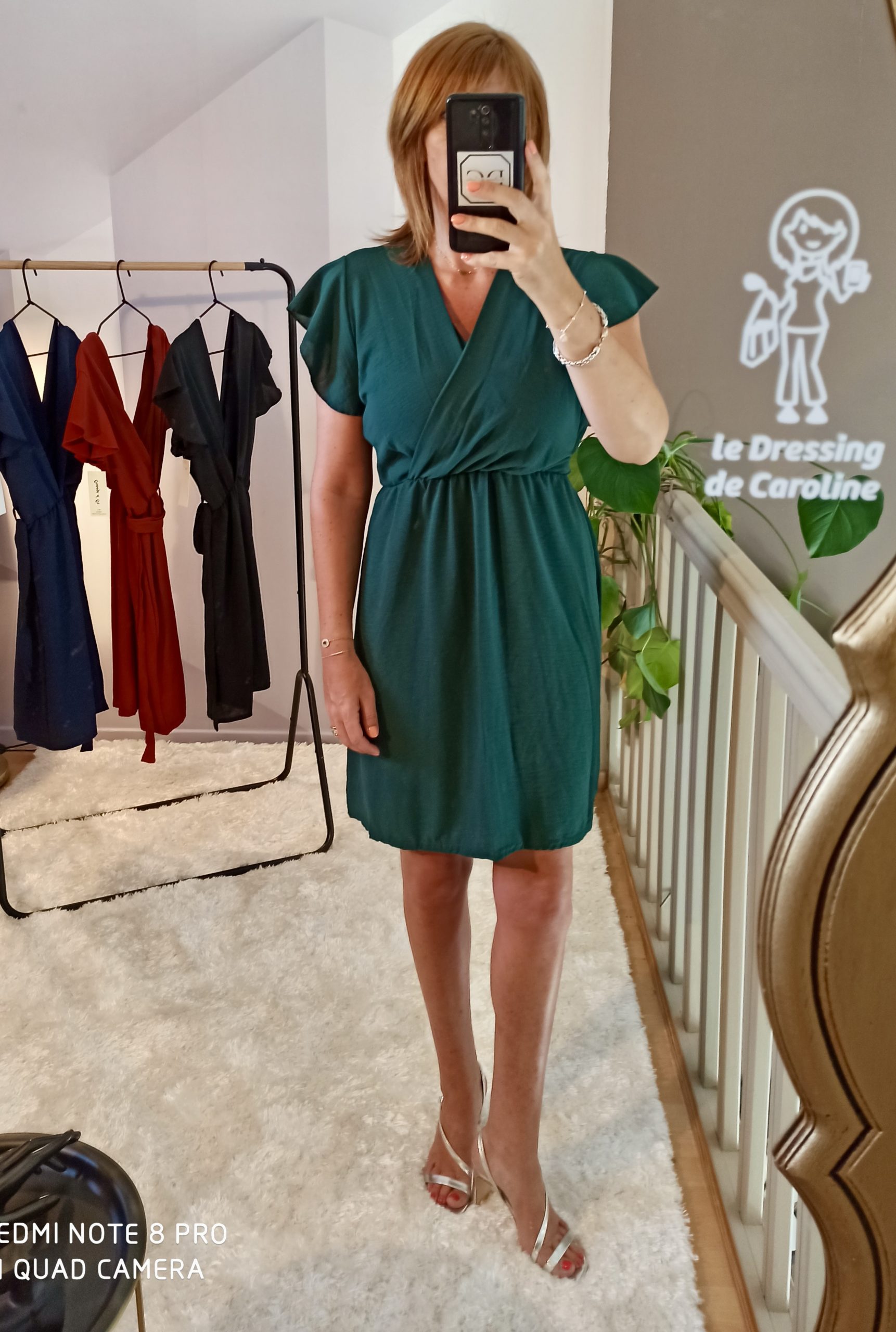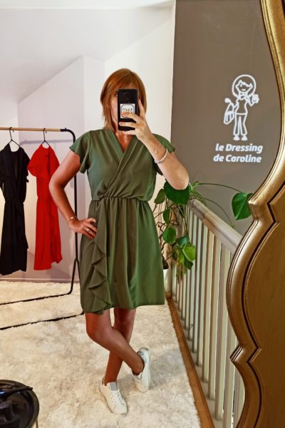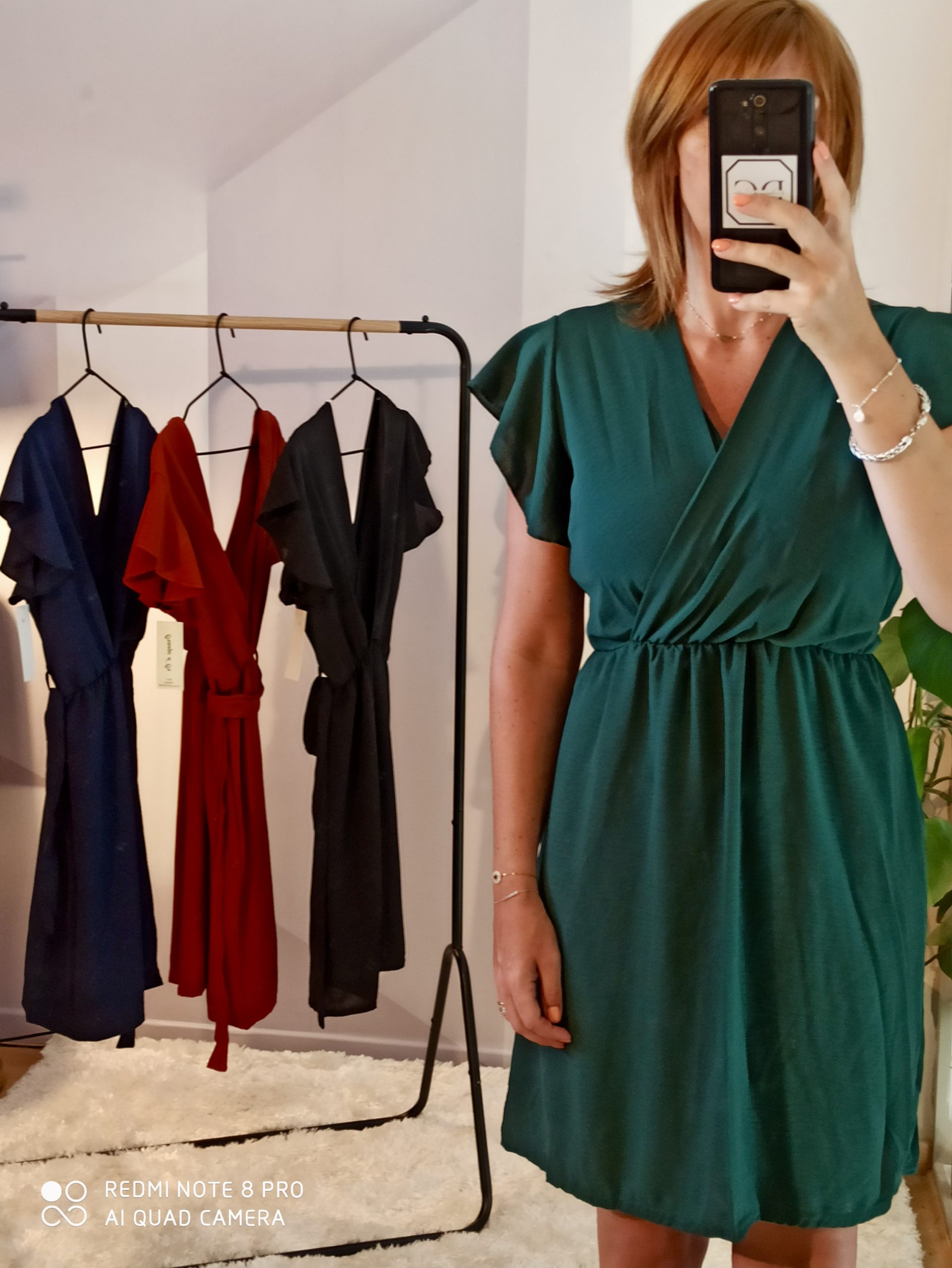 Sa taille élastique et son décolleté drapé lui permettant d’être porter du 34 au 42.