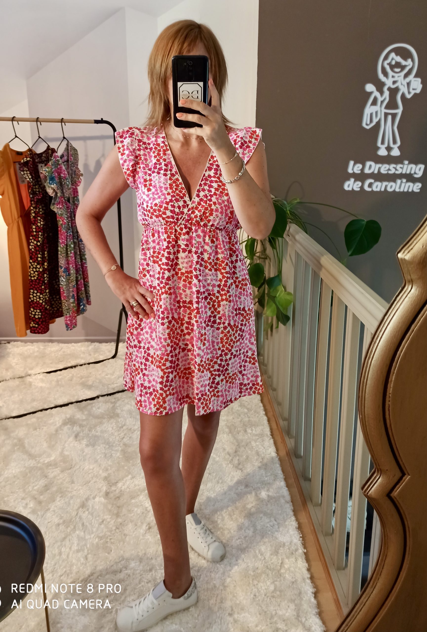 Robe Courte Fleurs Rose & Rouge