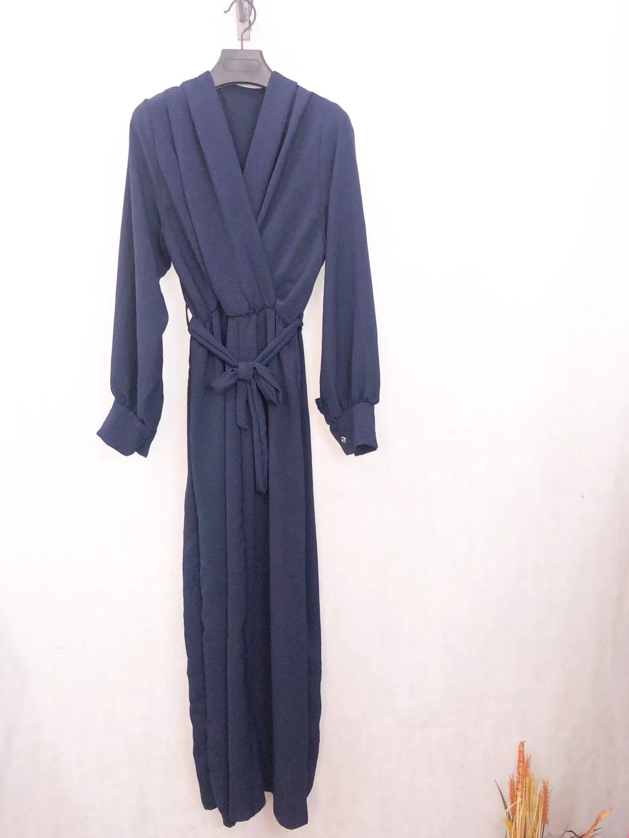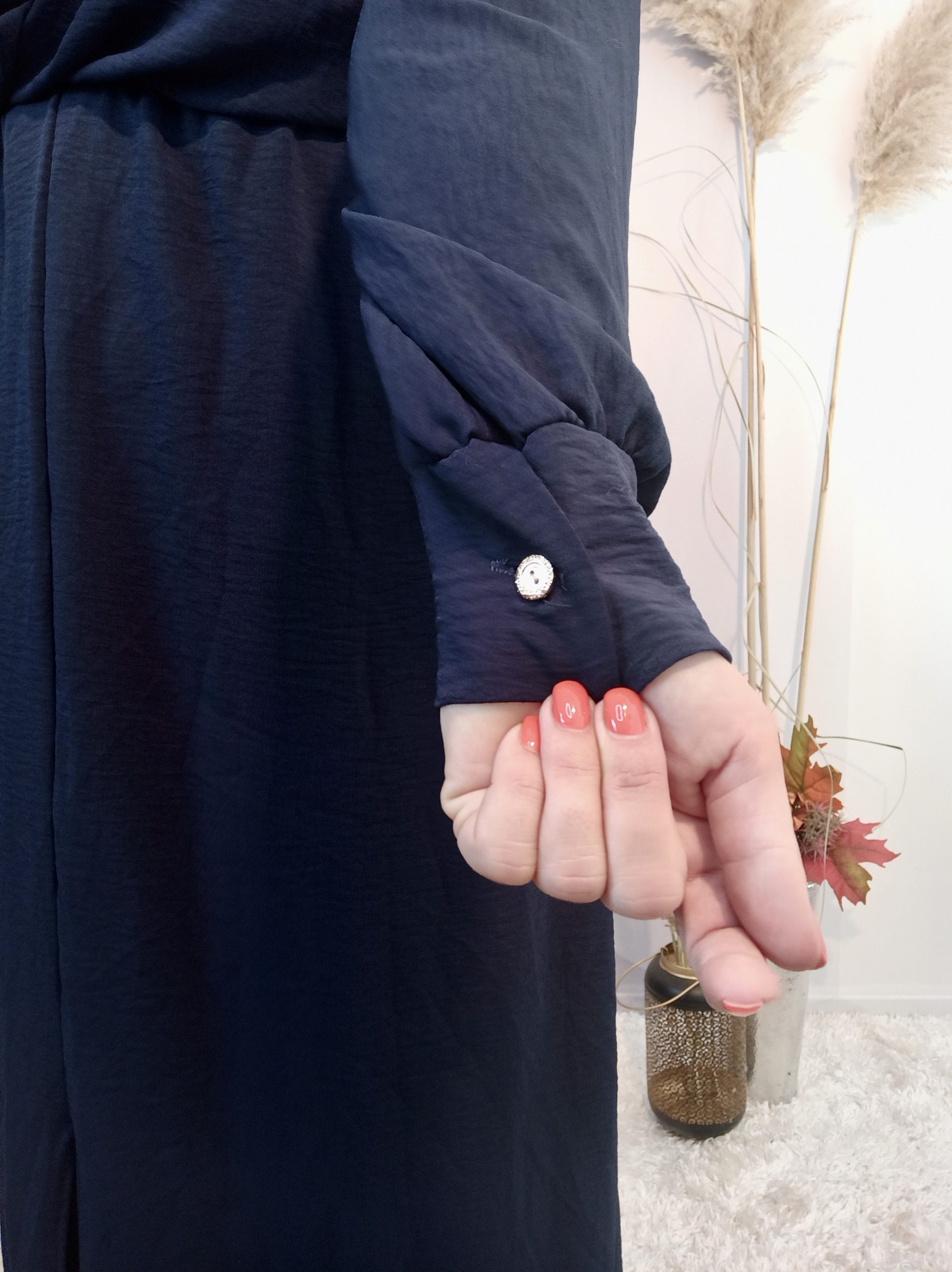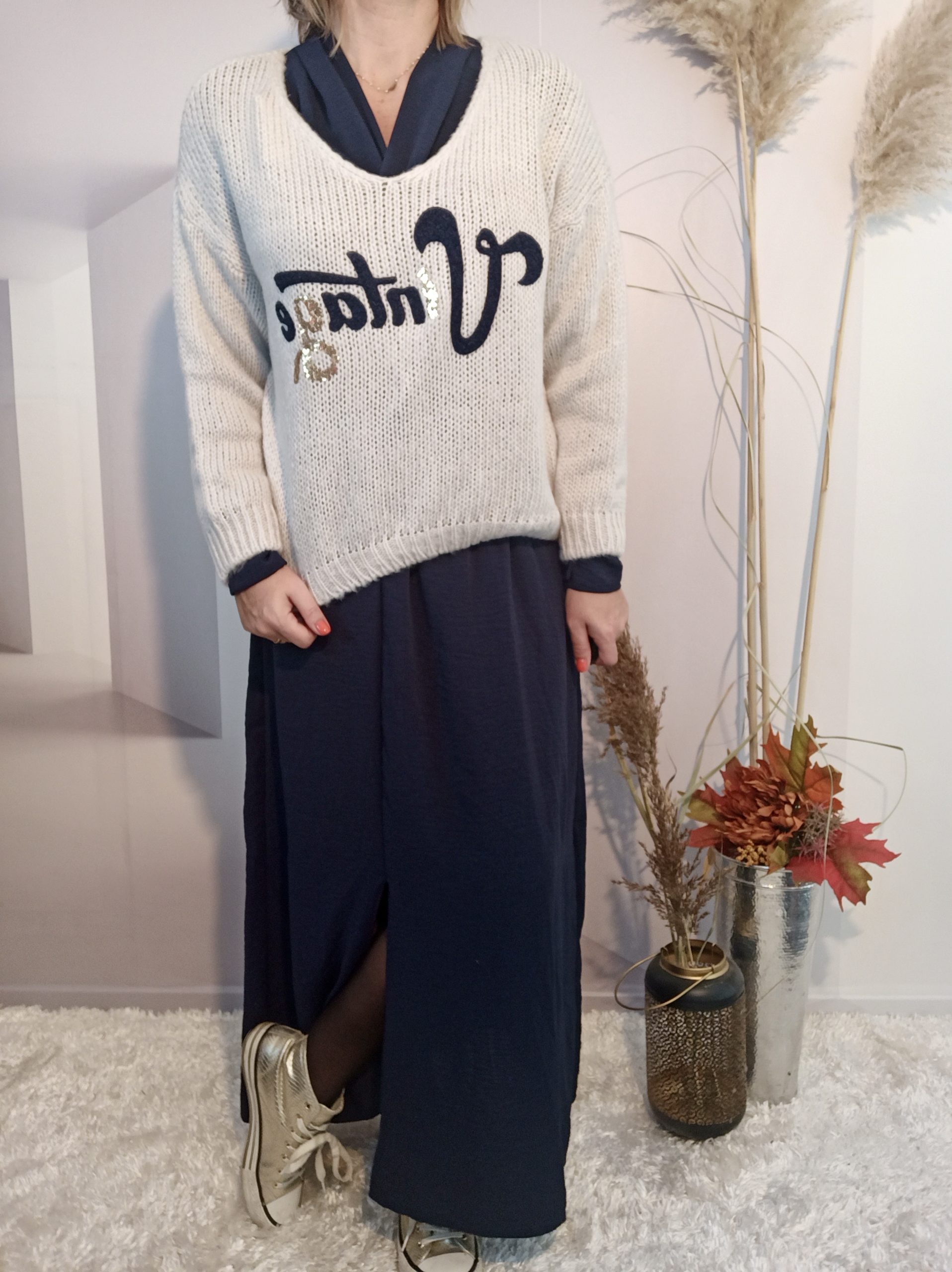 Robe fluide fendue niveau mollet à porter seule ou avec un pull ou une veste.