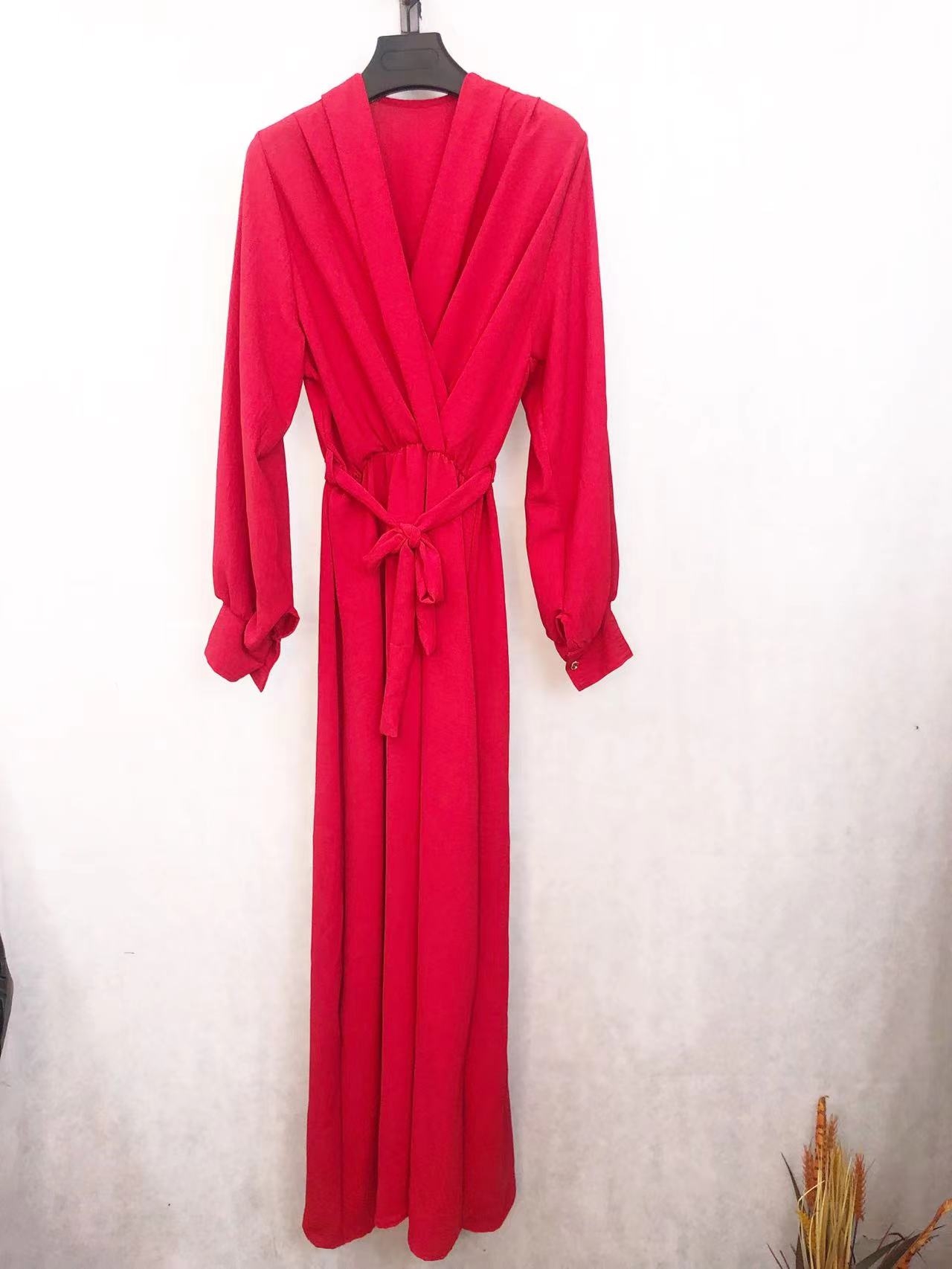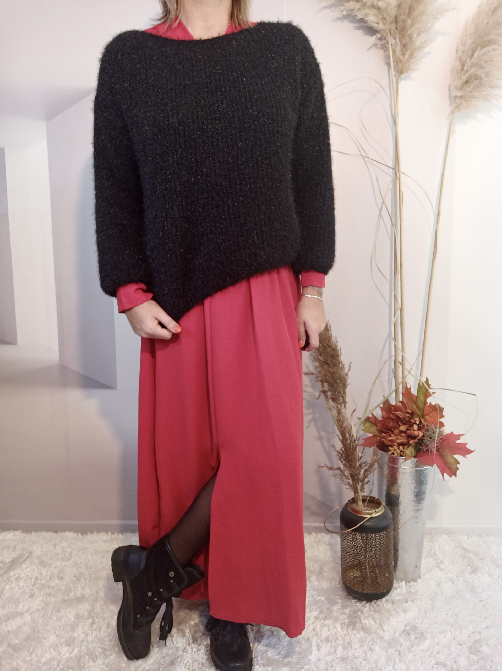 Robe fluide fendue niveau mollet à porter seule ou avec un pull ou une veste.