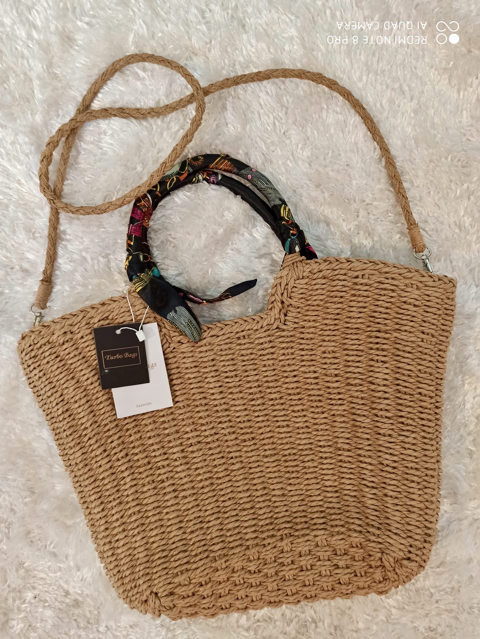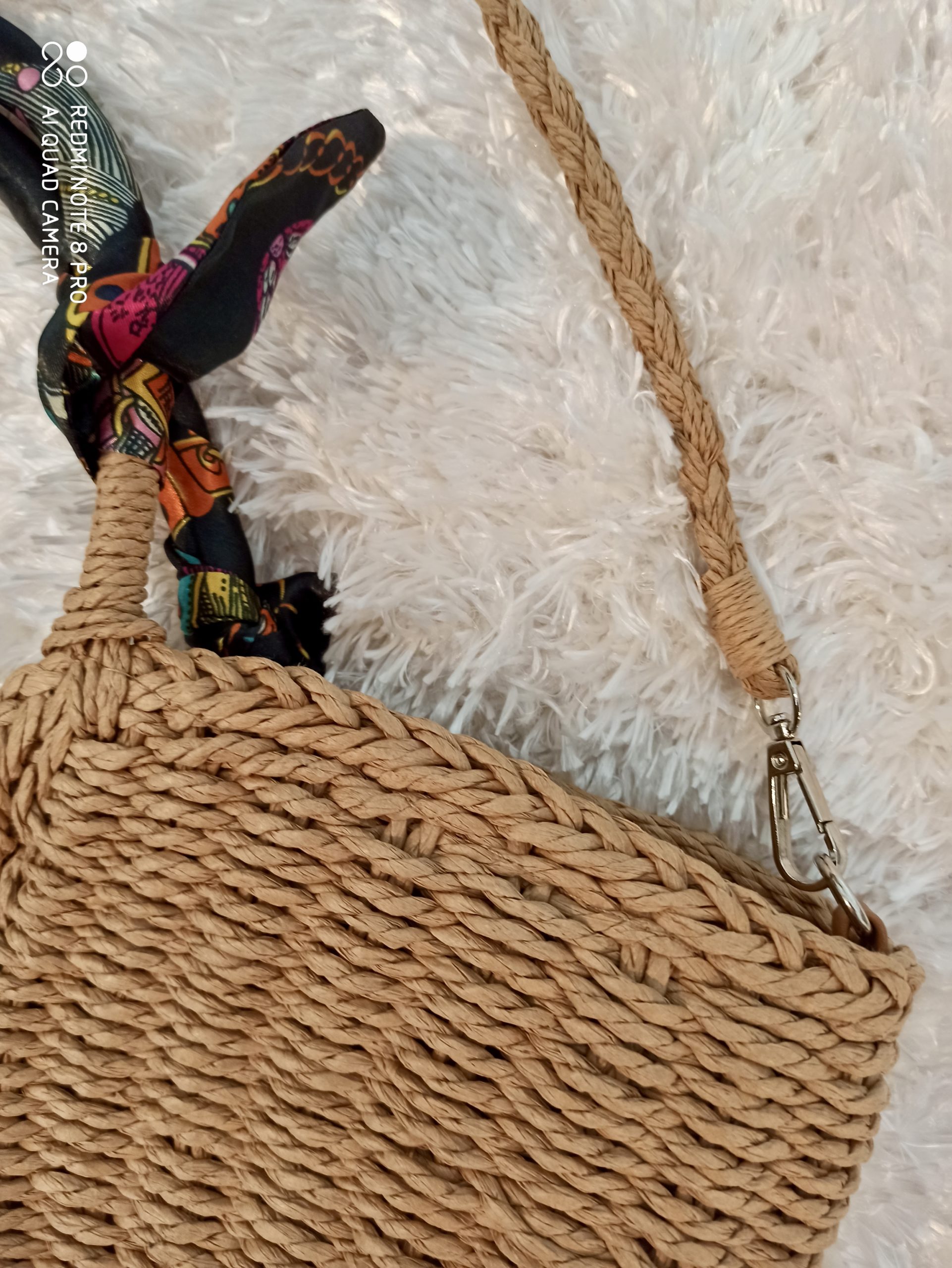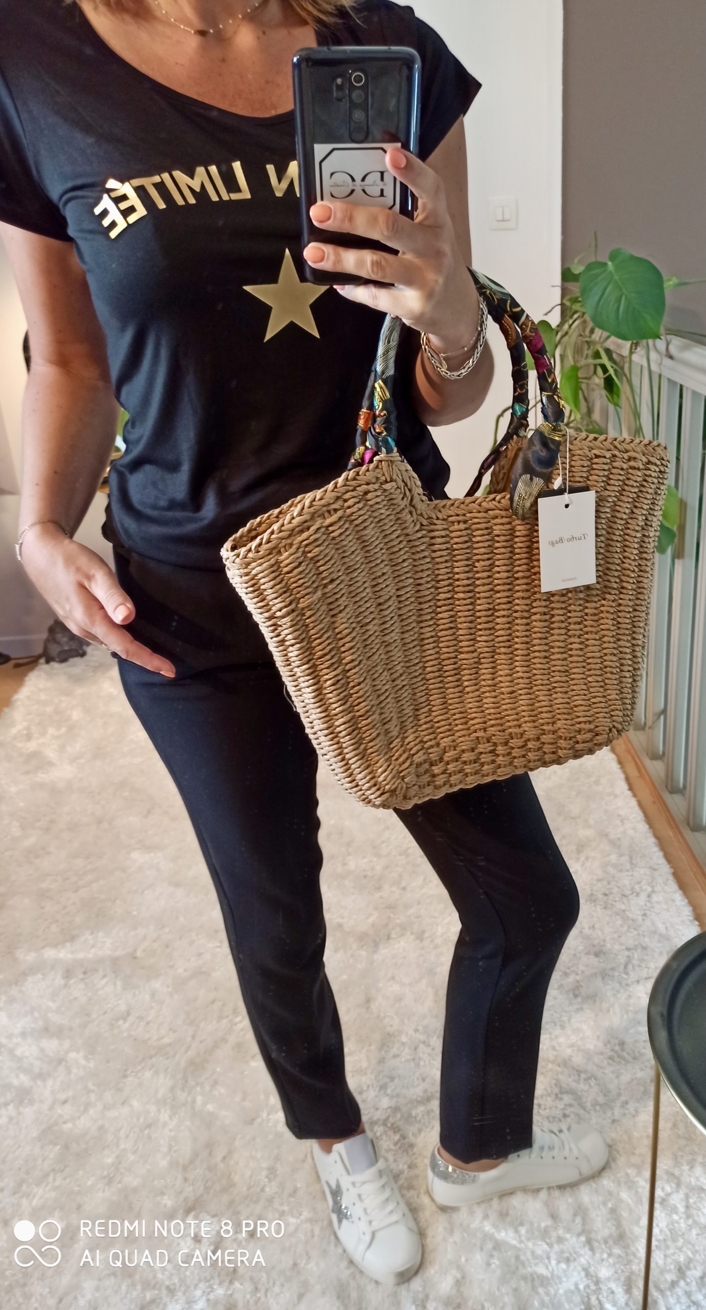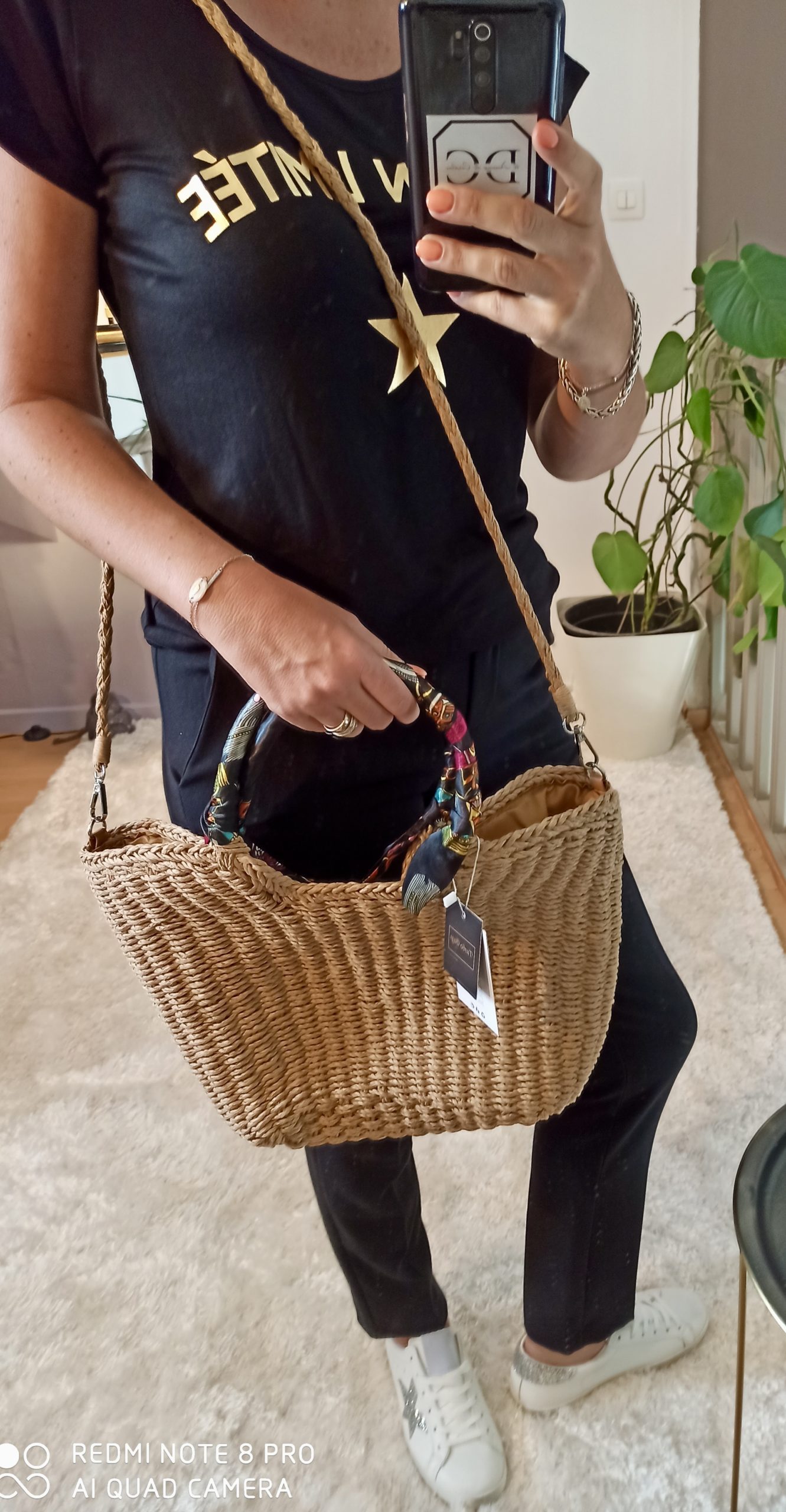 Sac en paille avec anses et lanière amovible qui se ferme avec une fermeture éclair pour ne rien perdre !