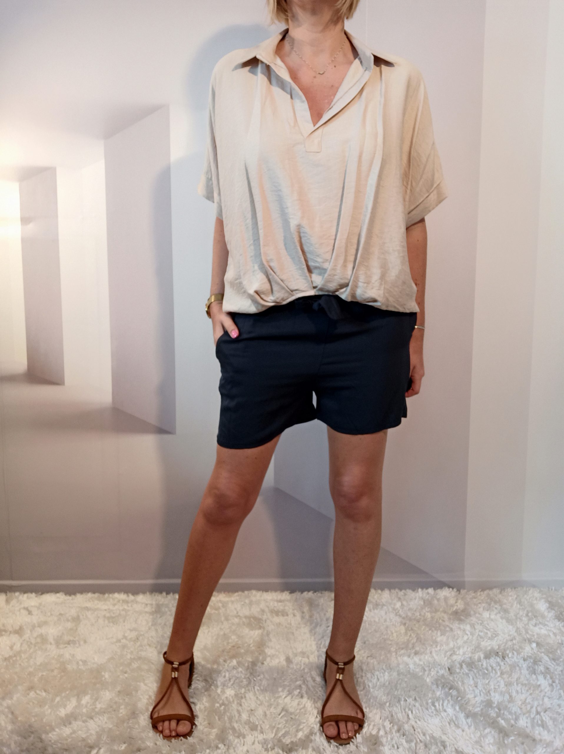 Short avec poches et ceinture, très agréable à porter avec sa matière fluide & classe !