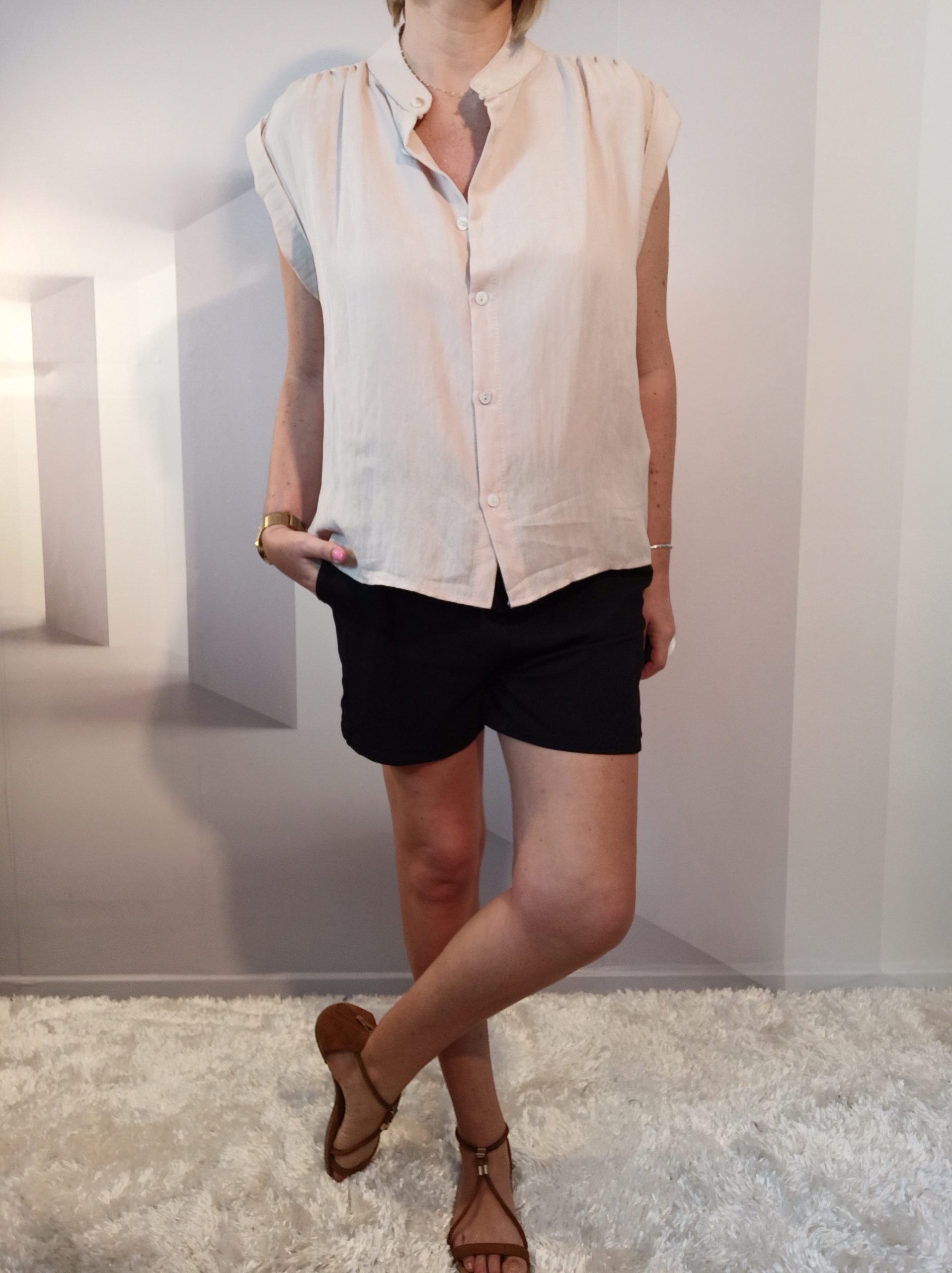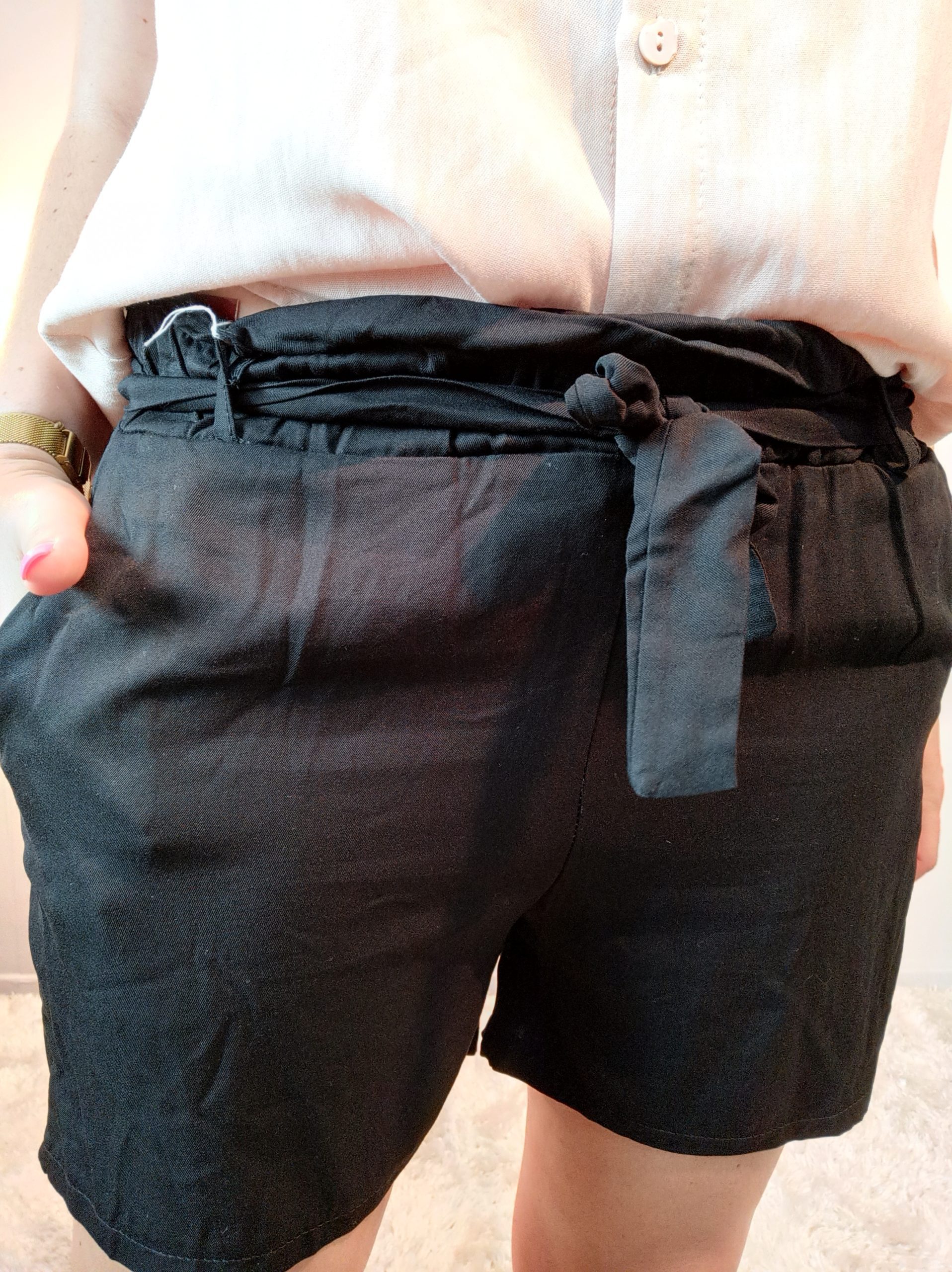 Short avec poches et ceinture, très agréable à porter avec sa matière fluide & classe !