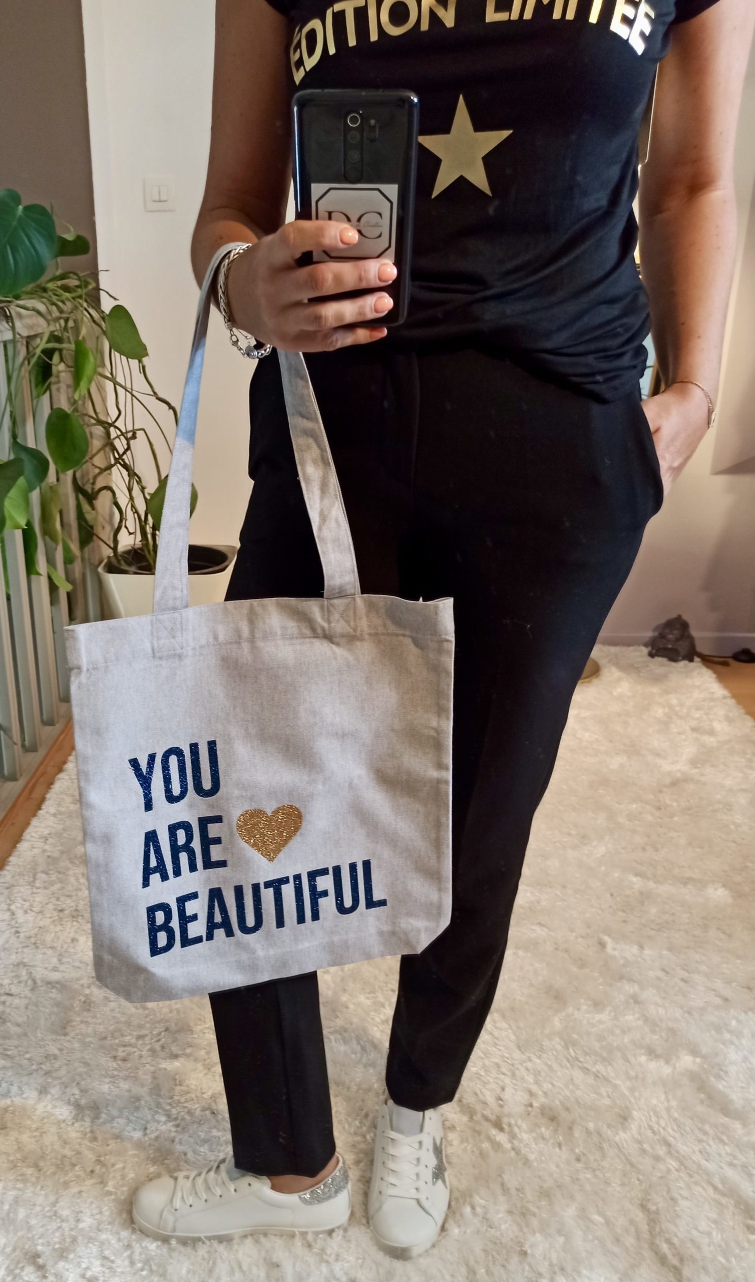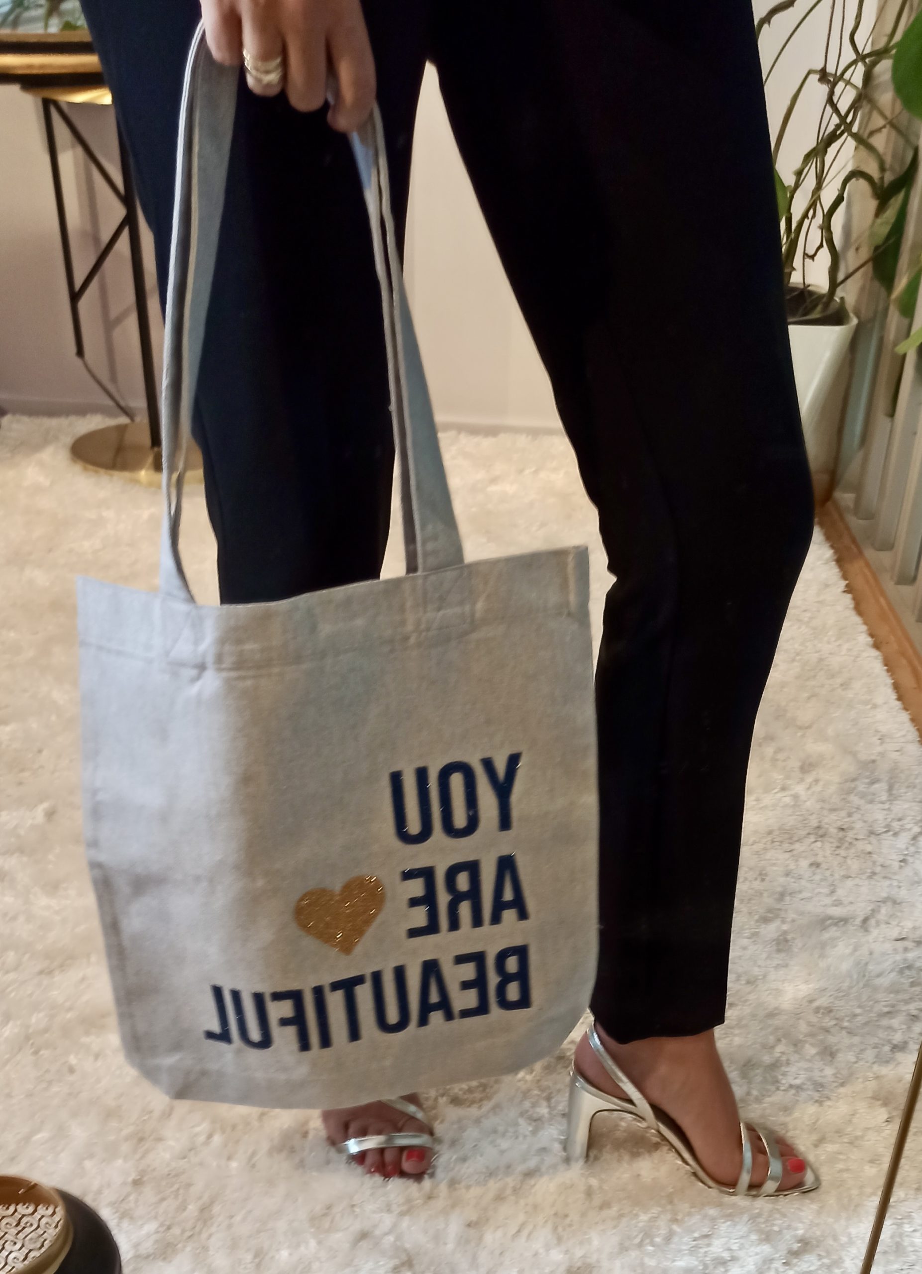 “Le tote bag est le sac « fourre-tout » par excellence. L’assurance d’avoir un sac souple, élégant, pratique et surtout réutilisable et recyclable. Pratique pour la ville il permet d’habiller une tenue. Son format est idéal pour les petites courses ou en tant que sac à main”.